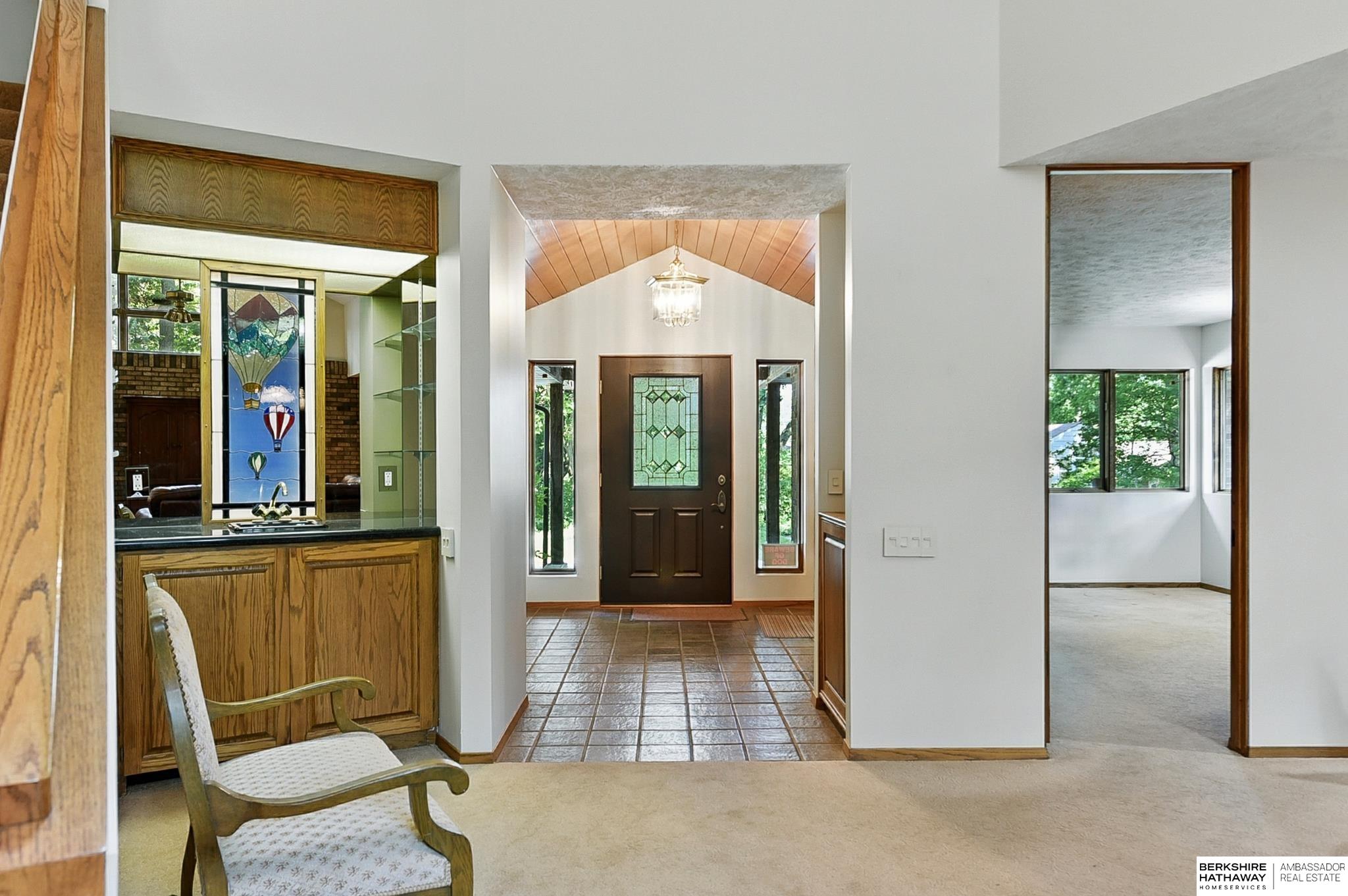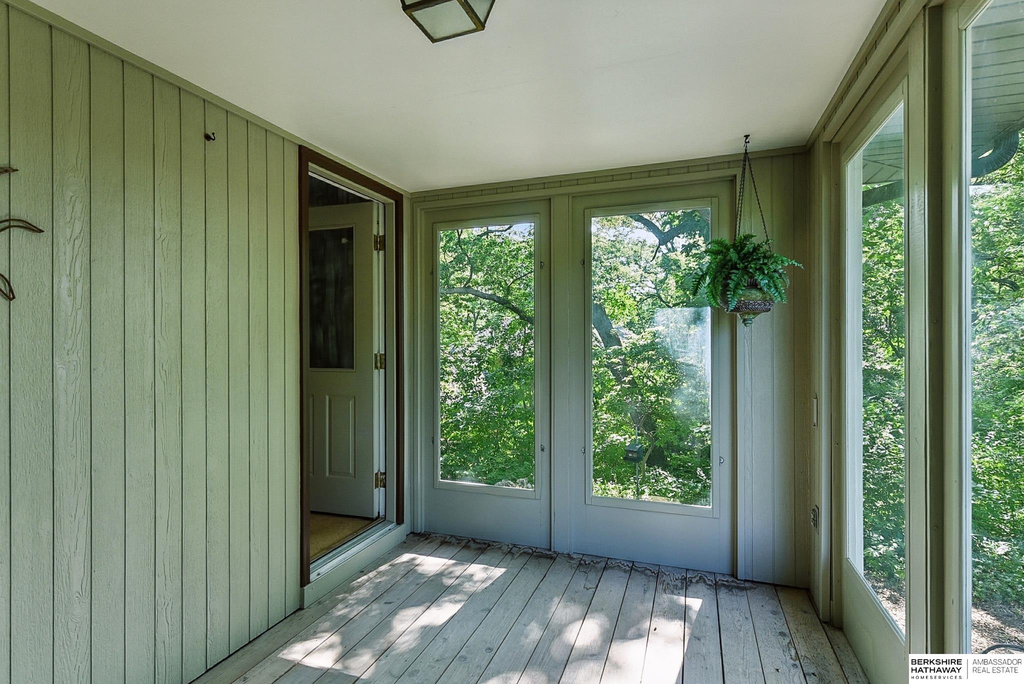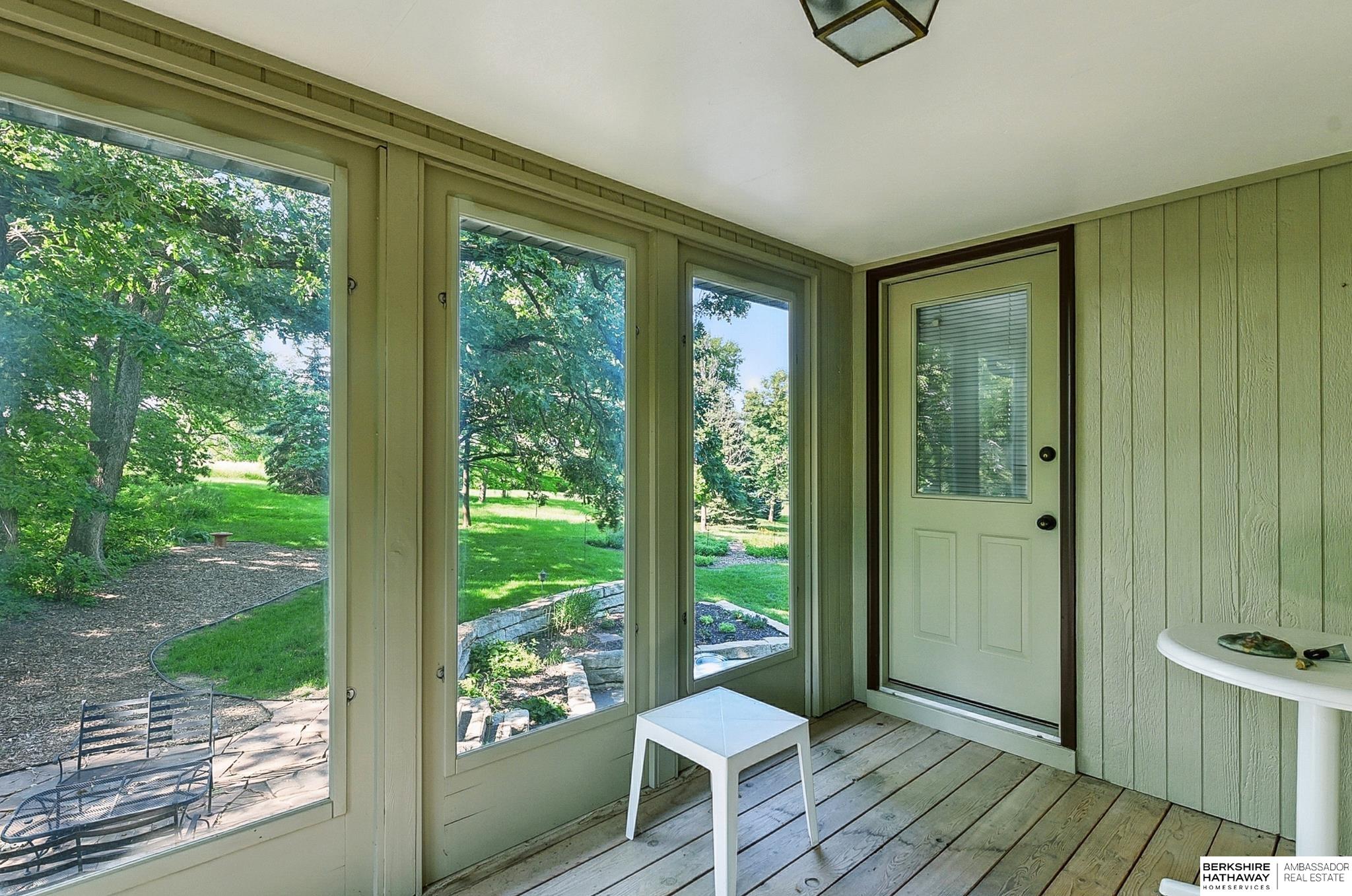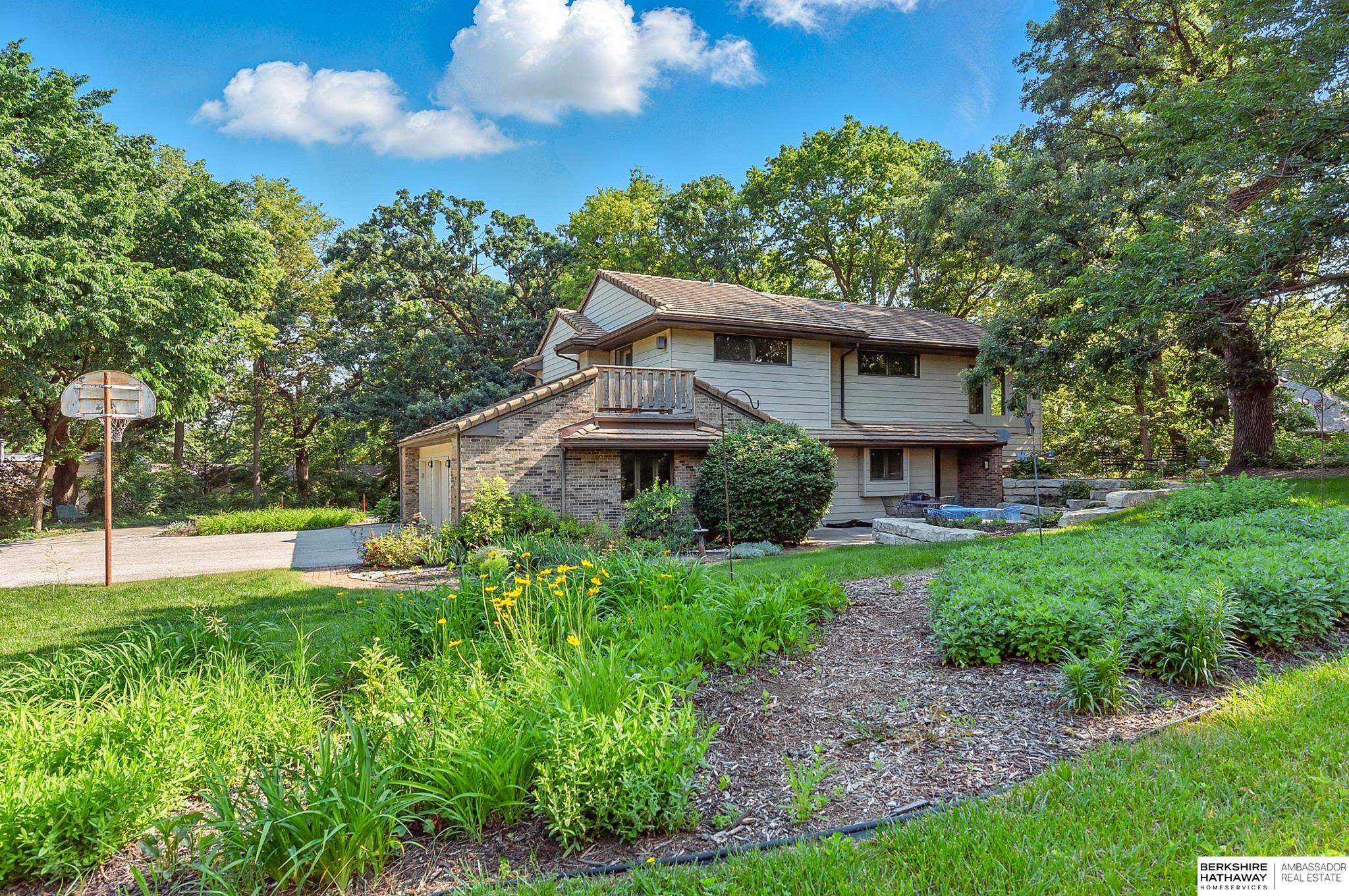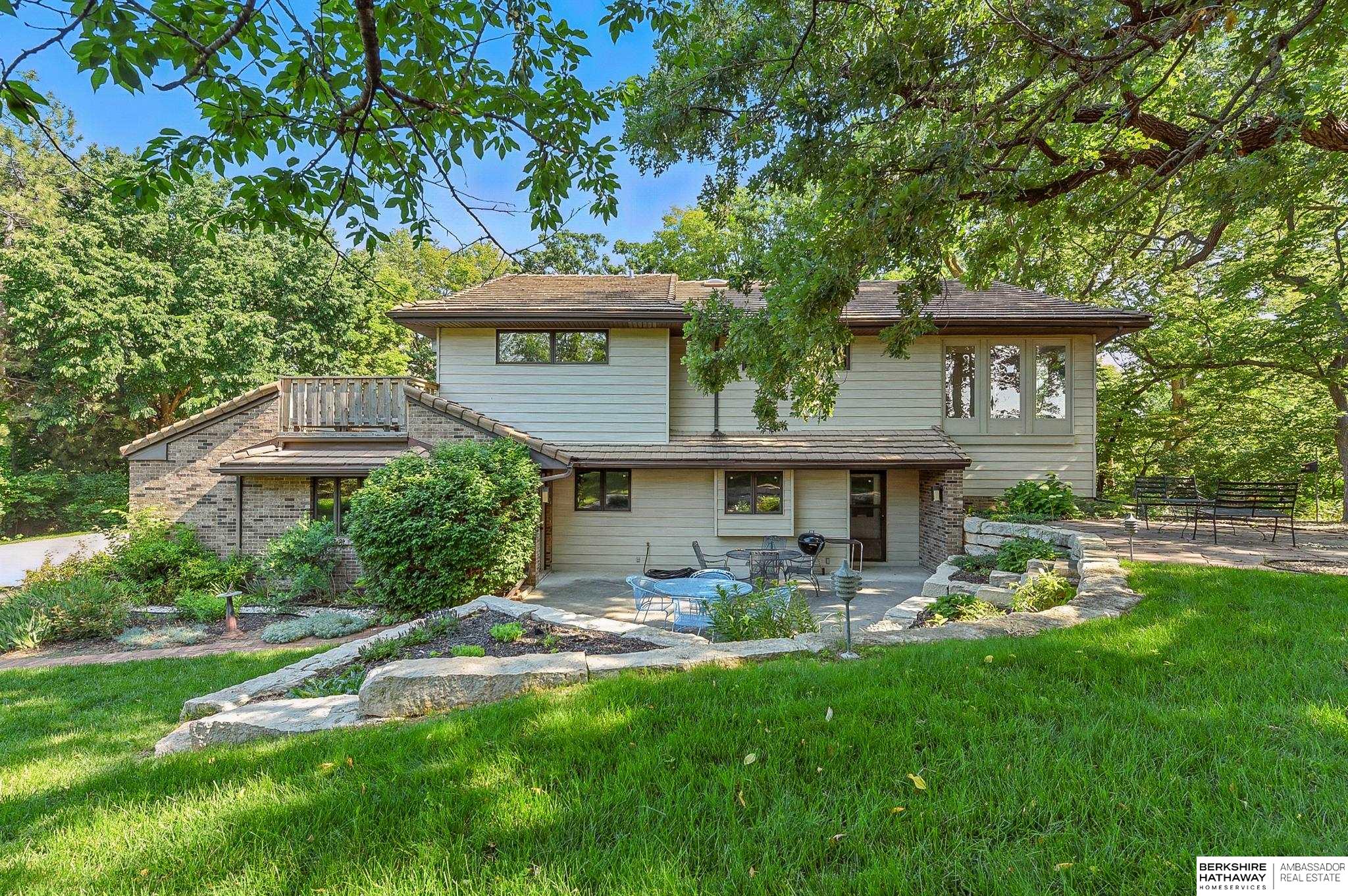 Nestled on a beautifully wooded 1+ acre lot near the prestigious Omaha Country Club, this charming 3-bedroom home offers the perfect blend of privacy, space, & convenience. Surrounded by mature trees and lush landscaping, the property provides a serene, park-like setting just minutes from top-tier golf, dining, & city amenities. The house sits high on a hill w/ a curved driveway and a nice 3-car garage. The main living area features a soaring ceiling that opens to the dining room and a cozy fireplace area that adds comfort & charm. The kitchen includes a comfortable dining area & a very large pantry. There is a main floor private office that could be used as a bedroom if needed. All three bedrooms are on the second floor; two bedrooms access a second floor screened-in porch & the master bedroom has a private deck. Lower level features a comfortable rec room & a media room complemented by a wet bar & wine cellar. You will love the private patio & backyard. Plenty of space to garden.