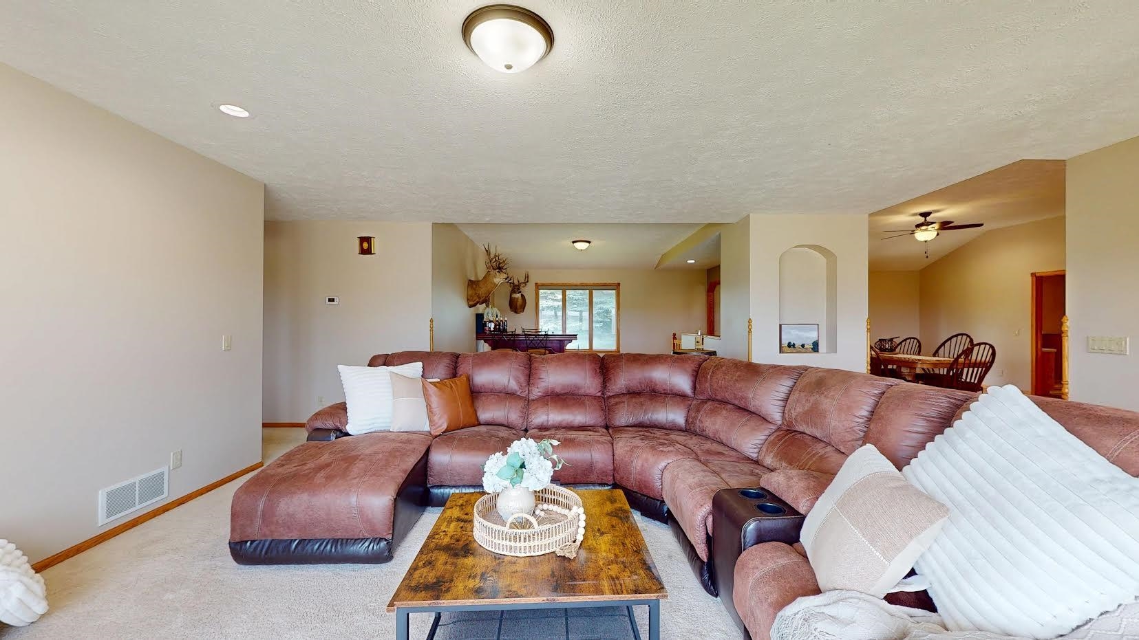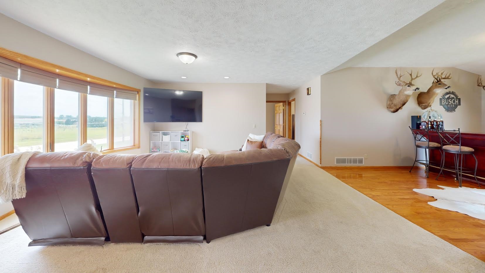 From the moment you arrive, this stunning all-brick ranch-style home will capture your attention. Featuring a U-shaped driveway and an oversized three-car garage with floor drains, the exterior makes a lasting first impression. Step inside to find a spacious and inviting living room that flows seamlessly into a formal dining area. The oversized kitchen offers ample space for cooking and entertaining, complete with a second dining area that leads into a large mudroom. A ¾ bathroom with a brand-new Onyx shower connects to an additional bedroom. The main level also includes a luxurious primary suite with a private en-suite bathroom and a huge walk-in closet, along with an additional bedroom and full bathroom. Head down to the fully finished basement, where you’ll find a large living area, a bonus room, a spacious ¾ bathroom, and two storage rooms—one of which could easily be converted into another bonus space. Convenient interior steps provide direct access to the garage, creating a smart and functional layout. This home offers 3 bedrooms, 1 bonus room, 4 bathrooms, and a 3-car oversized garage, all situated on a beautifully mature lot with underground sprinklers. Additional updates include a newer roof, newer gutters, and custom blinds installed in 2022.