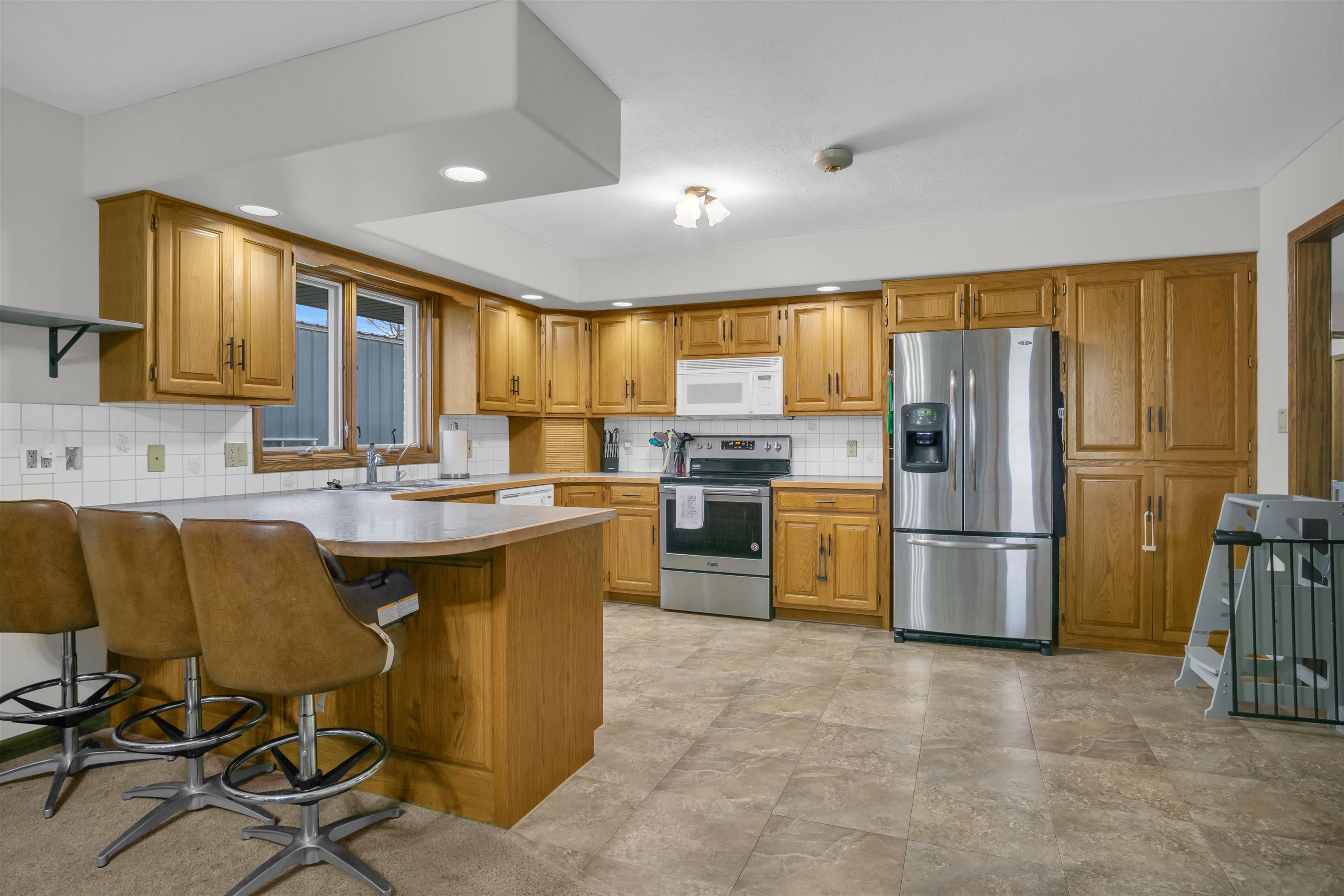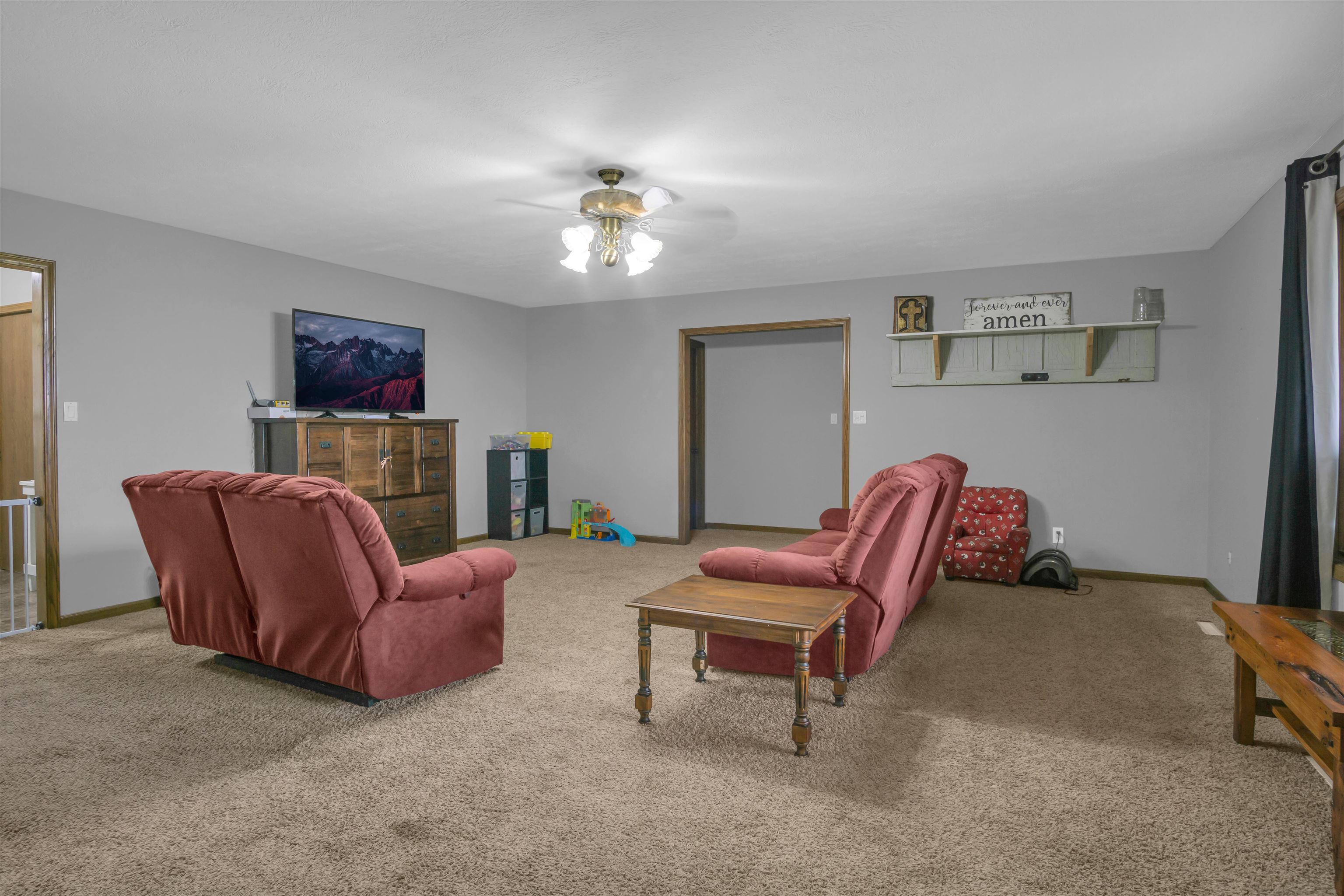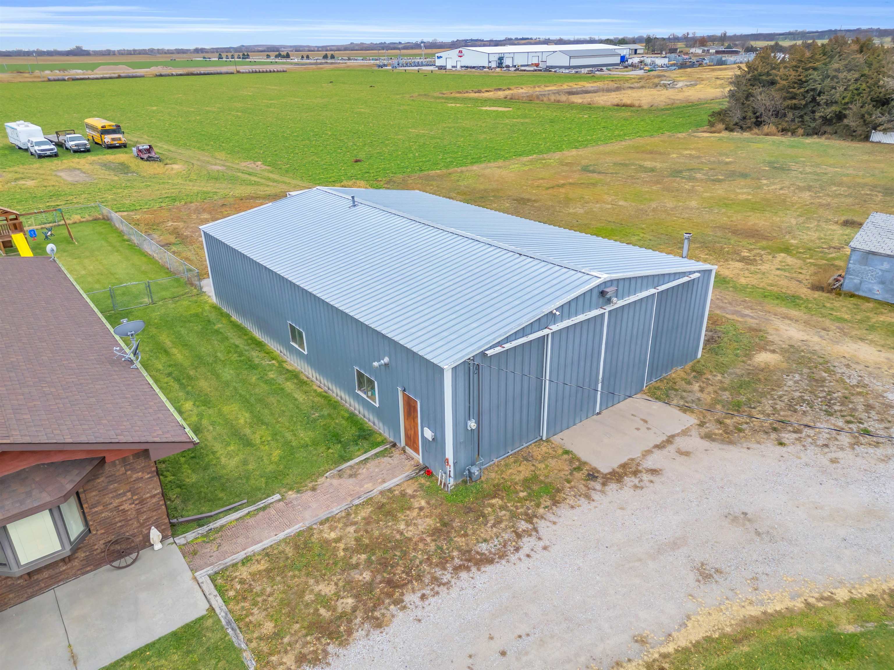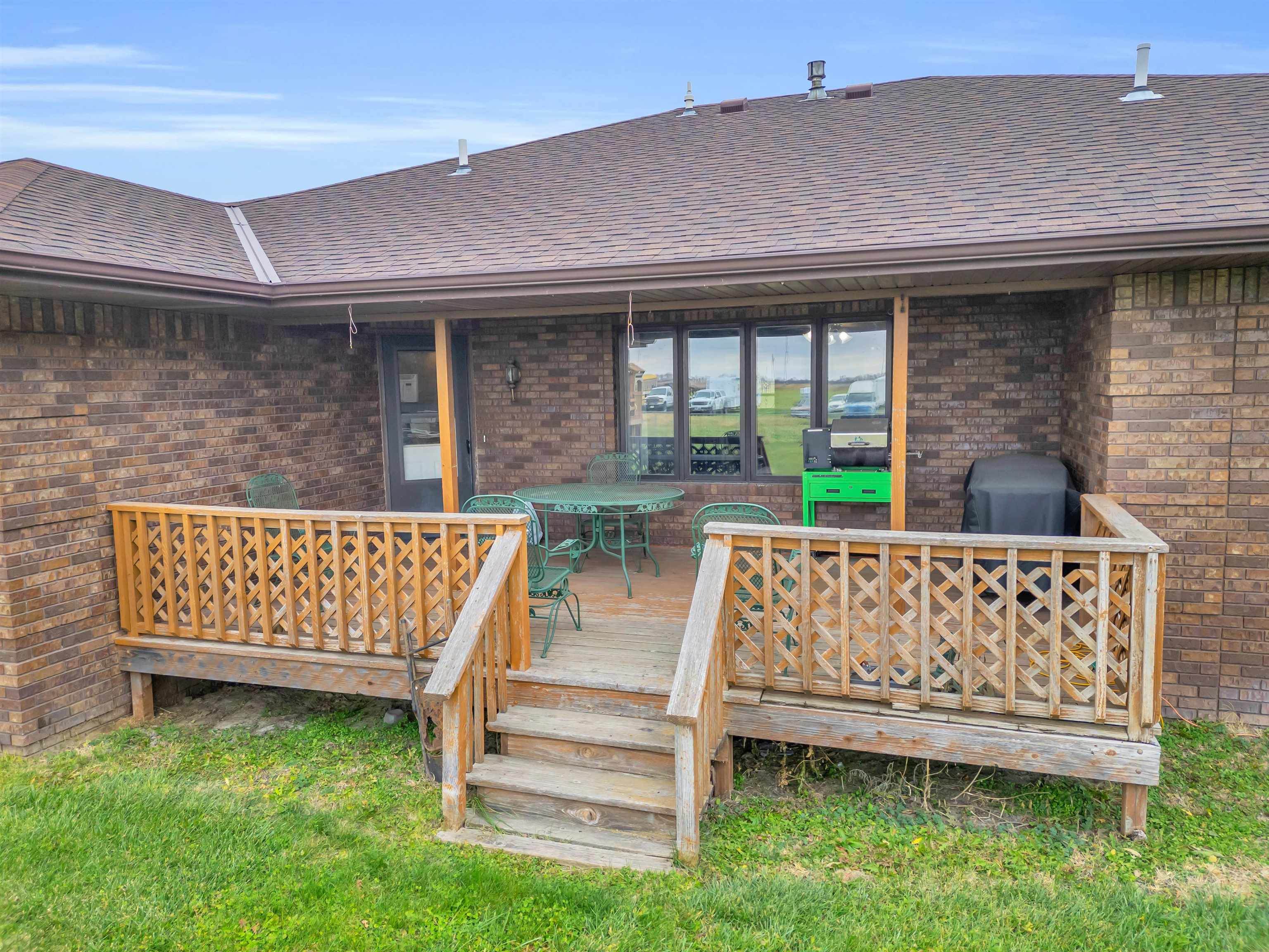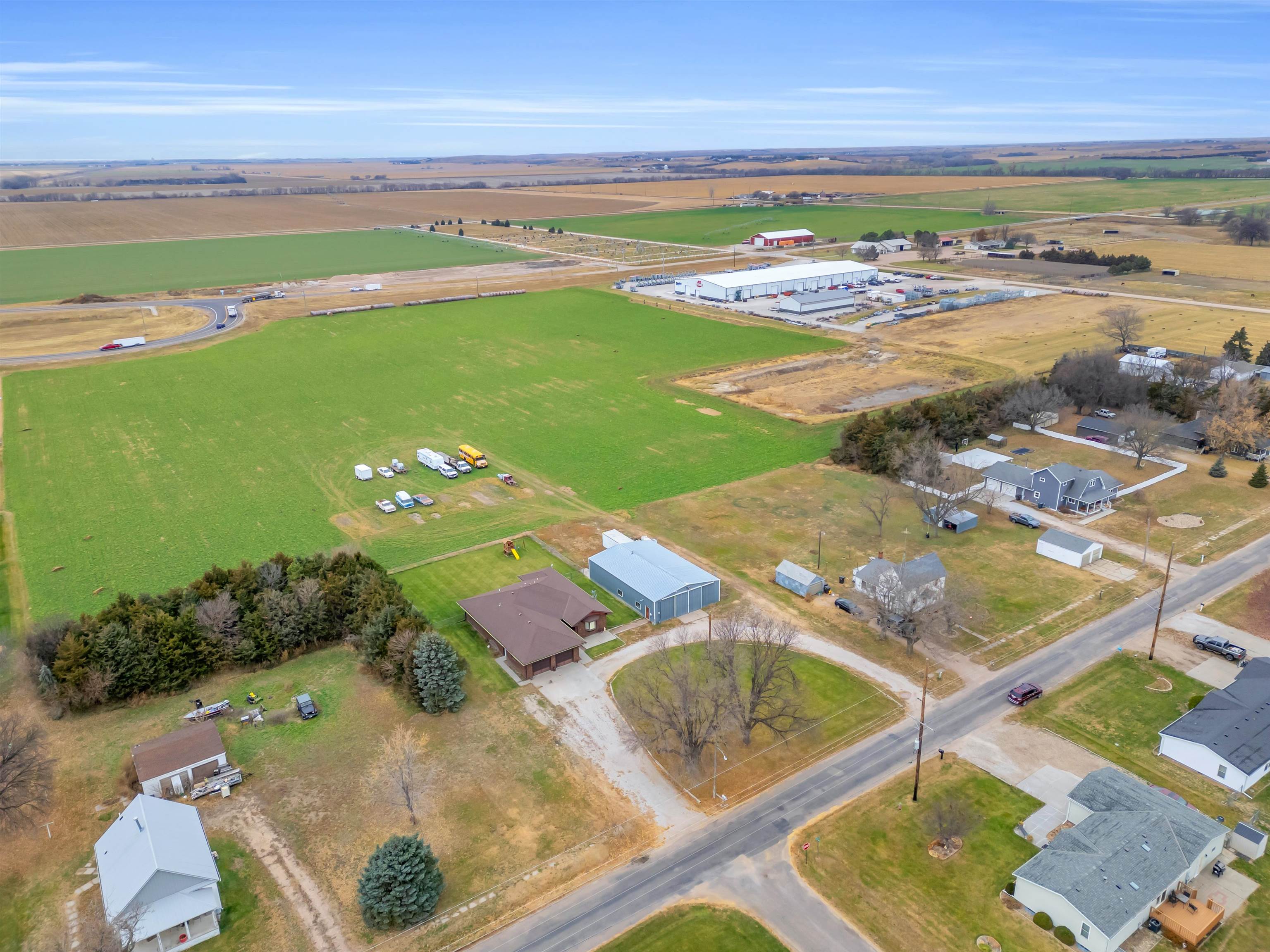Welcome to this move-in-ready, 4-bedroom, 3-bath home offering space, privacy, and functional amenities on the edge of Elm Creek. With an additional 3 acres of land directly behind the home, this property provides rare seclusion while still being close to town. The all-brick exterior adds timeless appeal and low-maintenance durability. Inside, a warm and inviting layout awaits, featuring a dedicated dining room perfect for gatherings and a convenient mudroom off the garage. The primary suite offers a relaxing retreat with a large soaking tub and a separate shower. A spacious 2-car garage provides everyday convenience, while a large Quonset building on the property provides excellent storage or workshop options—ideal for hobbies, equipment, or additional vehicles. The shop includes a new natural gas heater, updated electrical, and lighting. The property also has security cameras installed. The expansive U-shaped driveway allows for easy access and plenty of parking for guests. Step outside to enjoy a chain-fenced backyard, a deck overlooking the peaceful acreage, and plenty of open space to garden, play, entertain, or simply unwind surrounded by nature. This Elm Creek property blends comfort, privacy, and practicality—an ideal home for those seeking room to spread out with the bonus of exceptional country amenities while being close to town.