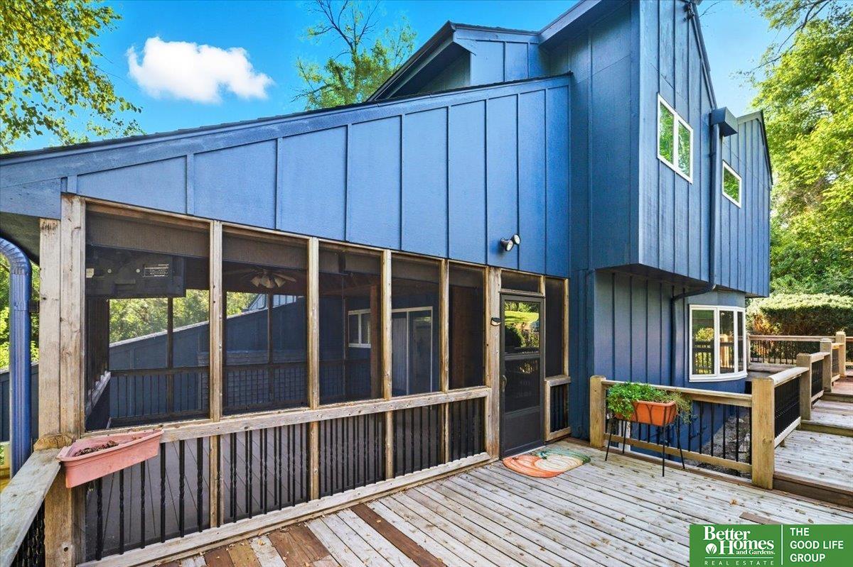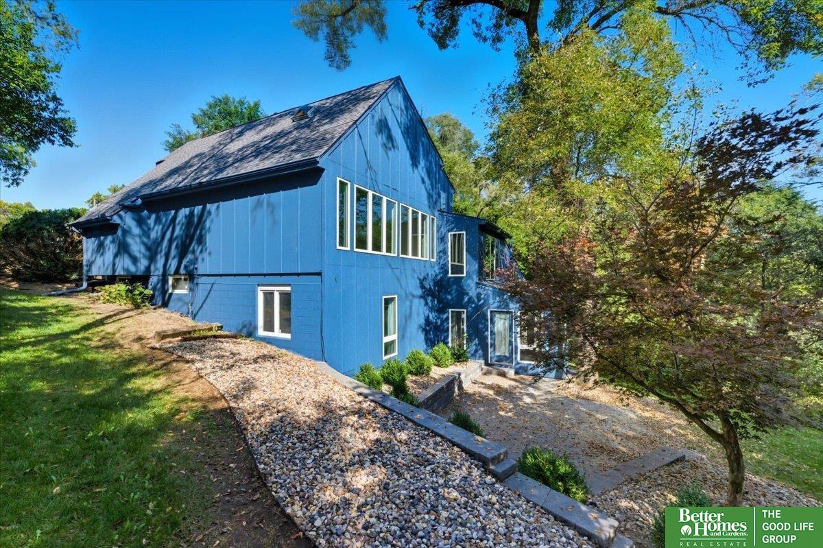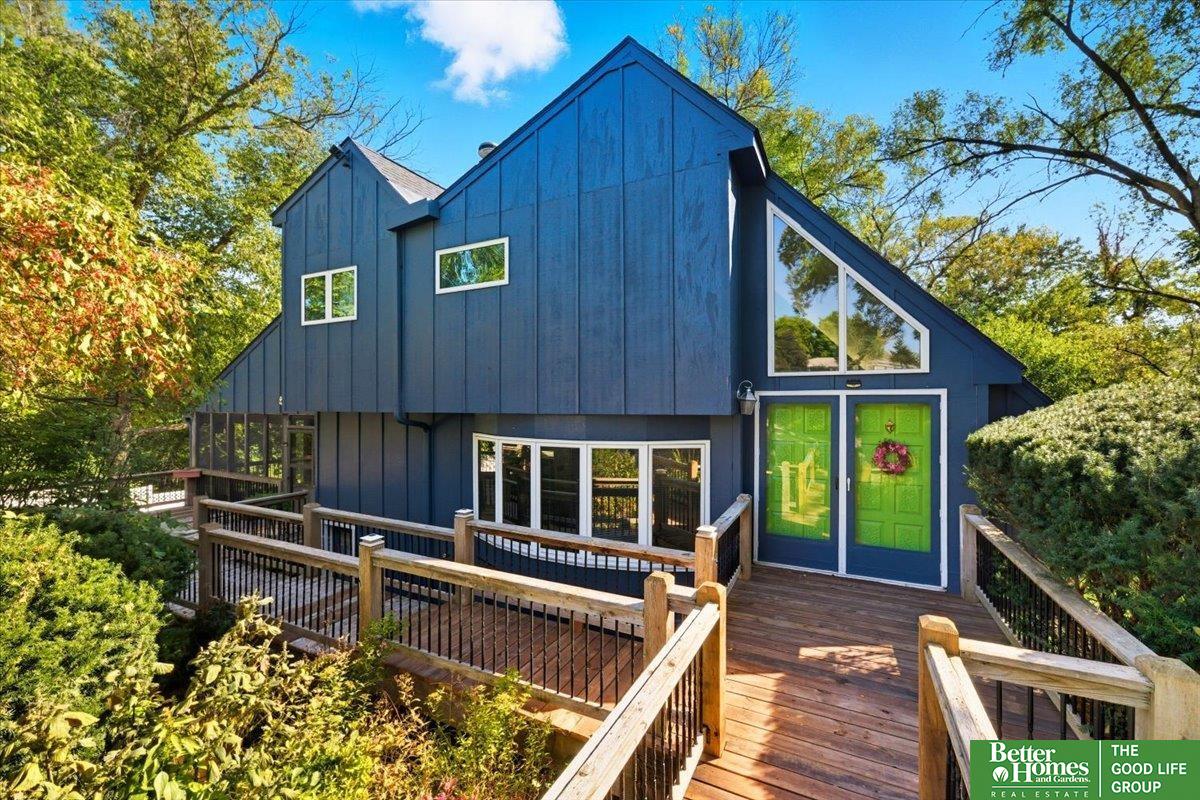 Welcome to the coolest house on the Ridge! This striking architectural gem makes a bold statement with its modern design, soaring ceilings, and walls of windows that flood the home with natural light. The main floor offers a warm, inviting flow perfect for entertaining or quiet nights in, while the upstairs bedrooms feel tucked-away and private. Out front, a charming bridge walkway sets the tone for this one-of-a-kind home, nestled in a wooded setting that feels like your own retreat yet keeps you close to all the conveniences of Council Bluffs. With fresh paint & decking it has curb appeal that turns heads and a layout that's both stylish and functional, this home isn't just a place to live—it's a place to be remembered.