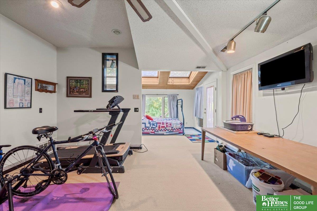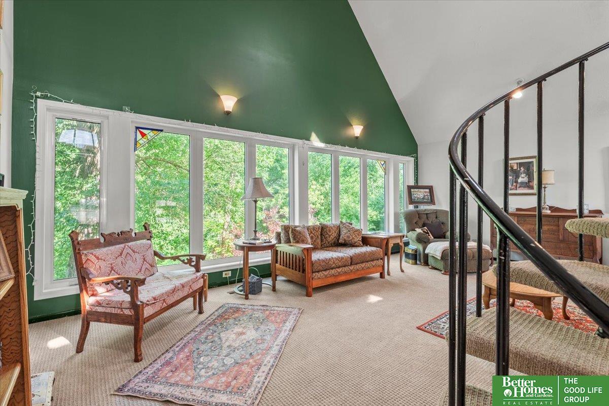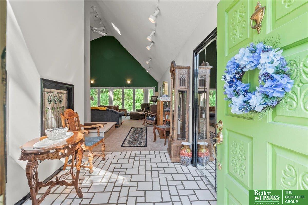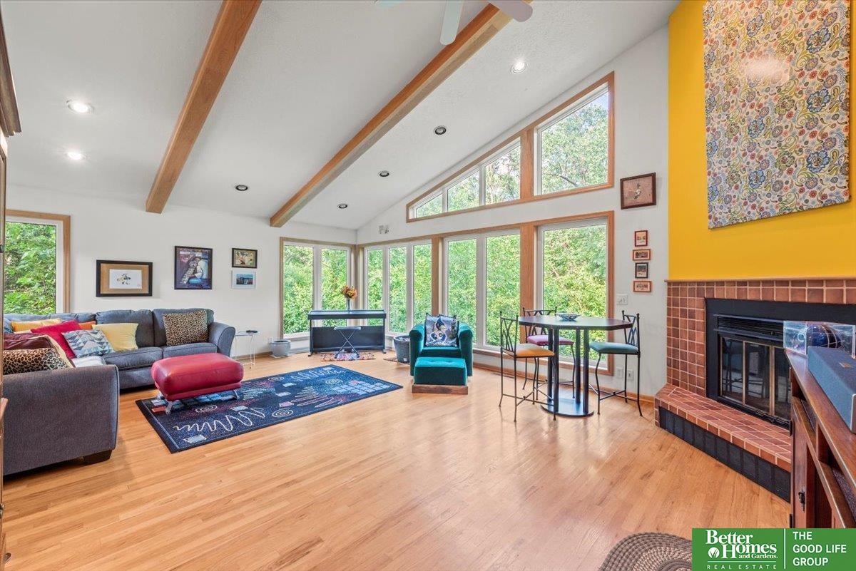 Welcome to the coolest house on the Ridge! This striking architectural gem makes a bold statement with its modern design, soaring ceilings, and walls of windows that flood the home with natural light. The main floor offers a warm, inviting flow perfect for entertaining or quiet nights in, while the upstairs bedrooms feel tucked-away and private. Out front, a charming bridge walkway sets the tone for this one-of-a-kind home, nestled in a wooded setting that feels like your own retreat yet keeps you close to all the conveniences of Council Bluffs. With fresh paint & decking it has curb appeal that turns heads and a layout that's both stylish and functional, this home isn't just a place to live—it's a place to be remembered.