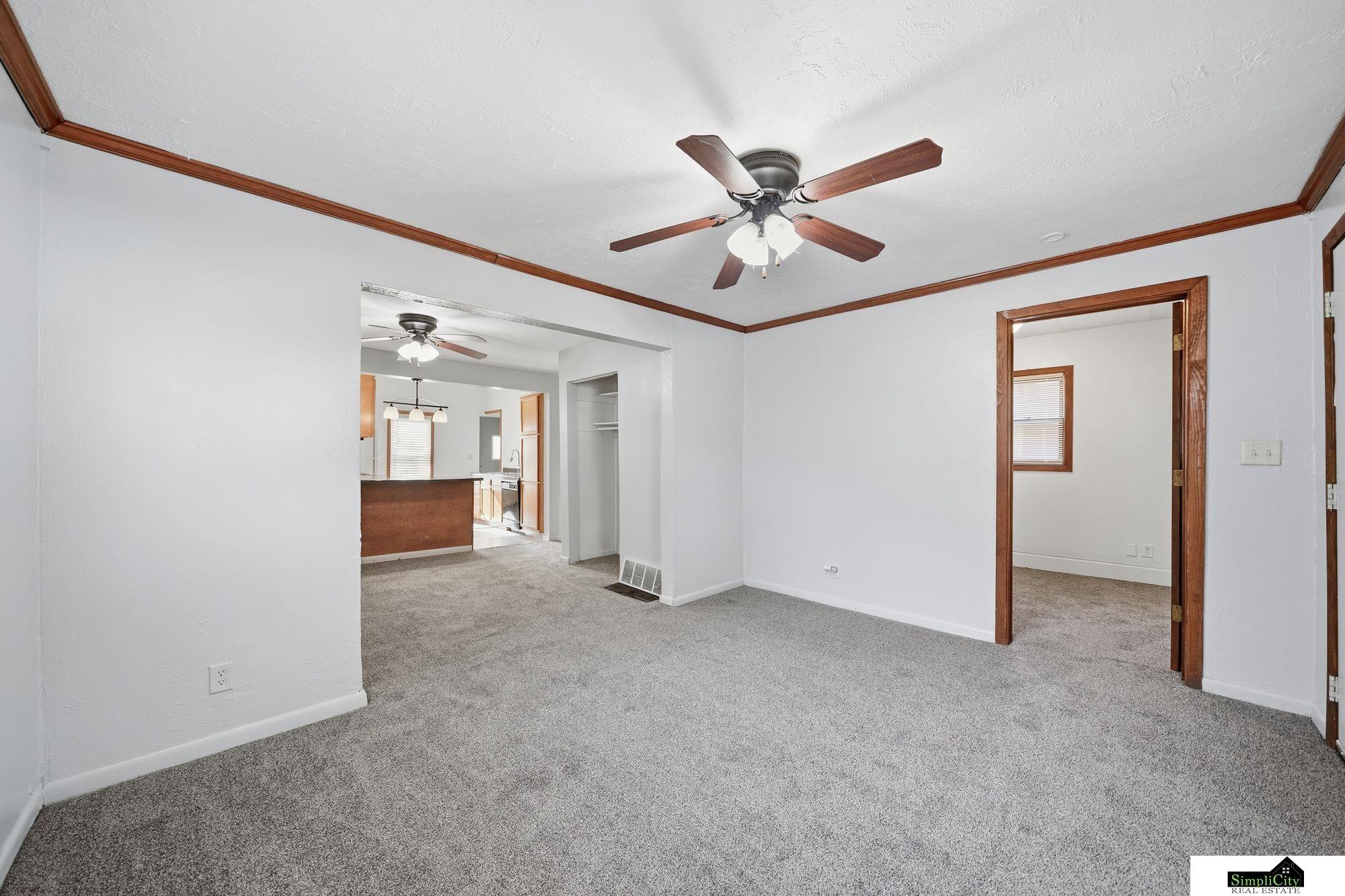 This charming 2-bedroom bungalow has been freshly updated inside and out with new paint and carpet, making it completely move-in ready! Enjoy the open-concept kitchen featuring newer cabinets, modern counters, and a convenient peninsula—perfect for cooking and entertaining. Main floor laundry adds extra convenience. The unfinished basement offers tall ceilings and endless potential for additional living space or storage. Fully fenced backyard with alley access. Call today!