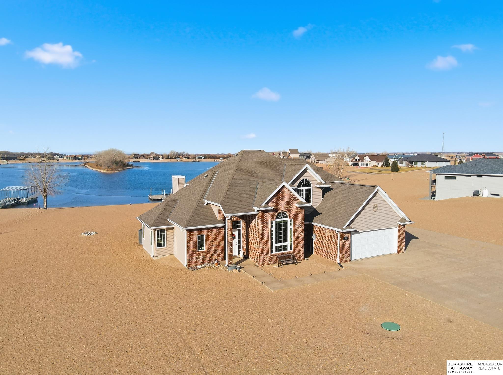 Perfectly positioned on one of the most desirable lots on the lake, this exceptional home offers the ideal blend of comfort, function, and waterfront living. The primary suite is conveniently located on the main floor, while three additional bedrooms upstairs provide ample space for family and guests. The heart of the home features a vaulted living room filled with natural light, creating an open, airy feel ideal for everyday living and entertaining. Step outside to fully appreciate the incredible lot, complete with a cement walkway leading directly to the water for easy lake access. Outdoor living shines with an extended driveway offering generous parking, a dock and lift ready for lake days, and even an outdoor shower, perfect after swimming, boating, or enjoying long summer days. This well-maintained home reflects pride of ownership throughout and is located in a community with a low annual HOA fee, offering exceptional value and a peaceful lake lifestyle.