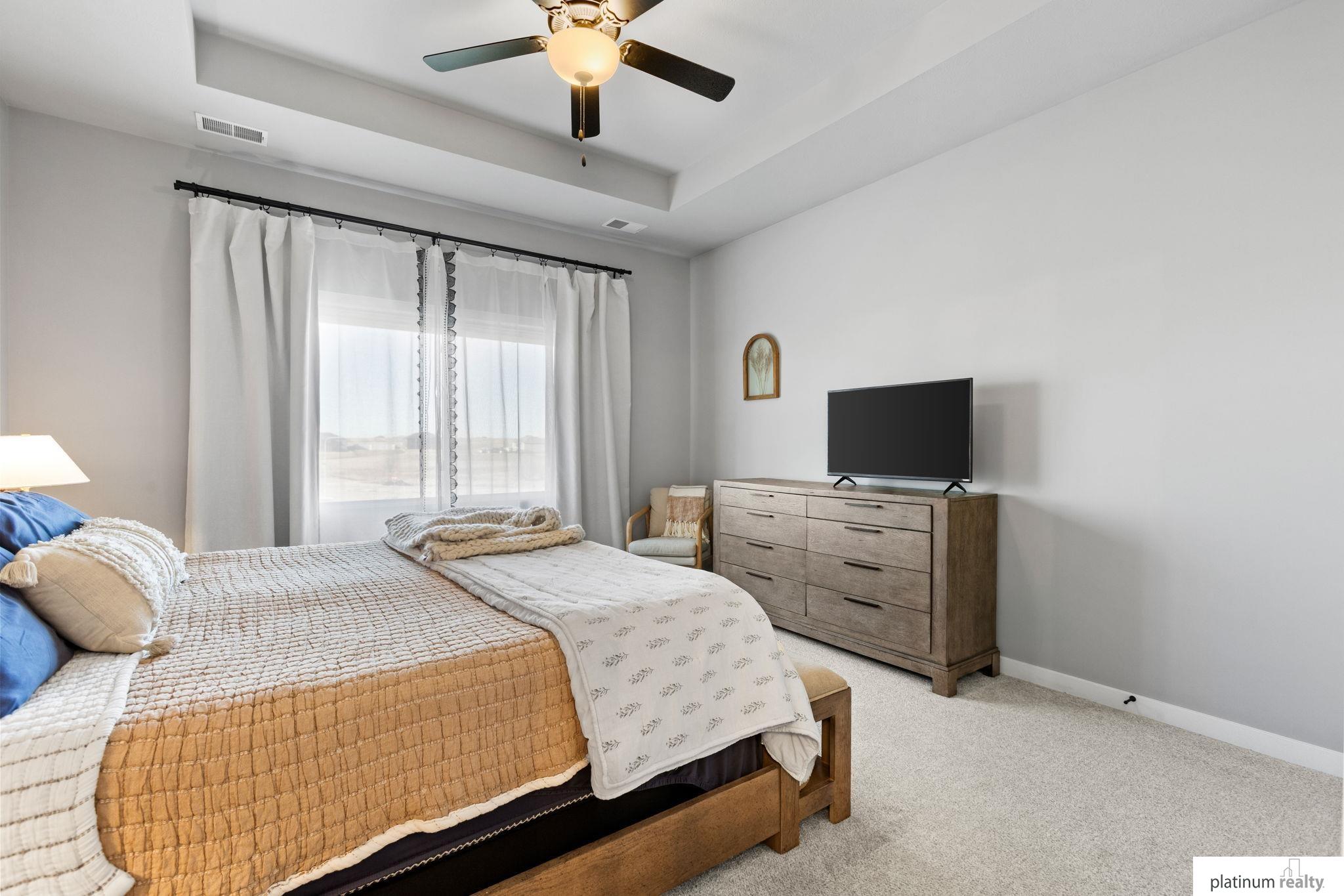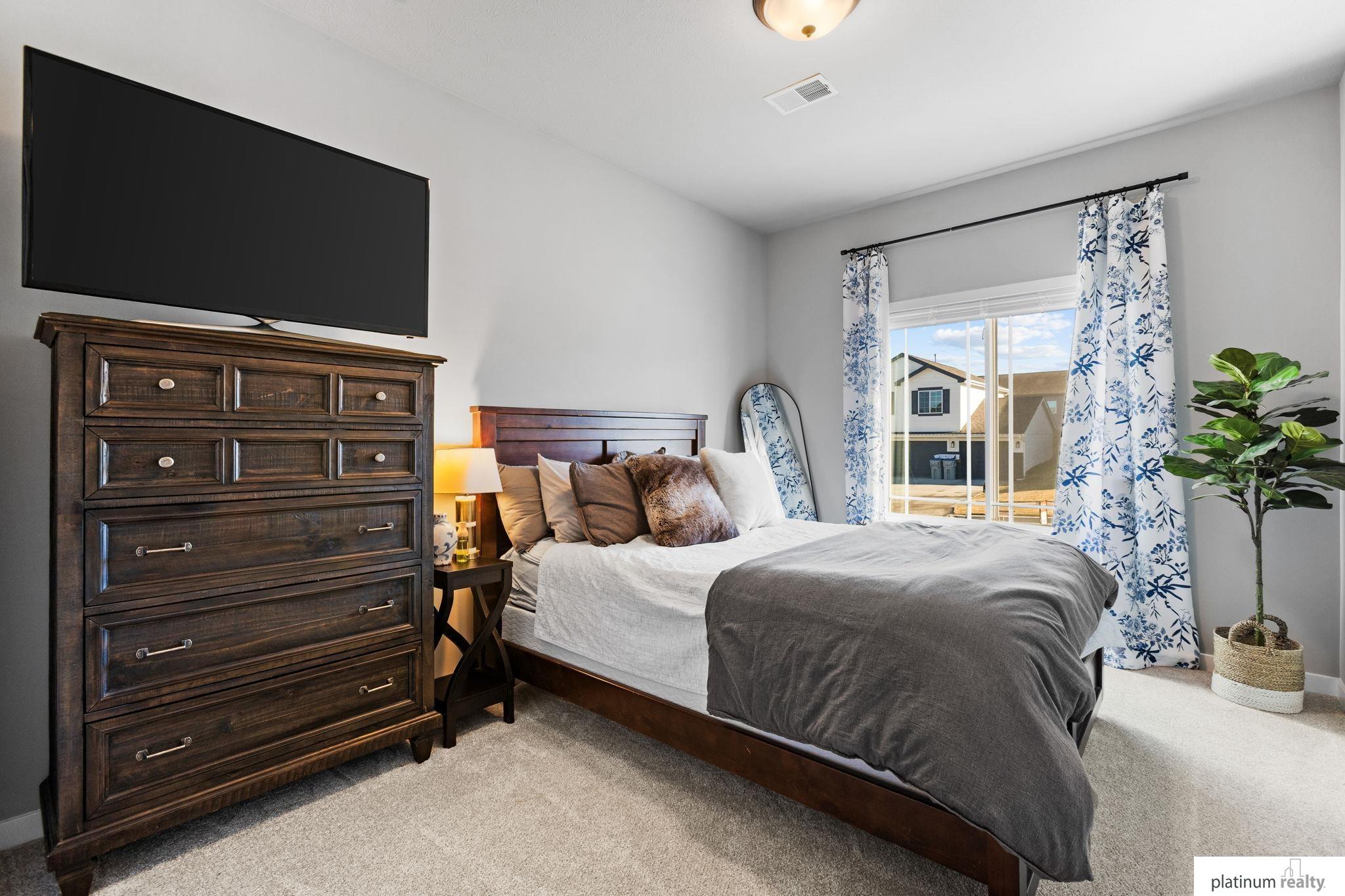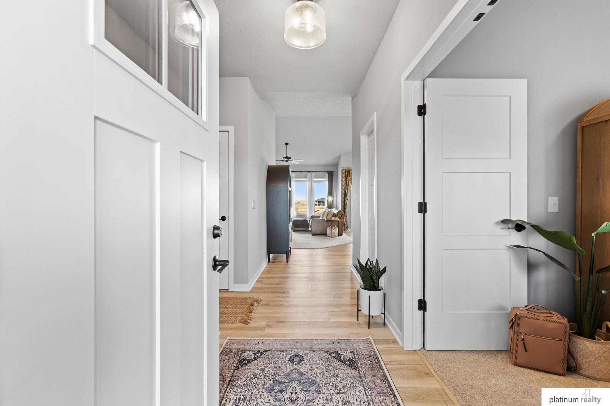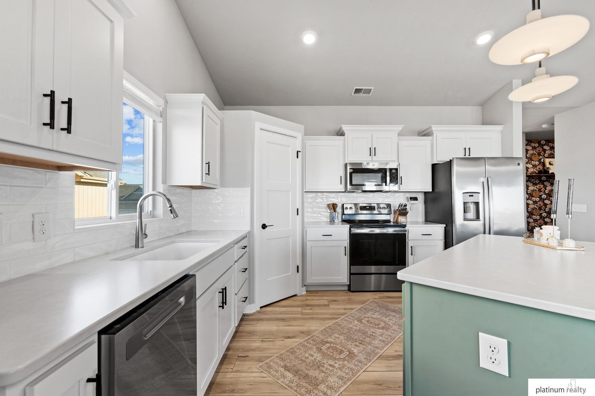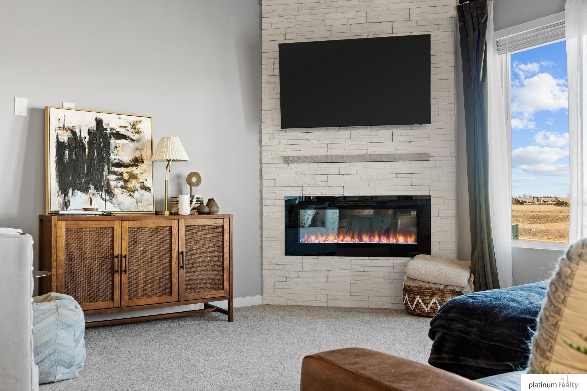 Discover the perfect blend of comfort, style, and low-maintenance living in this nearly new “Brantley” floorplan patio home built by Celebrity Homes. Only three years old, this thoughtfully designed residence offers an inviting open layout with vaulted ceilings and abundant natural light. The bright kitchen features white cabinetry, a tile backsplash, quartz countertops, pantry, island with pendant lighting, and LVP flooring that flows into the dining area. The living room includes plush carpet, an upgraded stone fireplace, and backyard views. The spacious primary suite offers a private ¾ bath and walk-in closet, with a large laundry room conveniently nearby. Two additional bedrooms, a full bathroom, and a functional drop zone complete the interior. Step outside to a covered patio, spacious yard, and beautiful sunset views. Townhome Association dues cover snow removal, lawn care, and sprinkler system maintenance for truly effortless living.