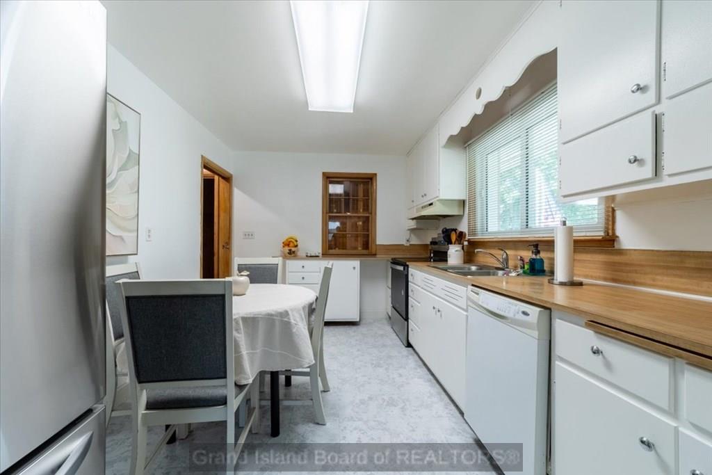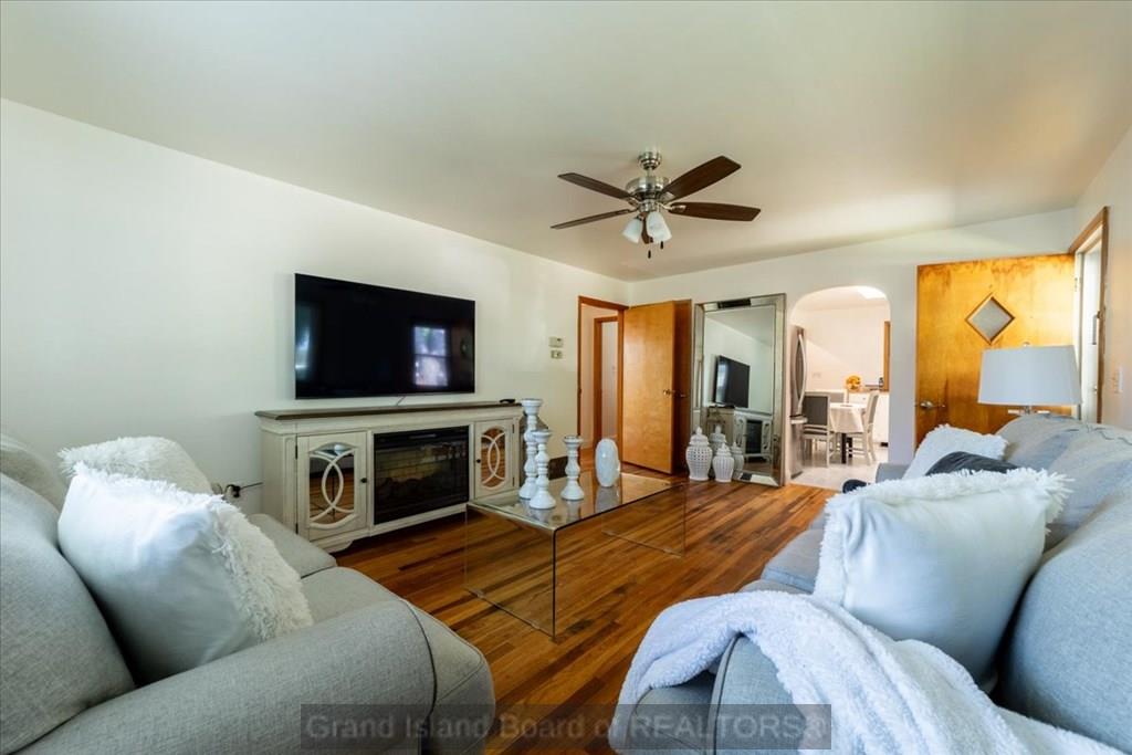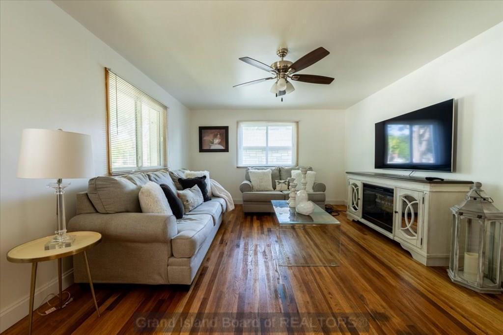 Located in a peaceful neighborhood in the heart of North Grand Island, this beautifully updated bungalow is full of space, character, and charm. Conveniently near schools, shopping, and the hospital, it offers 2 bedrooms and 2 bathrooms, plus a fully finished basement with a spacious second living room, office/non-conforming bedroom, bonus kitchenette, and abundant storage. The main level highlights original hardwood floors, fresh paint, new windows, and an updated bath. A cozy 9 x 28 breezeway with a fireplace (not included in the listed square footage) adds a unique touch. The backyard features an enclosed patio, underground sprinklers, and a brand-new roof and gutters in 2024. With all of its special features and this new hot price, this one won't last long!