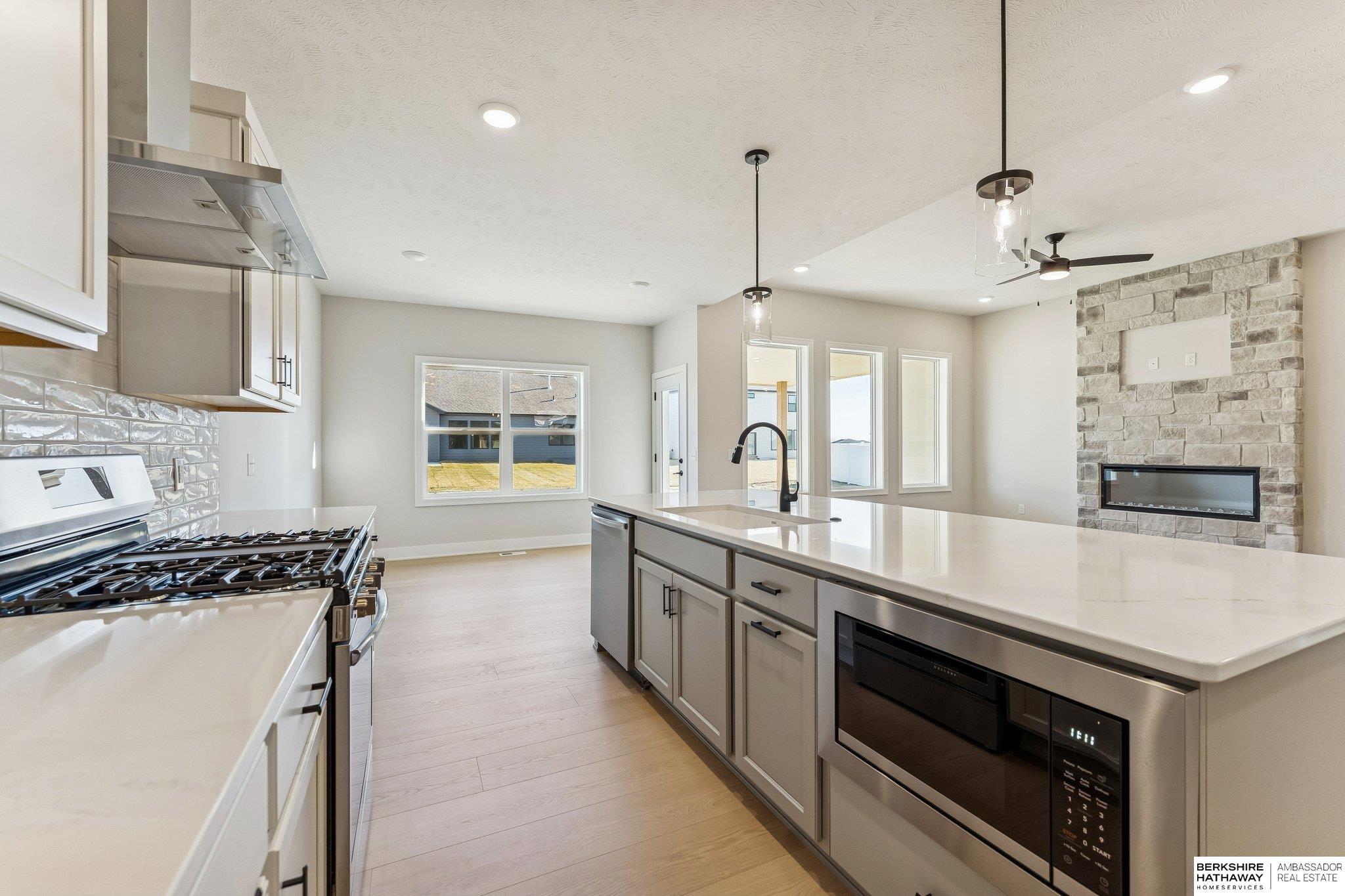 Welcome to The Home Company’s newest ranch floor plan, the Paloma! This stunning home offers 4 bedrooms, 3 bathrooms, and a 3-car garage with over 3,200 finished square feet. The spacious kitchen features an oversized island, quartz countertops, 3x12 subway tile backsplash, and a walk-in pantry, all opening to a bright living room with picture windows and a floor-to-ceiling stone fireplace with electric insert. The finished lower level includes a large rec room, bedroom, ¾ bath, and wet bar—perfect for entertaining. Situated on a flat lot with sprinkler system and a covered extended patio for outdoor enjoyment. Move in Ready!