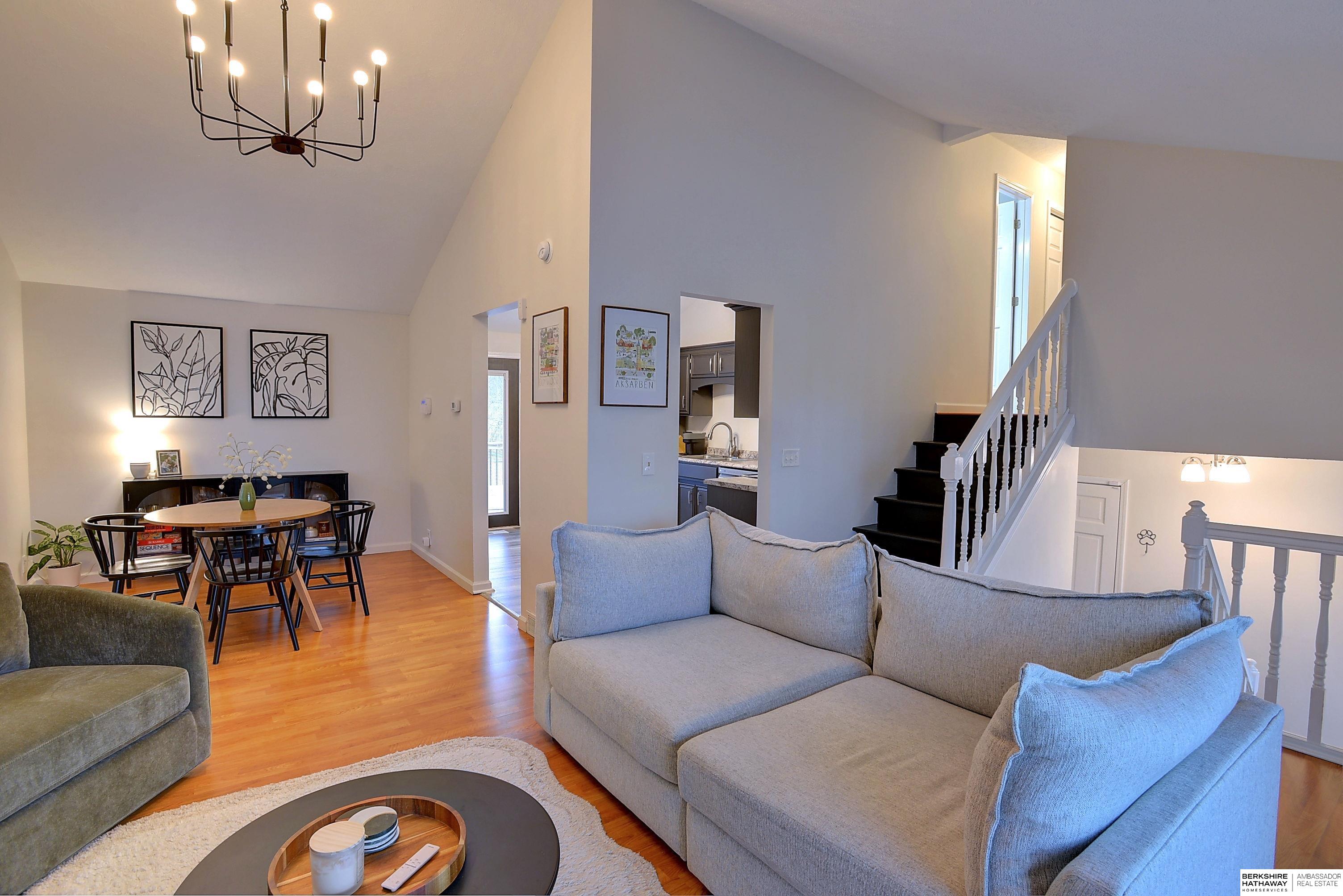 Welcome Home to The Highly Sought-After Rambleridge Subdivision in Northwest Omaha. Step into this 3-bedroom, 3-bath, Pristine, Multi-Level Home Where Modern Aesthetic Meets Meticulous Care and Thoughtfully Designed Interior! Light, Bright, & Airy Combo Dining Room/Great Room with A Striking Fireplace. Beautifully Updated Kitchen w/ SS Appliances & gorgeous cabinets that create a beautiful contrast against the neutral color palette. Spacious Primary Bedroom w/ Decorative Wall & 3/4 Bath. Lower Level family Room Walks out to A Spacious Fenced Backyard. Newer Windows & Vinyl Siding. Close to Schools, Shopping, Dining, and Interstate Access, and More! Neighborhood Common space has a playground, Tennis Court, Basketball Court, and More. Seller providing an AHS Home Warranty to the Buyer. Don't Miss this Turn-Key Home Waiting for you!