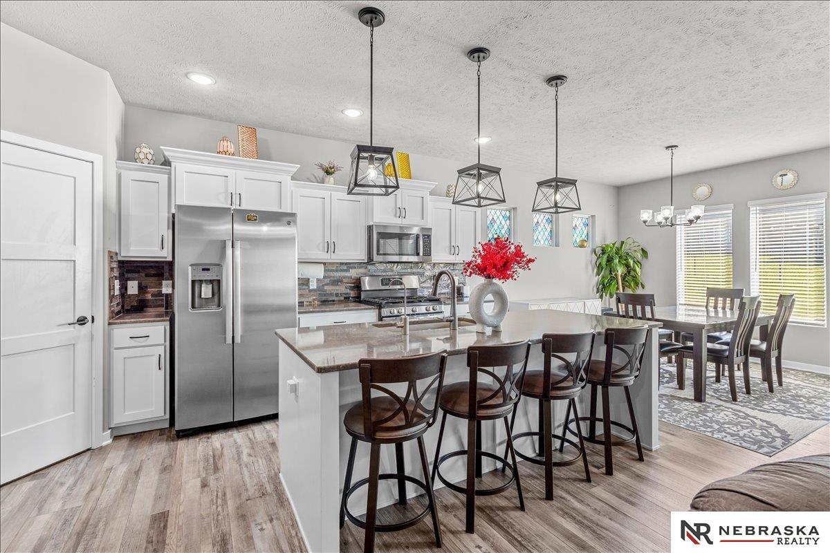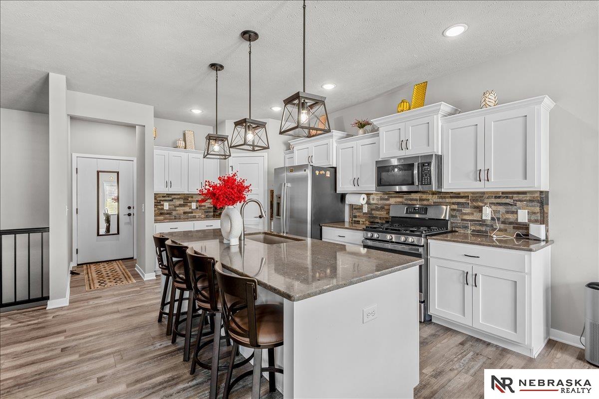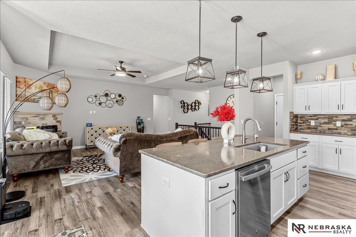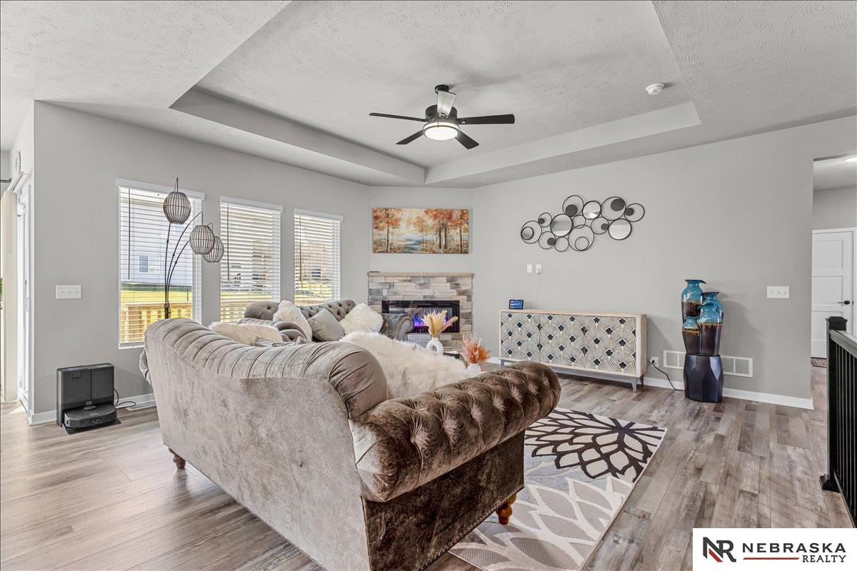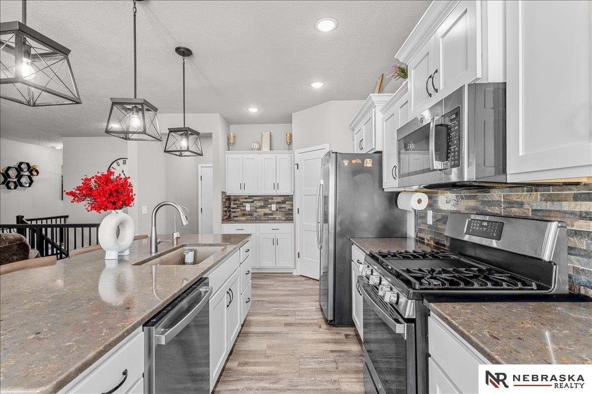 Welcome to this stunning lake-facing home in the highly desirable Bennington School District! Just 2 years young and in excellent condition. This beautifully maintained home offers the perfect blend of modern style, comfort, and convenience. Featuring 4 bedrooms and 3 bathrooms, this home provides plenty of space for entertaining. The main level offers a cozy living room with a fireplace, creating the perfect spot to relax and unwind. The kitchen is designed for everyday living, complete with a spacious pantry and all appliances included. Finished lower level provides even more living space with a bedroom, bathroom, and a large family room - ideal for a Rec room, media space or hosting guests. Step outside and enjoy peaceful lake views, perfect for morning coffee or evening sunsets. Conveniently located near shopping, dining and amenities, this home has it all. Like-new, move-in ready, and in a prime location - this one is a must-see! AMA