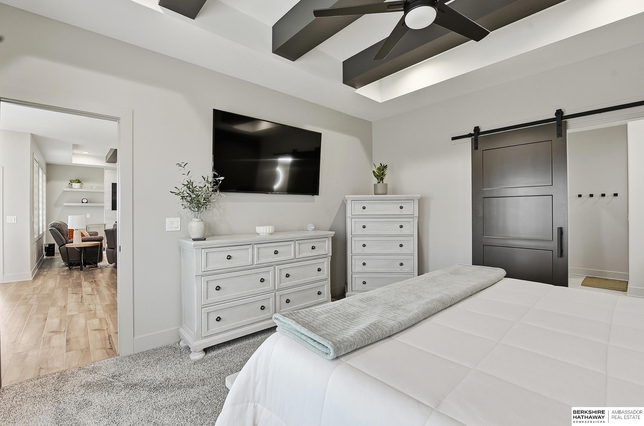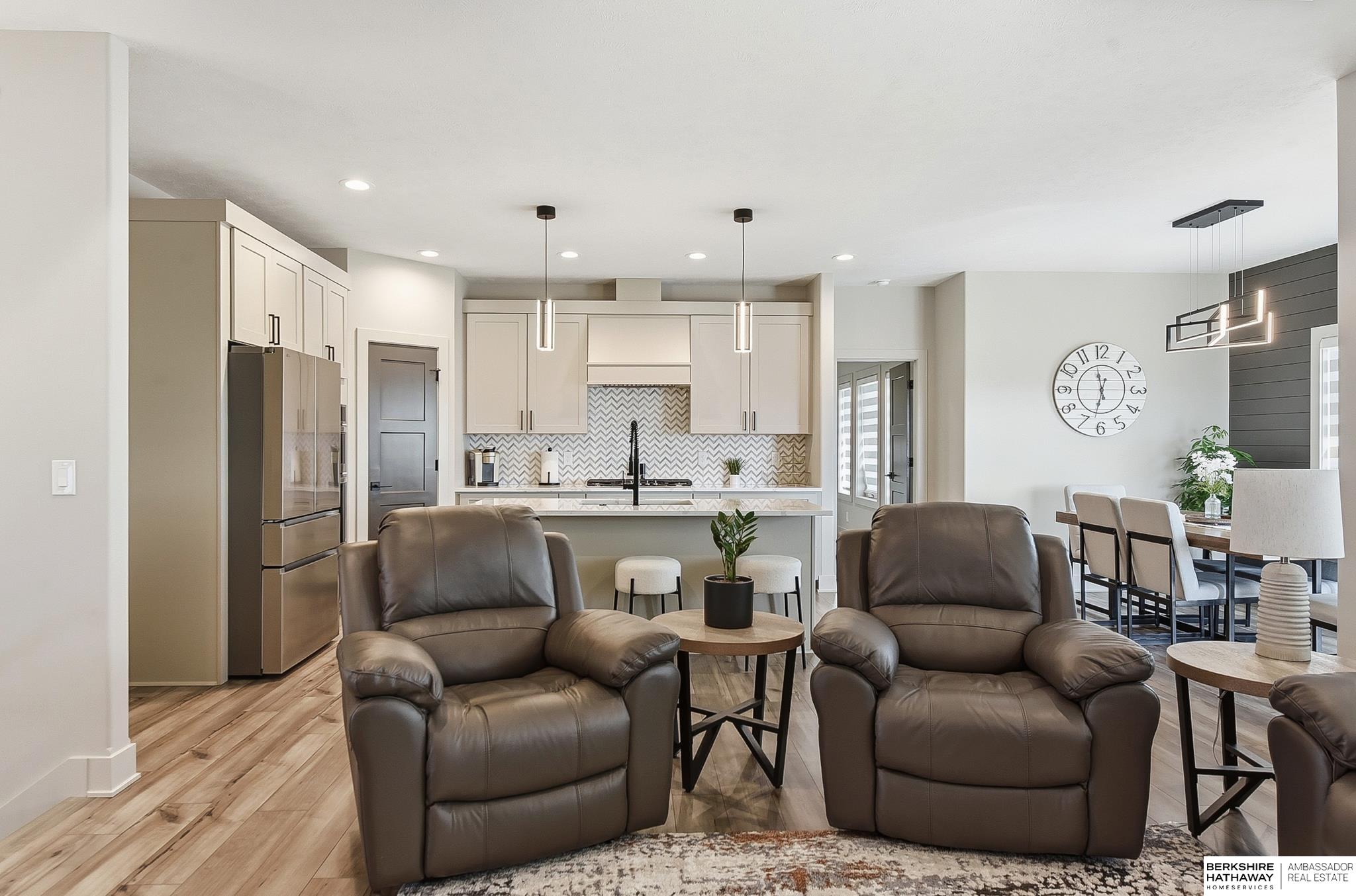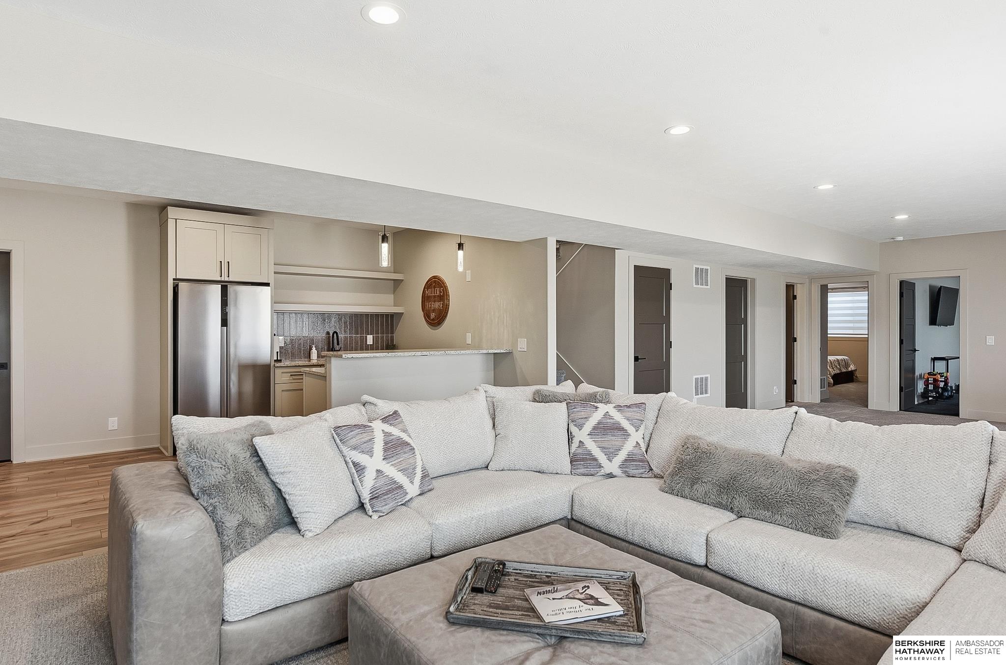 Better than NEW & less than one year old, this stunning 5-bed, 3-bath WALKOUT ranch sits on a flat lot and is LOADED with upgrades. The bright, open floor plan features a spacious living area with a fully tiled fireplace and abundant natural light flowing seamlessly into the kitchen, complete with generous cabinet space (soft close) & a walk-in pantry. The gorgeous primary suite showcases a designer accent wall and barn door leading to a spa-like bath and large walk-in closet with convenient access to the laundry room. Two additional bedrooms and a full bathroom complete the main level. The fully finished basement offers exceptional entertaining space with a wet bar and refrigerator, plus two more spacious BRs/gym & ¾ bath. Step outside to enjoy the private backyard with no rear neighbors from the covered deck or expansive patio. Bonus features include a whole-home generator gas line, water softener, heated garage, and hail-resistant shingles for ultimate convenience and protection.