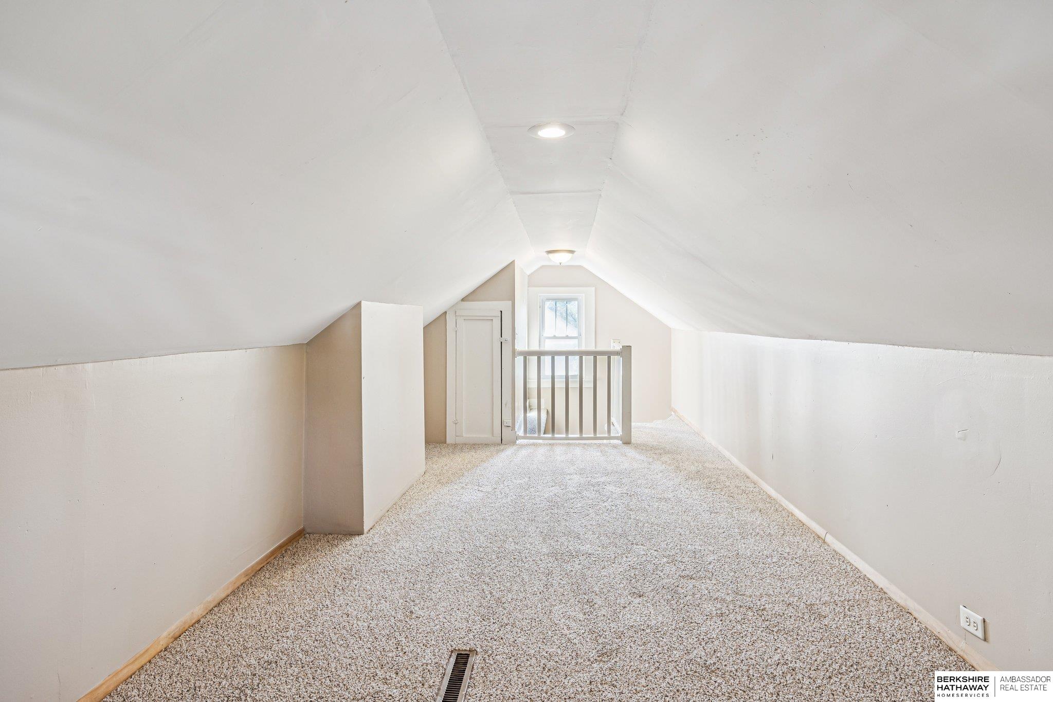 Charming 3-bedroom in a prime central location just minutes from Downtown, Midtown, UNMC, Creighton, and more! This home features an open and inviting main level with a seamless flow between the living room, kitchen, and dining area—perfect for everyday living and entertaining. 2 bedrooms and an updated full bathroom complete the main level. Upstairs, you'll tons of space, perfect for a bedroom or bonus living area. Sitting on nearly half an acre, the massive lot with mature trees and a huge deck provides endless possibilities for outdoor enjoyment. The attached 1-car garage adds extra convenience. Don’t miss this fantastic opportunity near the heart of Omaha!