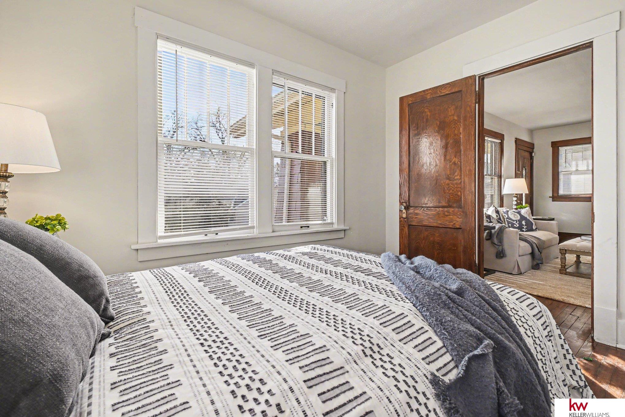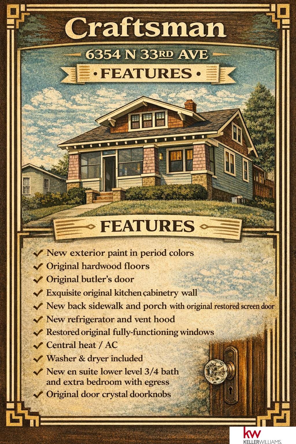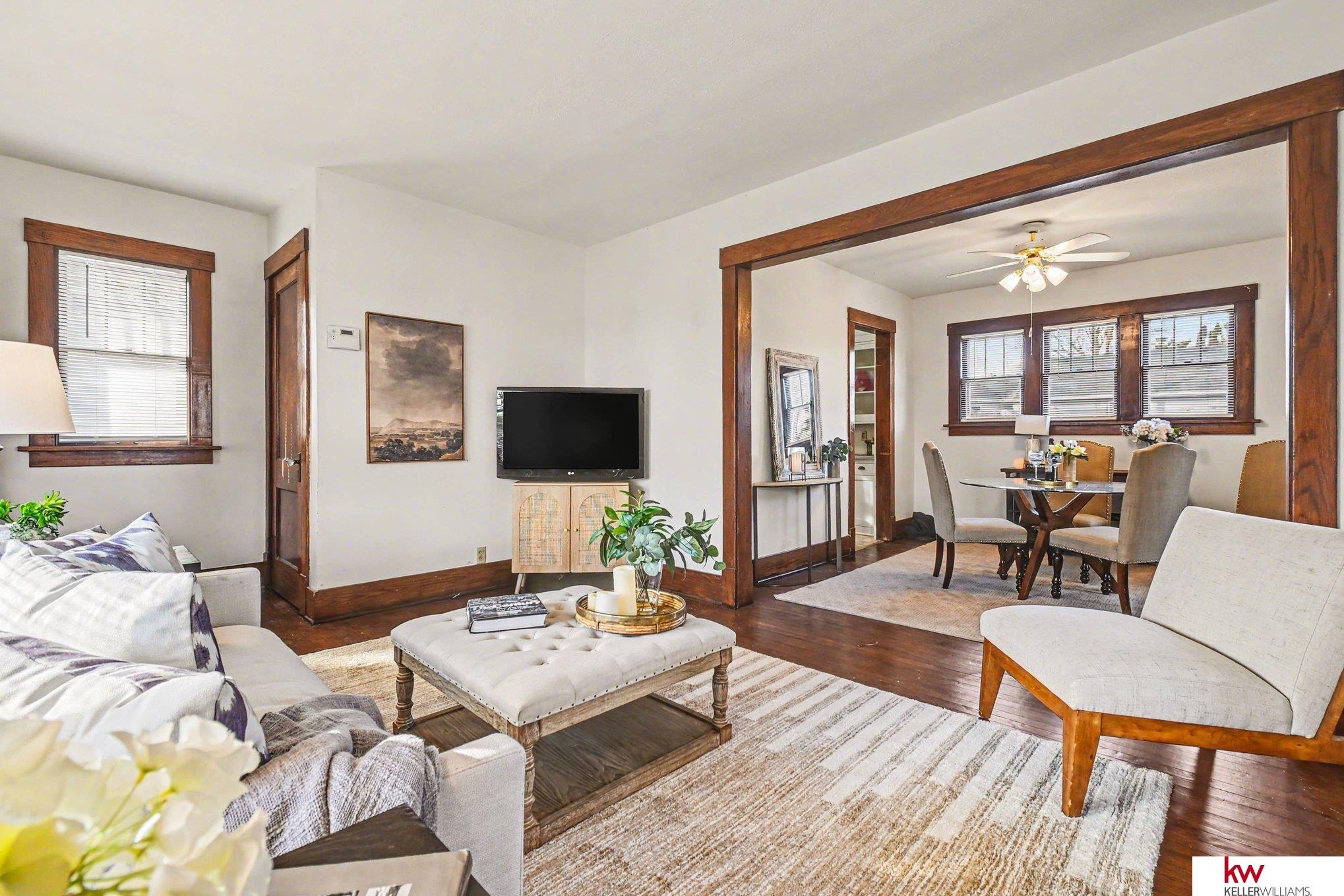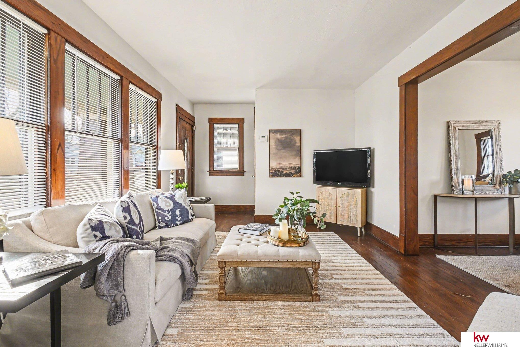 True 1925 Craftsman bungalow, elevated on a prominent corner just steps from Miller Park. Original cedar lap siding and shake-post detailing have been meticulously restored, with preserved woodwork, crystal hardware, and hardwoods throughout. Modern updates include central air, plus a beautifully finished lower level with egress bedroom and ¾ bath. Historic charm meets thoughtful modernization. Beautifully restored North Omaha Craftsman—rare authenticity with thoughtful updates! Vintage exterior colors, classic porch columns, restored original windows, and preserved interior woodwork/floors. Kitchen features an impressive wall of original cabinetry with vintage hardware. New poured sidewalk + new back deck. 3 off-street parking spaces (no garage). 3 BED / 2 BATH with two main-floor bedrooms + lower-level bedroom & bath with safety egress. Pre-inspected. Showings begin Sunday, Feb 15 at 1 PM. Text 402-906-3789 for reservations to see this exquisite mini Craftsman! Open House 2/15 1-3pm