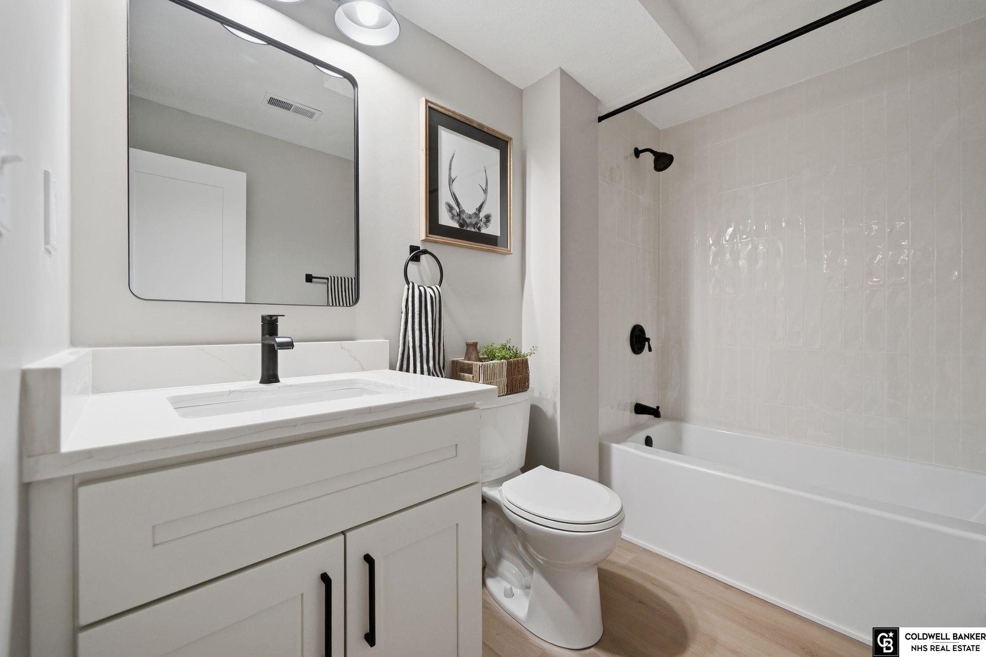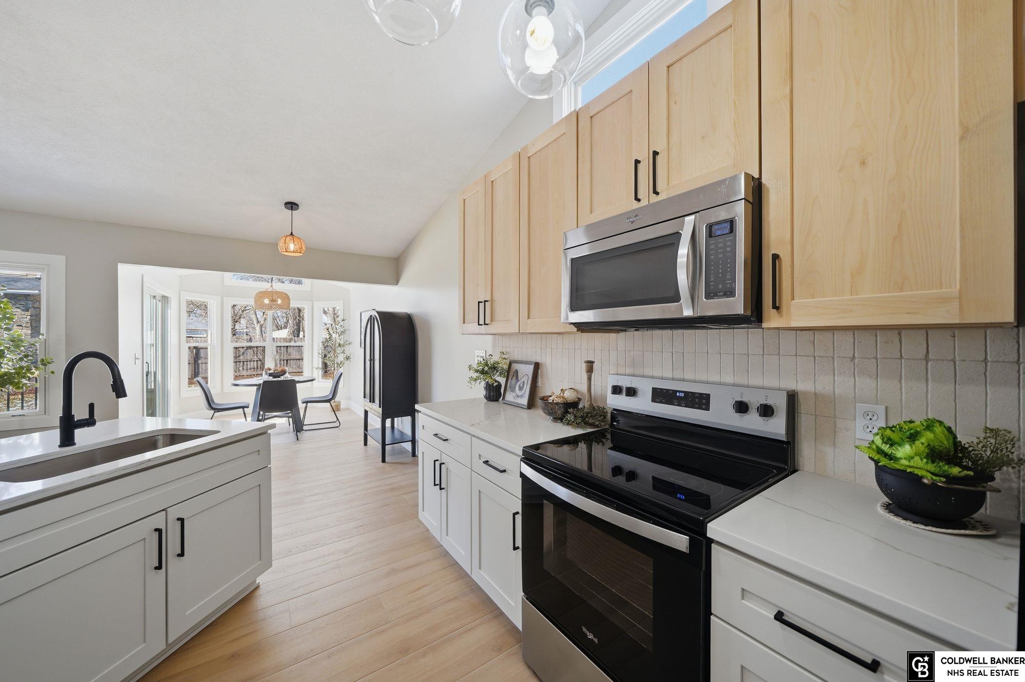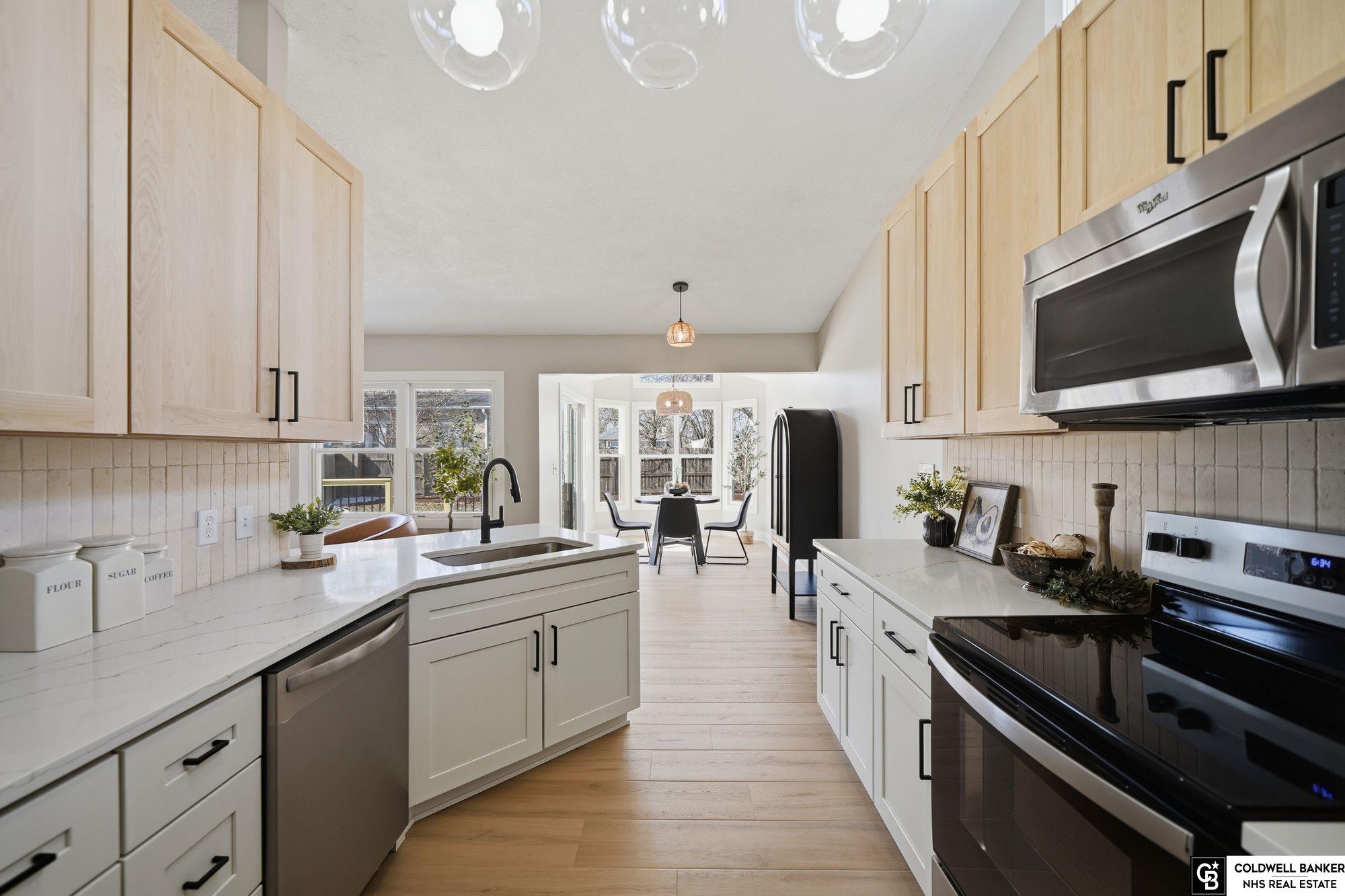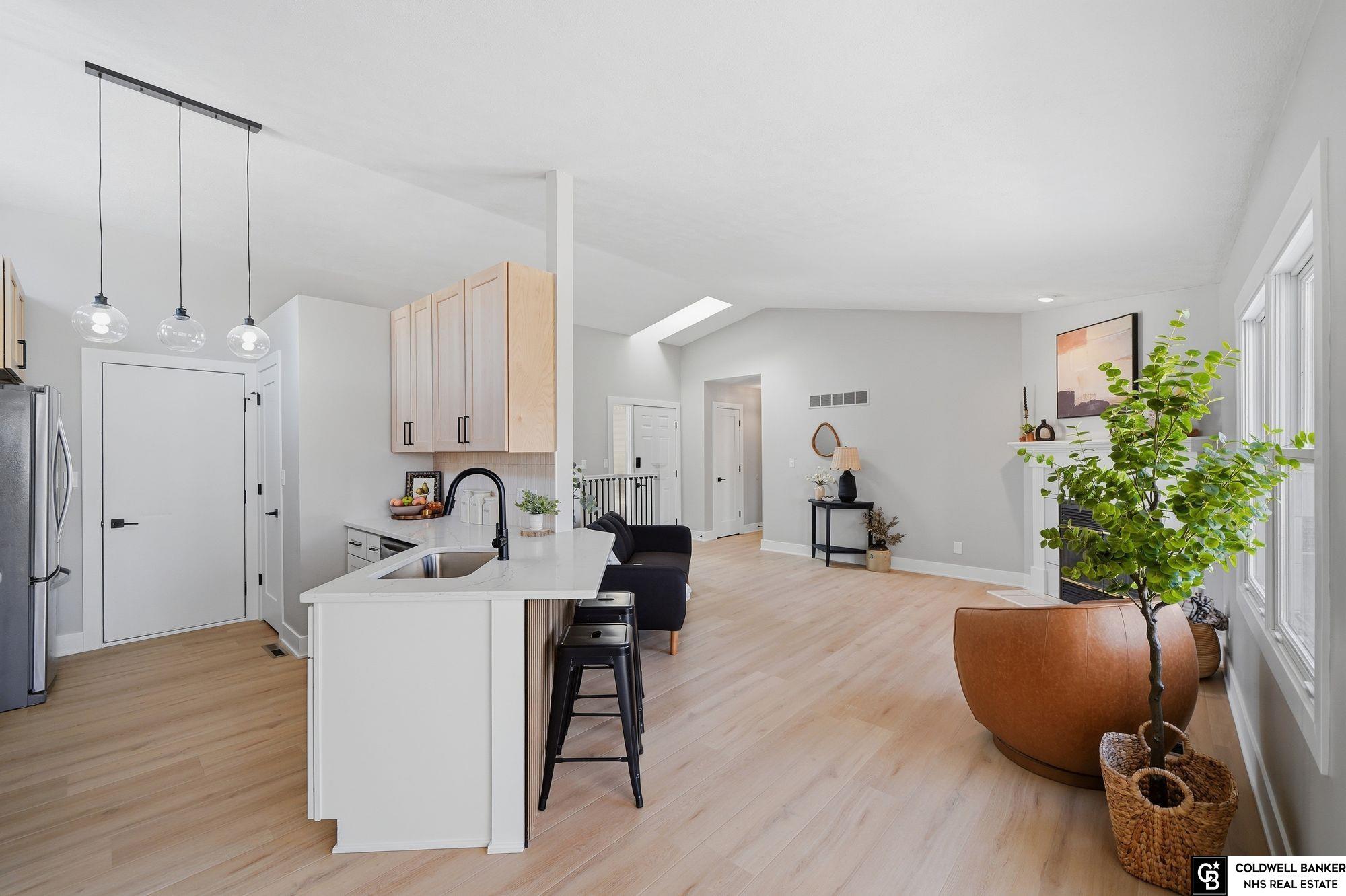 Welcome home to this stunning and cozy ranch in Thunderbird Estates offering nearly 3,000 sq ft of beautifully finished space! This 4 bed, 3 bath home has been transformed top to bottom with high-end finishes throughout. The main level features durable 22 mil blonde oak LVP flooring, new plush carpet in bedrooms, all new light fixtures, switches, outlets, doors, brand new dining room windows and so much more! The kitchen shines with new slow-close shaker cabinets, quartz countertops, limestone backsplash, stainless steel appliances, and pantry. The spacious primary suite offers a walk-in closet and spa-like en-suite with custom shower, freestanding tub, and 60” double vanity. Two additional bedrooms and updated full bath complete the main level. The finished basement includes a large rec room with recessed lighting, dry bar, updated laundry room, huge 4th bedroom with walk-in closet, and fully renovated 3rd bath. 30x20 deck and fully fenced yard with dual gates and shed—don't miss out!