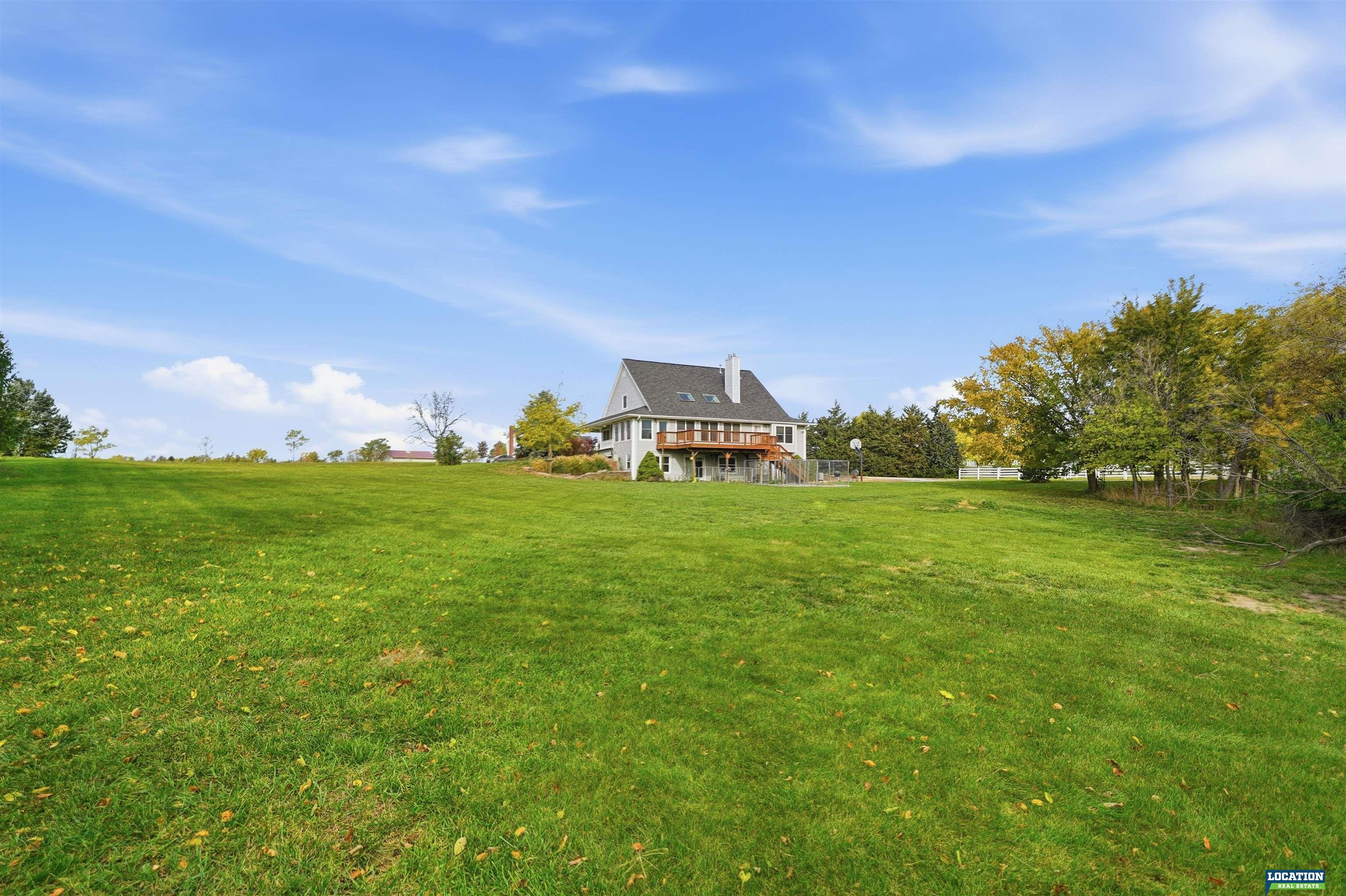 Charming 1 1/2 story home on 3 acres with horse barn and no HOA! Enjoy peaceful country living less than a mile from paved roads and just minutes from town. Step into a welcoming foyer with an open staircase leading to the upper level. The spacious living room features vaulted ceilings, a cozy fireplace, and large windows overlooking the private, tree-lined backyard. Relax on the wraparound porch or huge deck. Main floor offers a large primary suite, first-floor laundry, formal dining room, and sunroom. Upstairs includes two bedrooms and a full bath. The walkout basement adds a family room with wet bar, game room, 4th bedroom, and storage. New windows, new furnace, Class 4 shingles, and TONS of other updates. Call for a showing today!