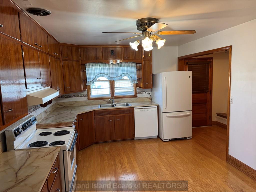 Lovingly maintained by the same owner for 57 years, this home reflects true pride of ownership! Featuring 3 spacious bedrooms and 1 full bath on the main level, plus a 3/4 bath in the basement. The large living room offers plenty of space to gather, while the kitchen/dining combo provides abundant cabinetry. Hardwood floors are believed to be under the main floor carpet. The basement includes a generous family room, laundry area, extra storage, and an oversized utility room. Enjoy the convenience of a one-car attached garage, along with a storage shed and chain-link fenced backyard. Situated on a large corner lot with a beautiful green space separating the street, offering added privacy and curb appeal. Available for immediate showings.