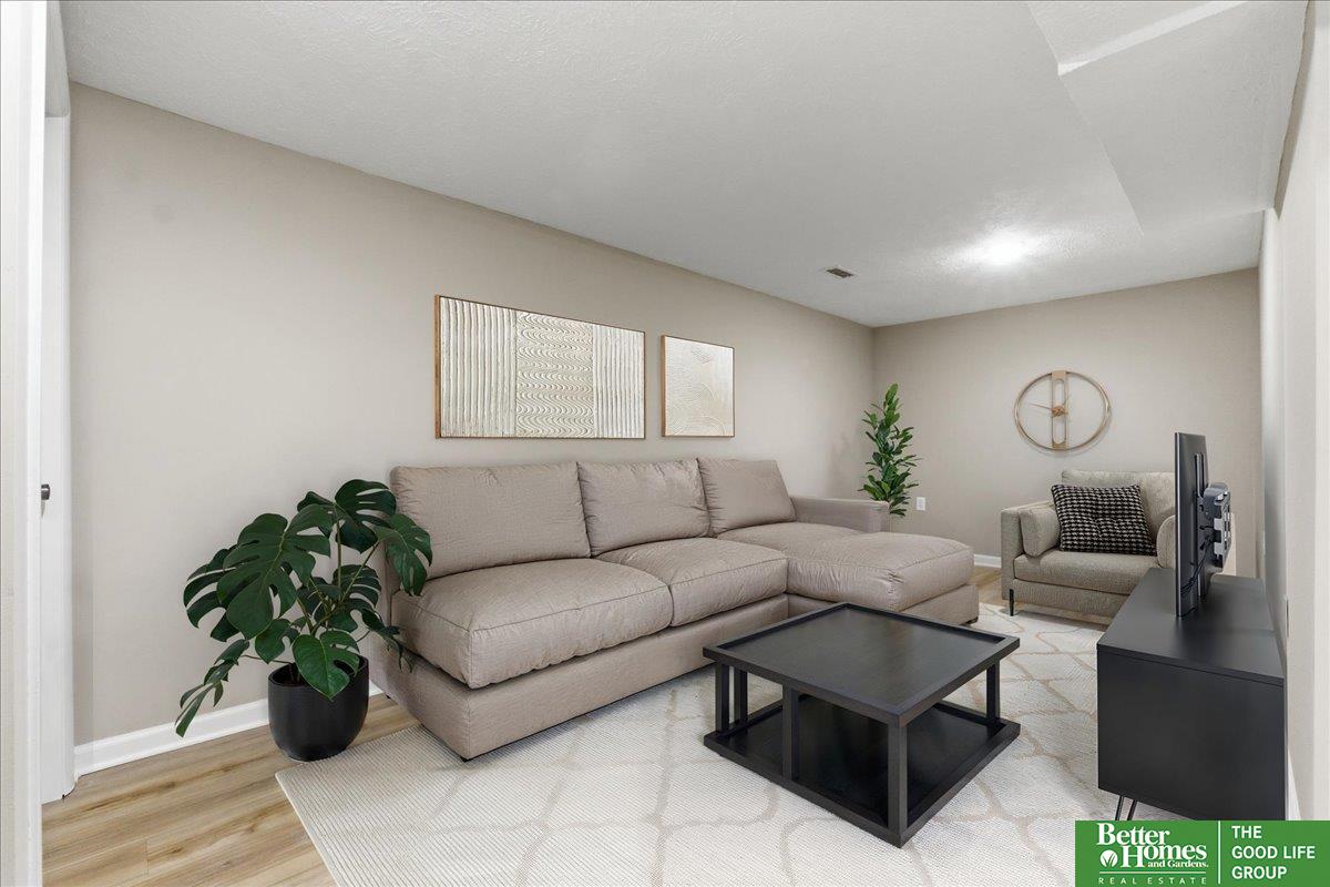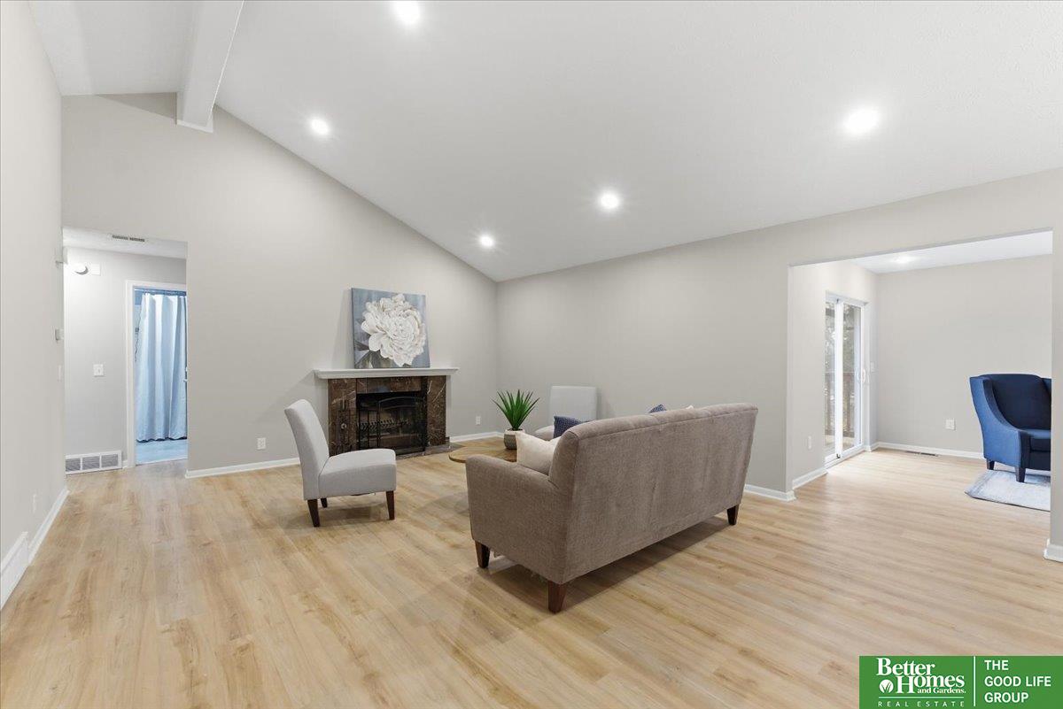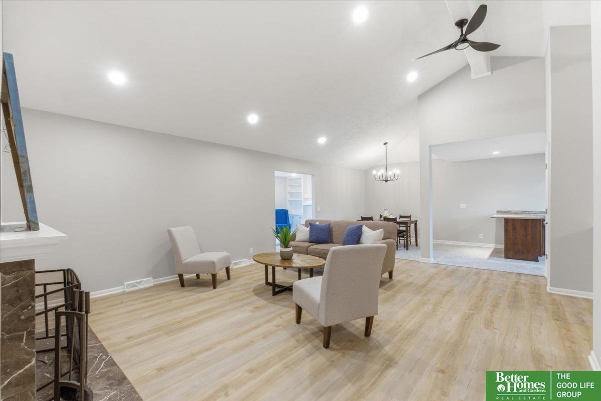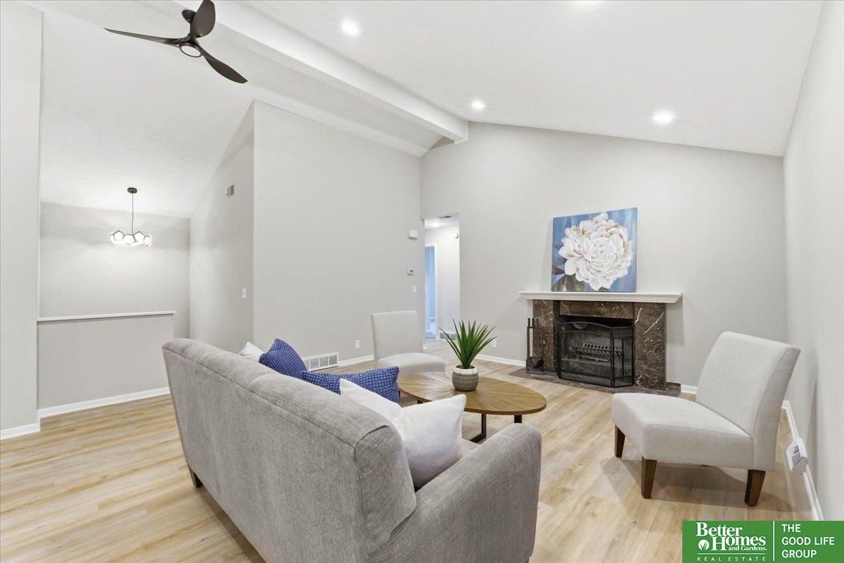 SO many updates in Millard! New driveway, roof, flooring throughout, interior paint throughout home including garage, newly built garden beds in front of home, custom built wooden handrails, HVAC new in 2020. Gorgeous open concept floorpan with wood burning fireplace with additional sunroom/sitting room with adorable built-in shelving. Gorgeous kitchen with plenty of storage, natural light and breakfast bar. Three spacious bedrooms on main floor, fourth in basement. Primary en-suite bathroom and walk-in closet. LVP throughout living spaces, stairs and laundry room for easy cleaning. New carpet and padding in each bedroom. Fully fenced in yard with freshly stained deck perfect for warmer days ahead!