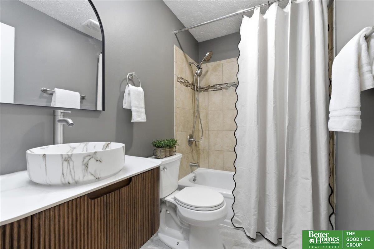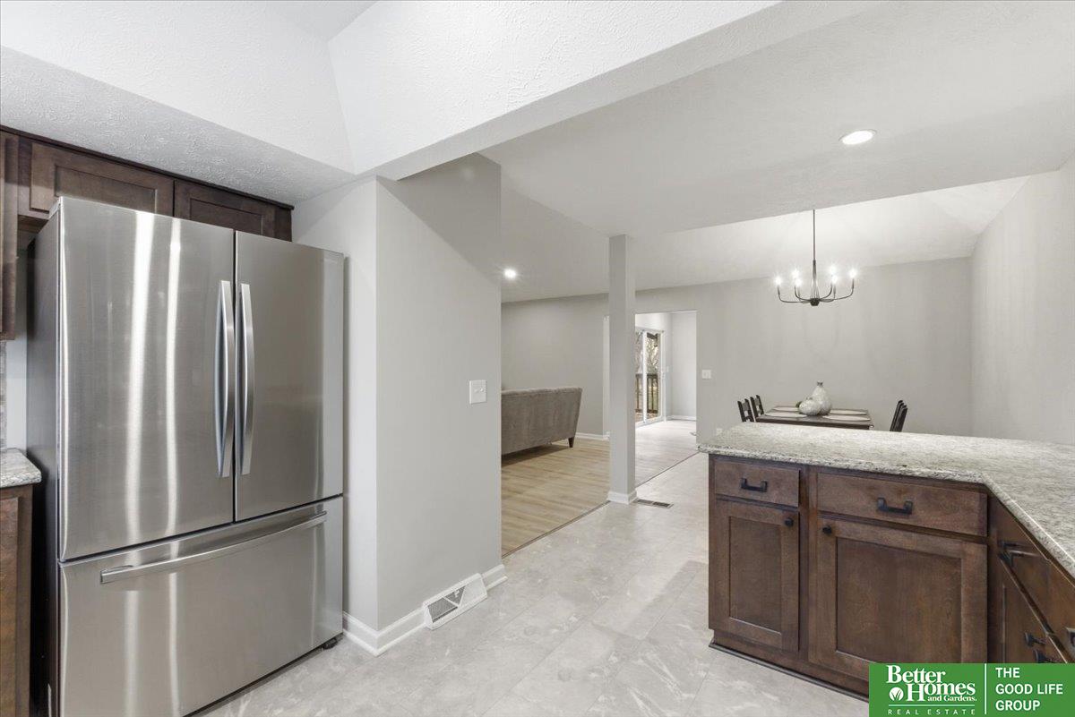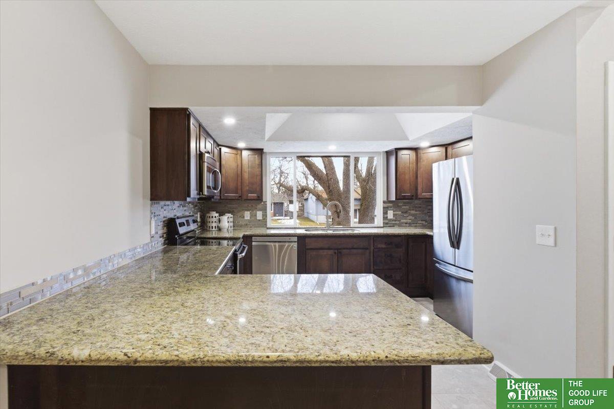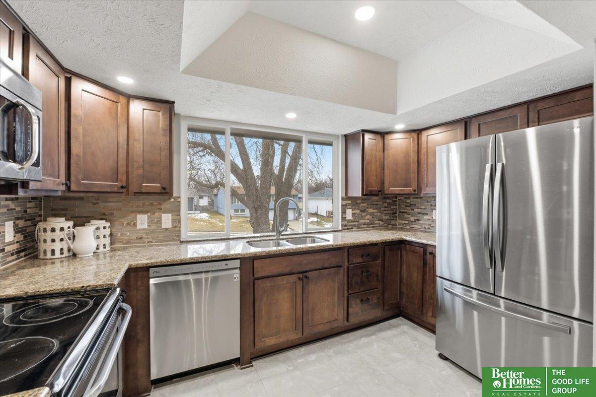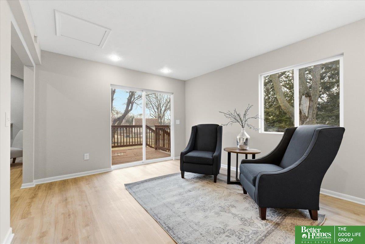 SO many updates in Millard! New driveway, roof, flooring throughout, interior paint throughout home including garage, newly built garden beds in front of home, custom built wooden handrails, HVAC new in 2020. Gorgeous open concept floorpan with wood burning fireplace with additional sunroom/sitting room with adorable built-in shelving. Gorgeous kitchen with plenty of storage, natural light and breakfast bar. Three spacious bedrooms on main floor, fourth in basement. Primary en-suite bathroom and walk-in closet. LVP throughout living spaces, stairs and laundry room for easy cleaning. New carpet and padding in each bedroom. Fully fenced in yard with freshly stained deck perfect for warmer days ahead!