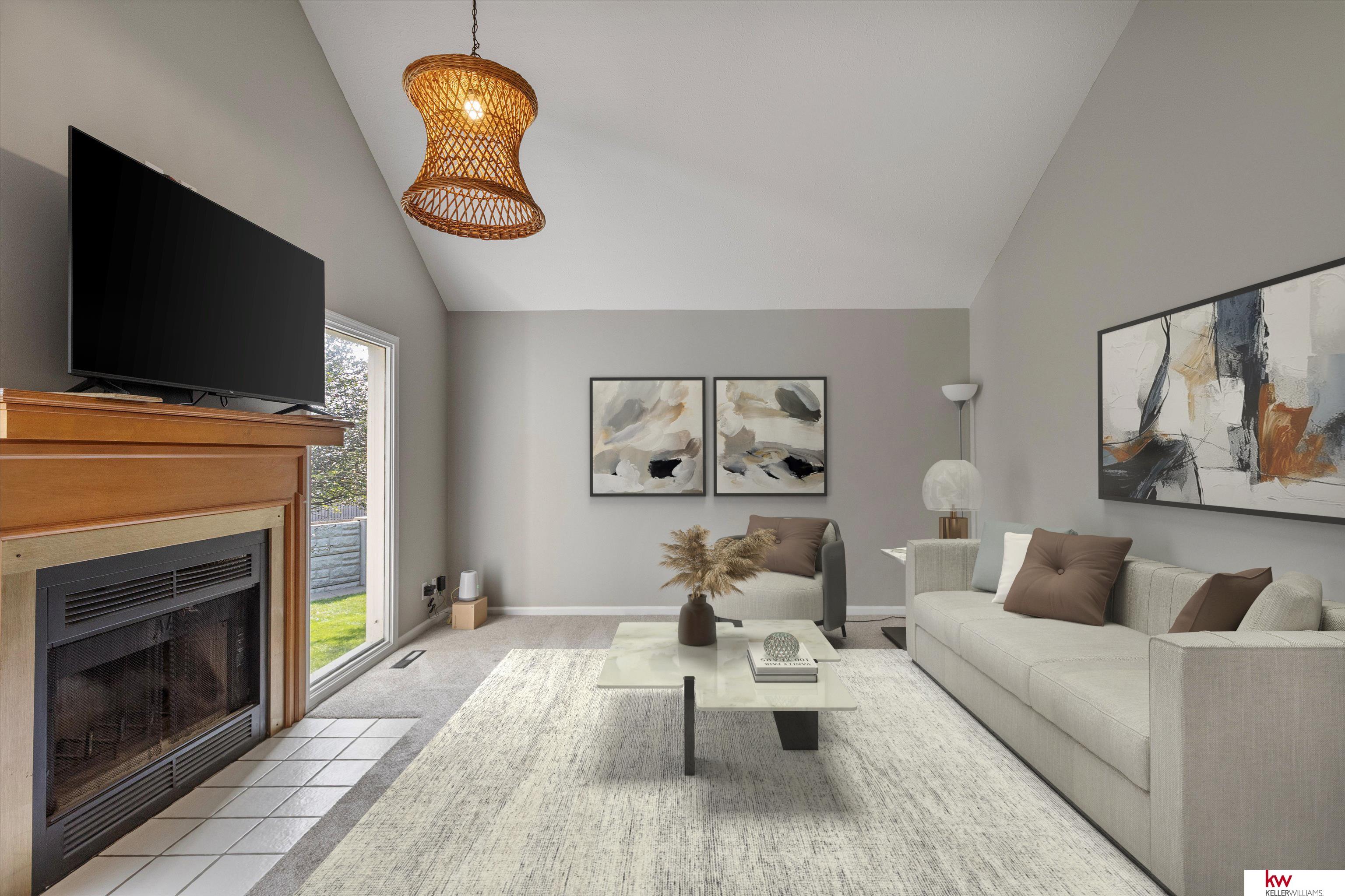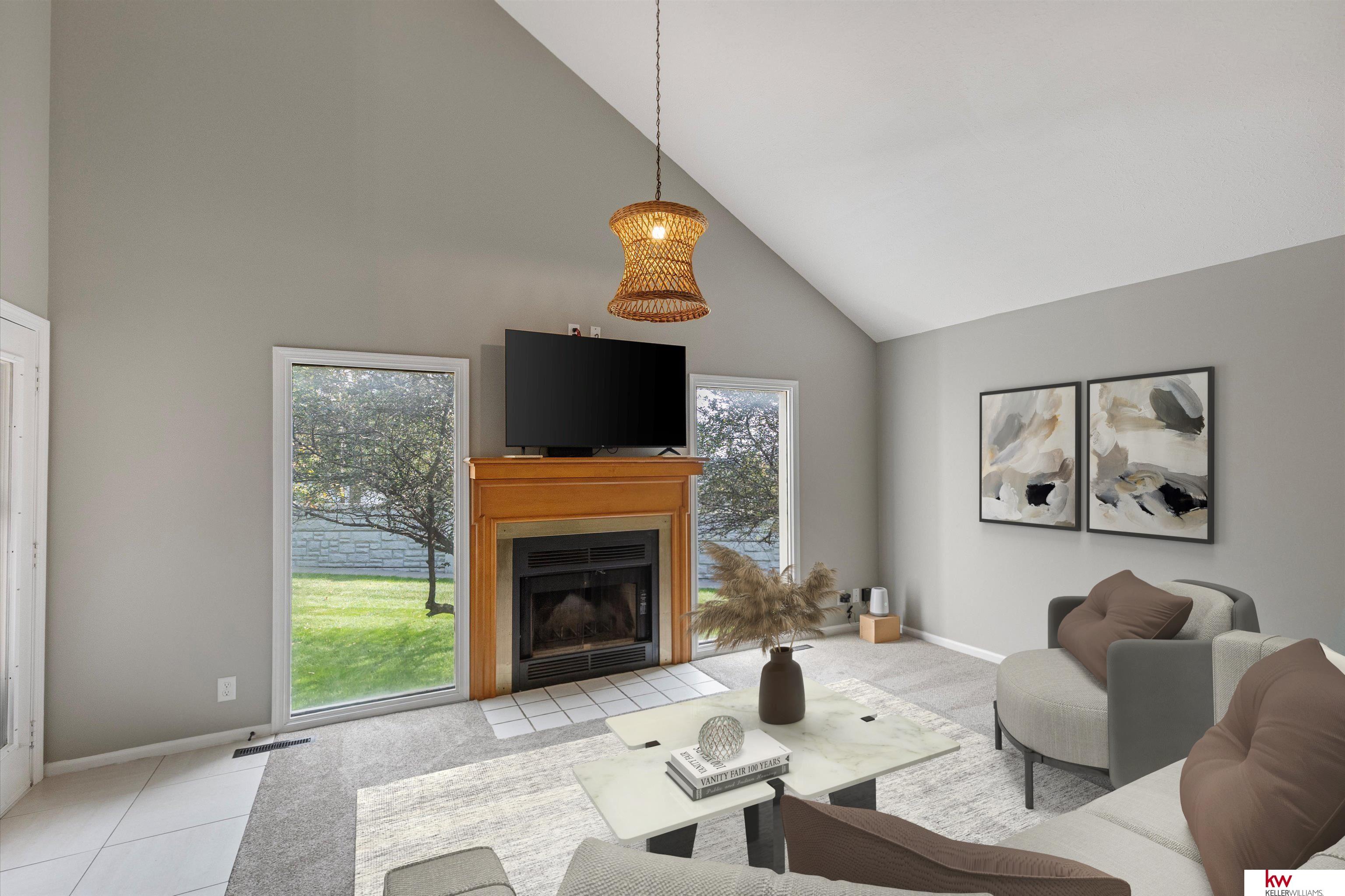 Beautiful Millard Townhome! This updated 3-bedroom, 3-bath, 2-car garage townhome offers an open-concept layout and low-maintenance living. Step inside to find updates throughout—including remodeled bathrooms and kitchen, fresh paint, new carpet, and stylish lighting. The bright kitchen opens to the spacious living room featuring vaulted ceilings and a cozy fireplace. Retreat to the large primary suite with a private bath. The fully finished basement adds even more living space with a true bedroom, en-suite bath, laundry, and a versatile rec area. Move-in ready and designed for comfort and convenience! HOA of just $100/month covers lawn care and snow removal over 3”.