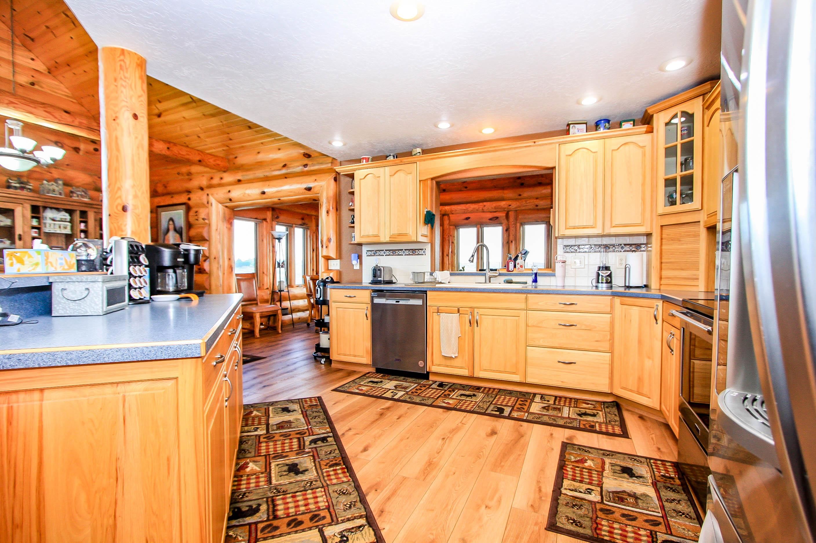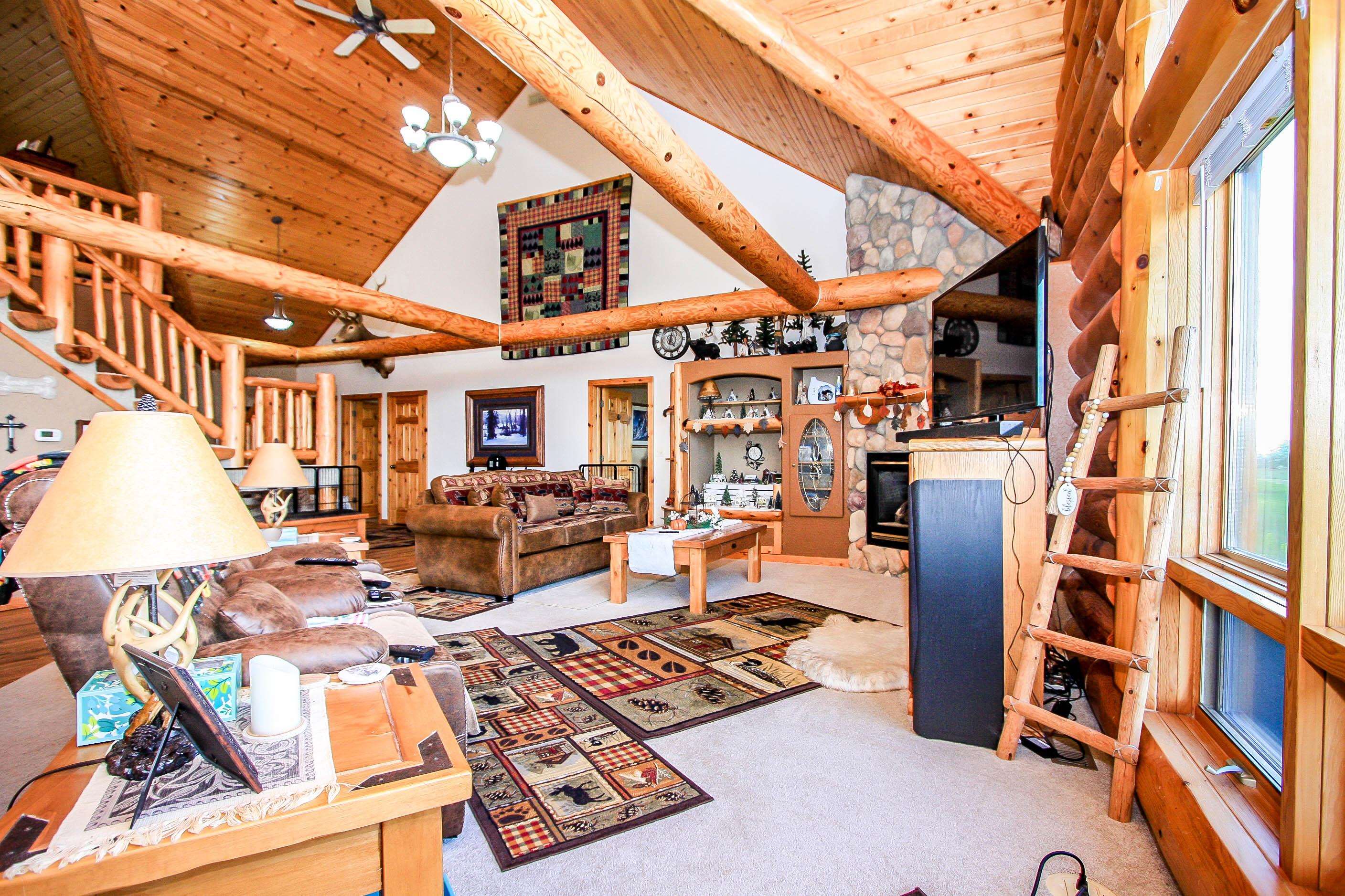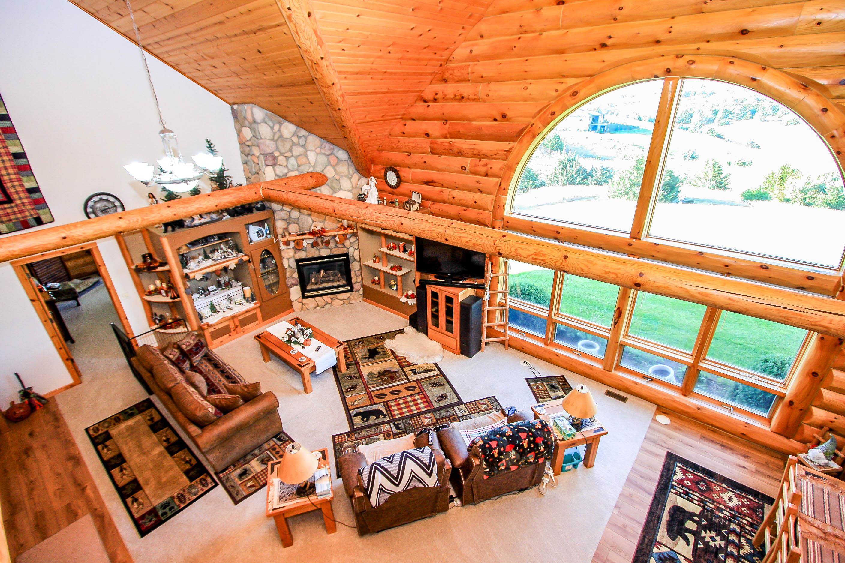 WOW what an opportunity to own a full log home. Awesome views. Exterior redone with new sealant and caulking. Inside features Luxury vinyl planking in the living area, kitchen and sunroom, tile in baths, carpet in the loft and bedrooms. Loft could be used as a bedroom. Large shop area in the garage. washer/dryer negotiable. Beautiful cathedral ceilings, gas log fireplace. Detached 30x40 shop is insulated, separate electrical box, RV plug, tall garage door.