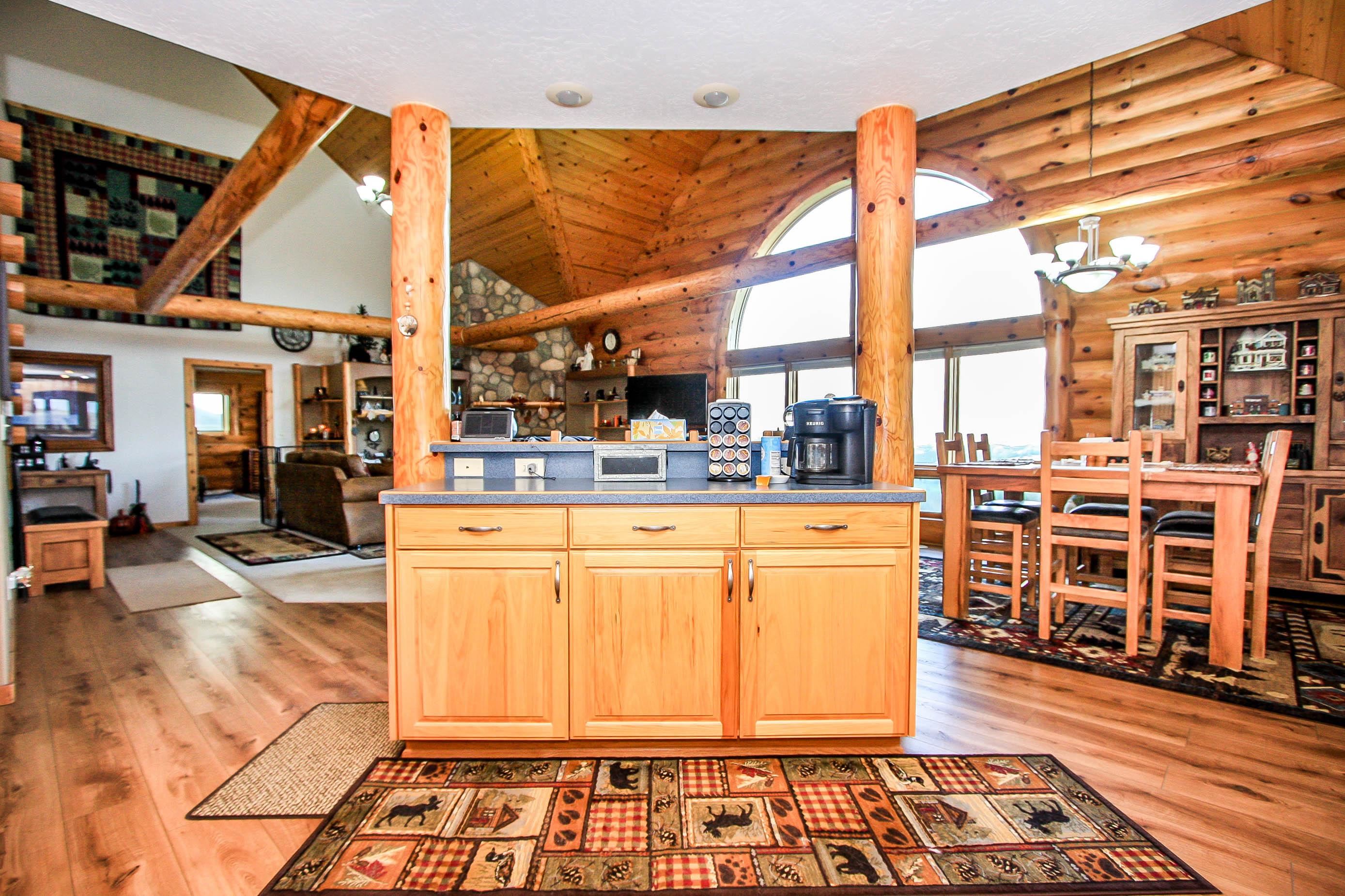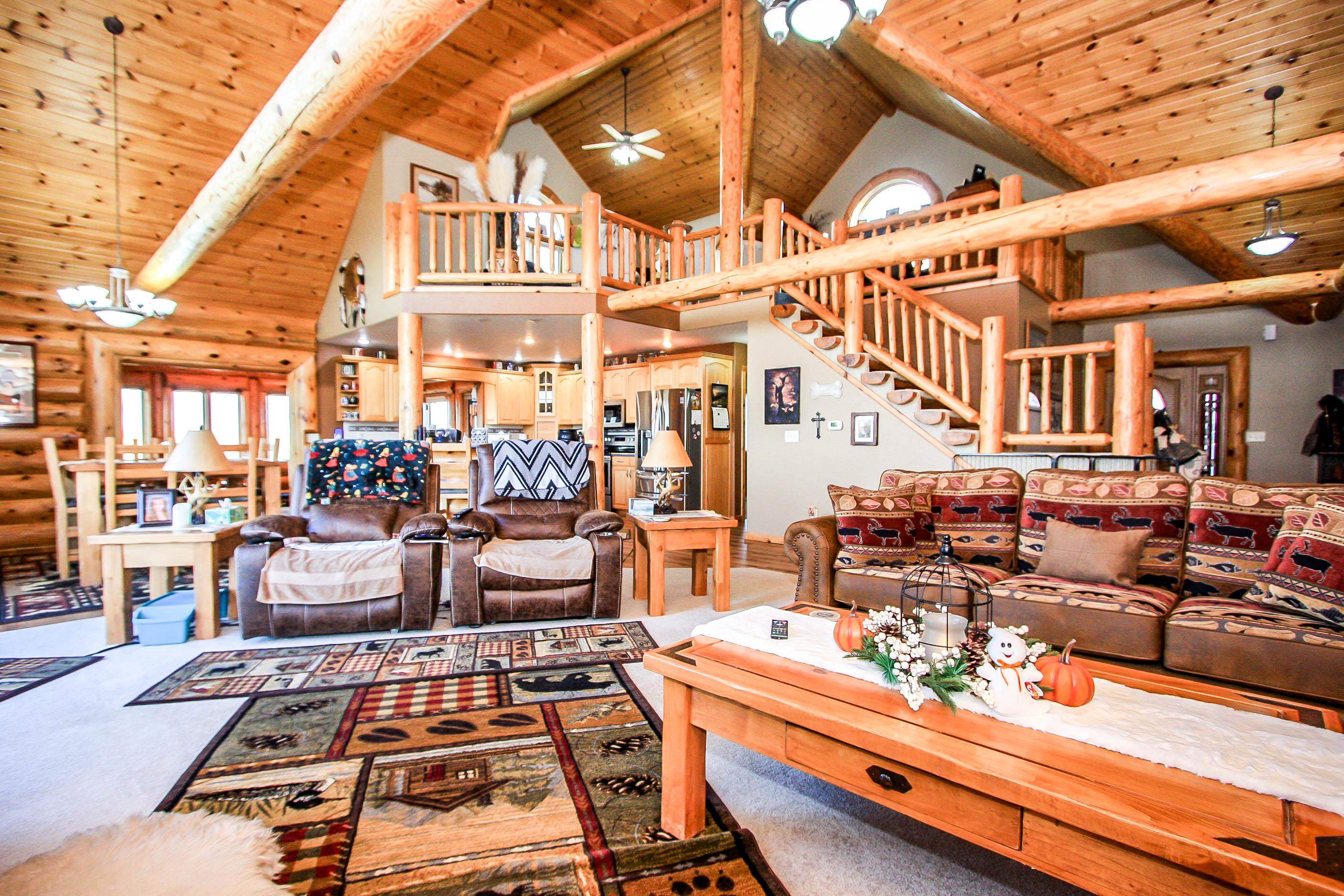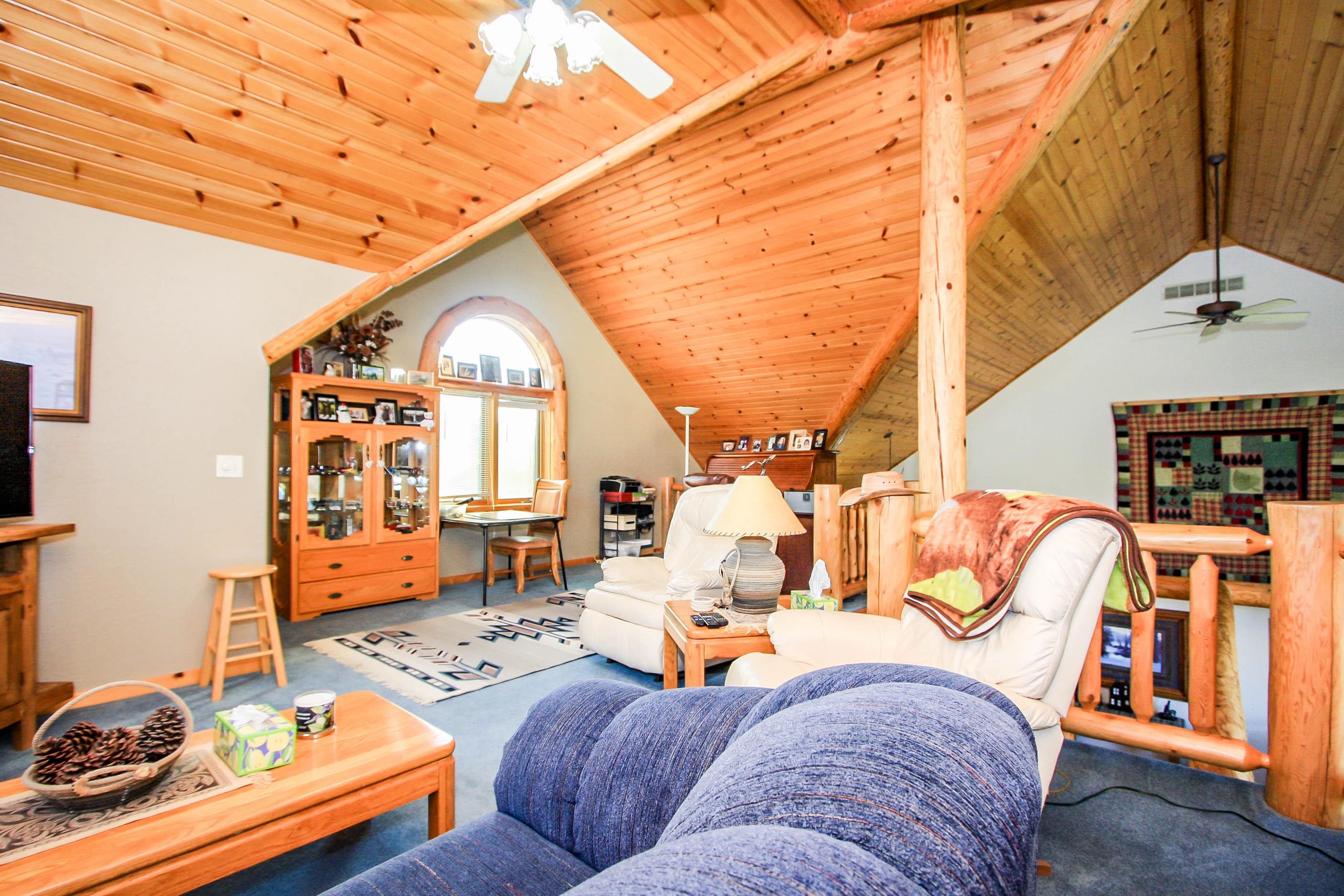WOW what an opportunity to own a full log home. Awesome views. Exterior redone with new sealant and caulking. Inside features Luxury vinyl planking in the living area, kitchen and sunroom, tile in baths, carpet in the loft and bedrooms. Loft could be used as a bedroom. Large shop area in the garage. washer/dryer negotiable. Beautiful cathedral ceilings, gas log fireplace. Detached 30x40 shop is insulated, separate electrical box, RV plug, tall garage door.