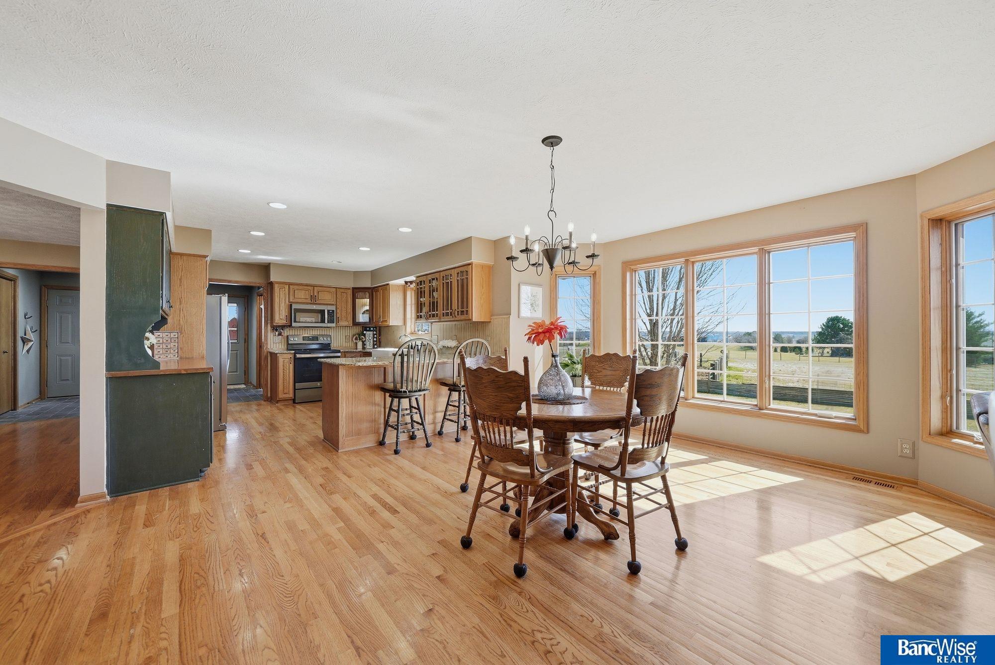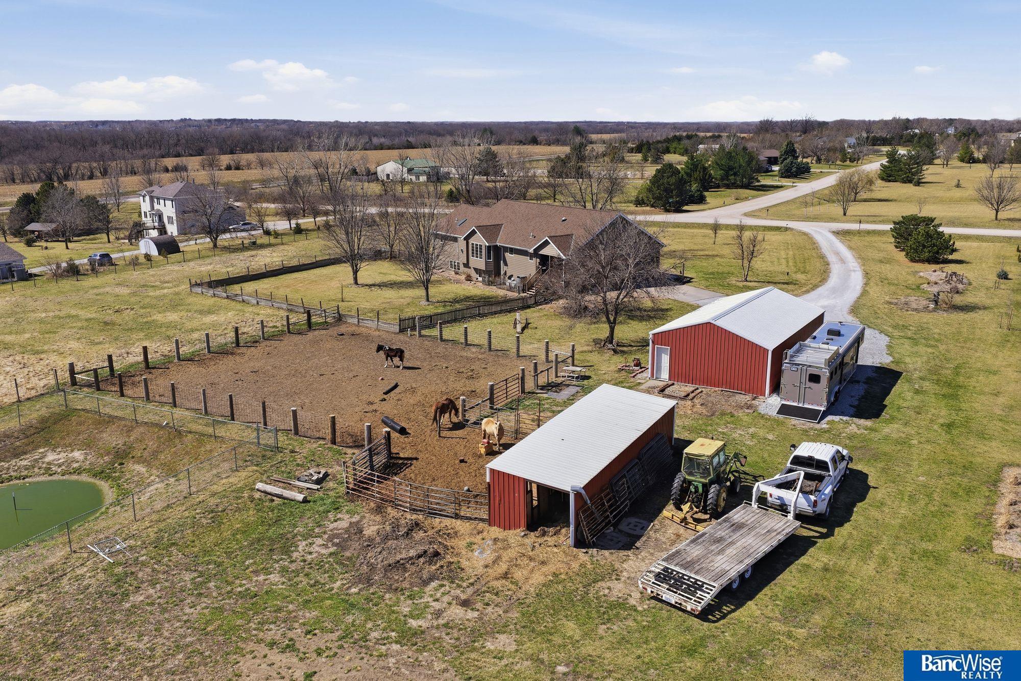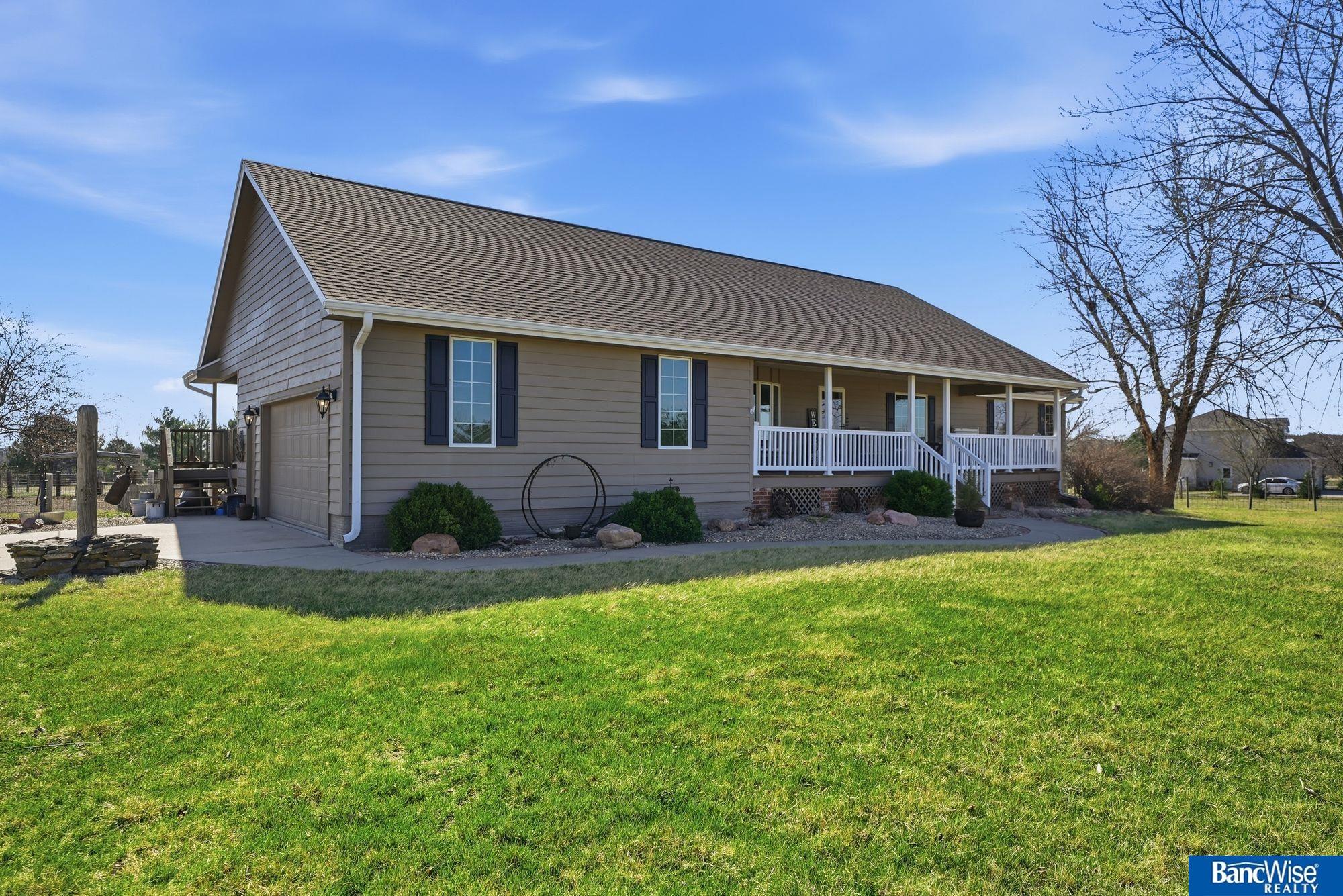 **QUALITY KINNING-SYDOW CUSTOM BUILT 4BR 4BA RANCH**Close-In Acreage is ready for you to bring your HORSES! New Cement Board Siding, Roof & Pella Windows Installed in 2019. Country Front Porch welcomes you into an Open Concept Spacious Main Floor with Formal & Informal Dining Areas with Bay Windows & Living Room w/Brick Fireplace. Kitchen features Granite Counters, Farm Sink (2010) & Built-In Hutch. Refrigerator is brand new! Notice the beautiful wood floors (2010). Hall Bath w/Skylight couples with 2nd Main Floor Bedroom. Primary Suite offers Walk-In Closet & En Suite 3/4 Bath w/Dual Sinks. Main Floor Laundry, 1/2 Bath & Mudroom w/Skylight complete the Main Floor. Daylight Basement is finished with generous Family Room, 2 more Bedrooms & 3/4 Bath. Ample Storage. 40x24 Astro Building has a Concrete Floor, Electric & a new roof in 2020. Horse Lean-to, Corrals & Fully Fenced Grazing Pasture. See this Beautiful & Functional Close-In Acreage right away! Showings start tomorrow TUES 3/31.