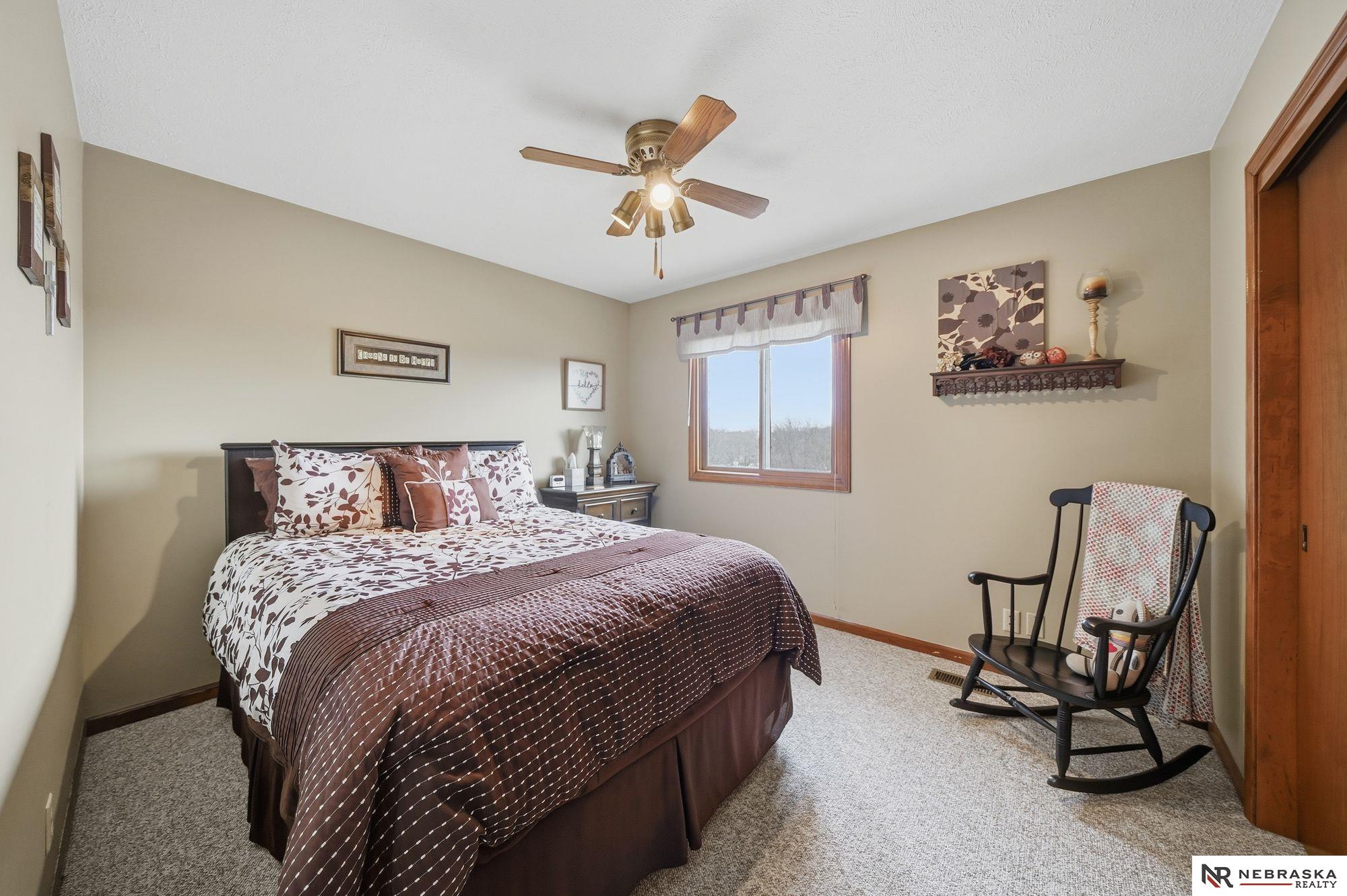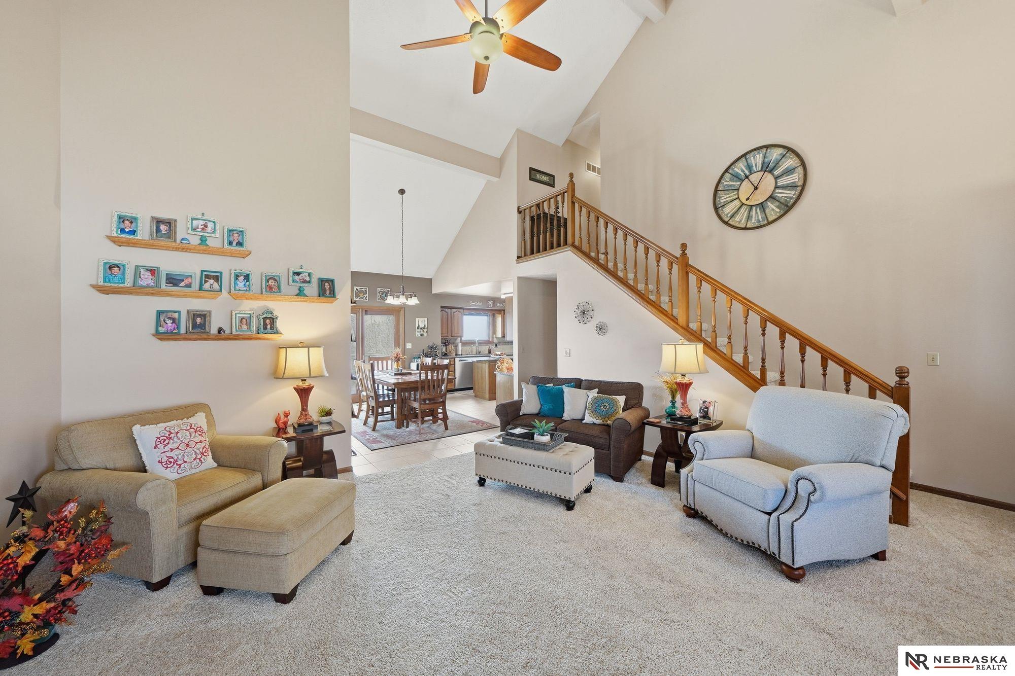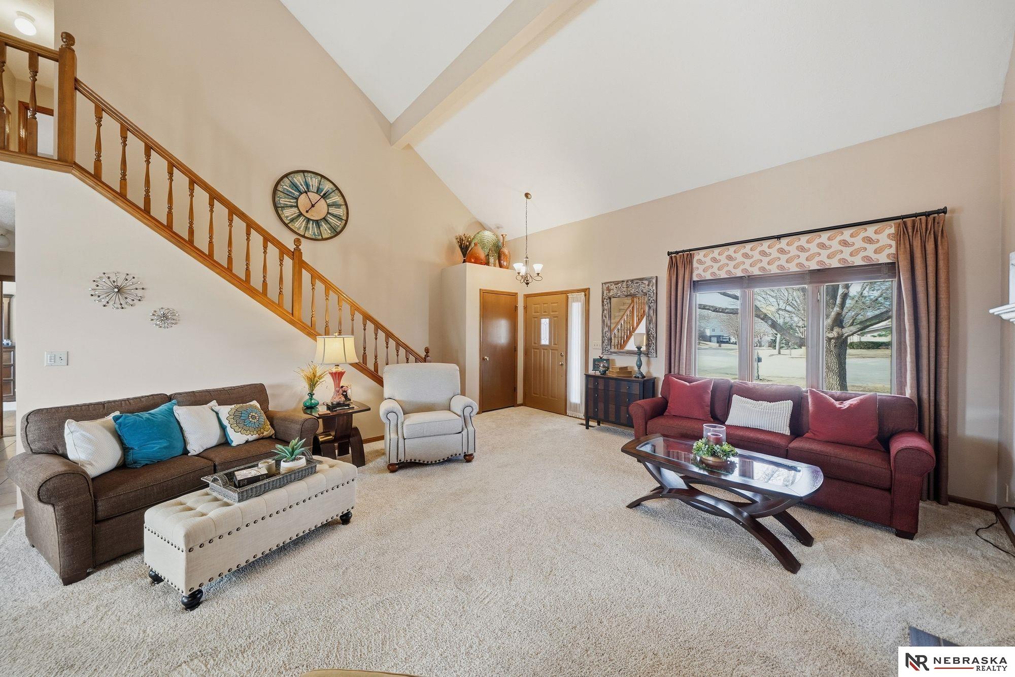 A must see meticulously cared for 1.5-story home in desirable southeast Lincoln's Colonial Hills, tucked away on a quiet cul-de-sac and set on nearly a 1/3-acre lot. Perched up high with beautiful neighborhood views, this 3-bedroom, 3-bathroom home offers a fantastic layout with the primary bedroom on the main level. Vaulted ceilings create an open, airy feel in the living room, highlighted by a cozy fireplace. The kitchen features granite countertops and stainless-steel appliances, ideal for everyday living and entertaining. Upstairs offers two spacious bedrooms and a full bath for added privacy. The walkout basement includes a large living space, a 3/4 bath, and opens to a patio. Enjoy the new composite deck, perfect for relaxing or hosting guests. A 2-stall garage and new AC (2025) complete this exceptional home.
