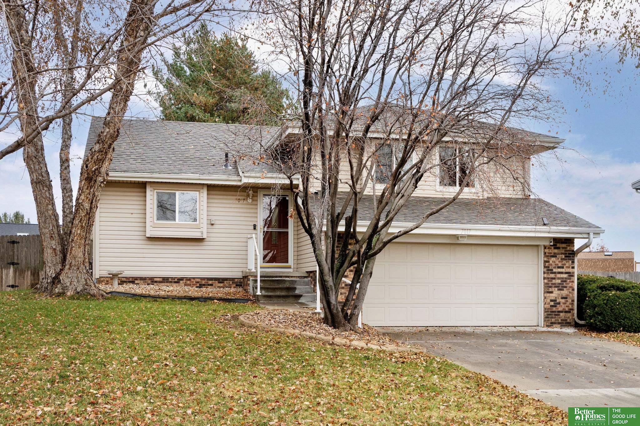 This welcoming 3-bedroom, 2.5-bath home in La Vista's established neighborhood offers the perfect blend of comfortable living spaces and practical functionality. Step inside to soaring vaulted ceilings that flood the main level with natural light, creating an open, airy feel that makes every day brighter. Upstairs, the primary suite becomes your personal retreat with vaulted ceilings and an ensuite bathroom featuring an updated tiled walk-in shower. The lower level family room - your cozy haven for movie nights, game day gatherings, or quiet evenings with a book. The design of this home creates natural separation between spaces, so everyone can do their own thing comfortably. Step outside to your private backyard retreat - a generous fenced yard with mature trees, concrete patio for grilling and entertaining, plus a storage shed with actual room for all your gear or extra work area. Brand new roof! AMA.