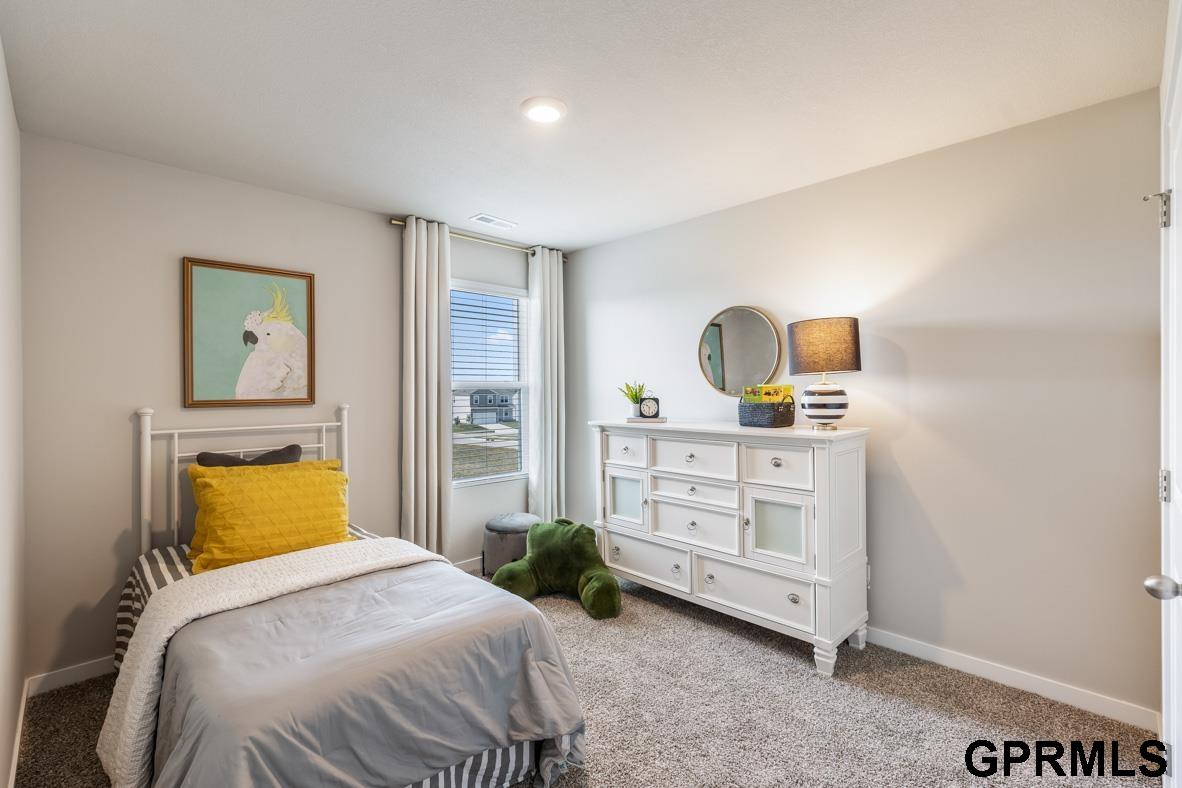 Welcome to the Bellhaven in Sunset Meadows - a 5 bedroom, 3.5 bath home offering 2,556 sq. ft. of finished living space, including a spacious finished basement. Step inside to a versatile front flex room—ideal for a home office, playroom, or formal dining. A guest half bath and staircase lead to the open-concept living area, featuring an electric fireplace, large windows, and a bright, spacious feel. The kitchen showcases white cabinetry, stainless steel appliances, a walk-in pantry, and a large island perfect for casual dining. Upstairs, a centrally located laundry room is surrounded by three secondary bedrooms, a full bath, and a linen closet. The expansive primary suite offers two walk-in closets, a double vanity, walk-in shower, and private water closet. The finished basement includes a rec room, fifth bedroom, and a full bath. This home offers a walkout basement. Visit today for a personal tour! Ask about builder incentives with preferred lender. Photos similar to.