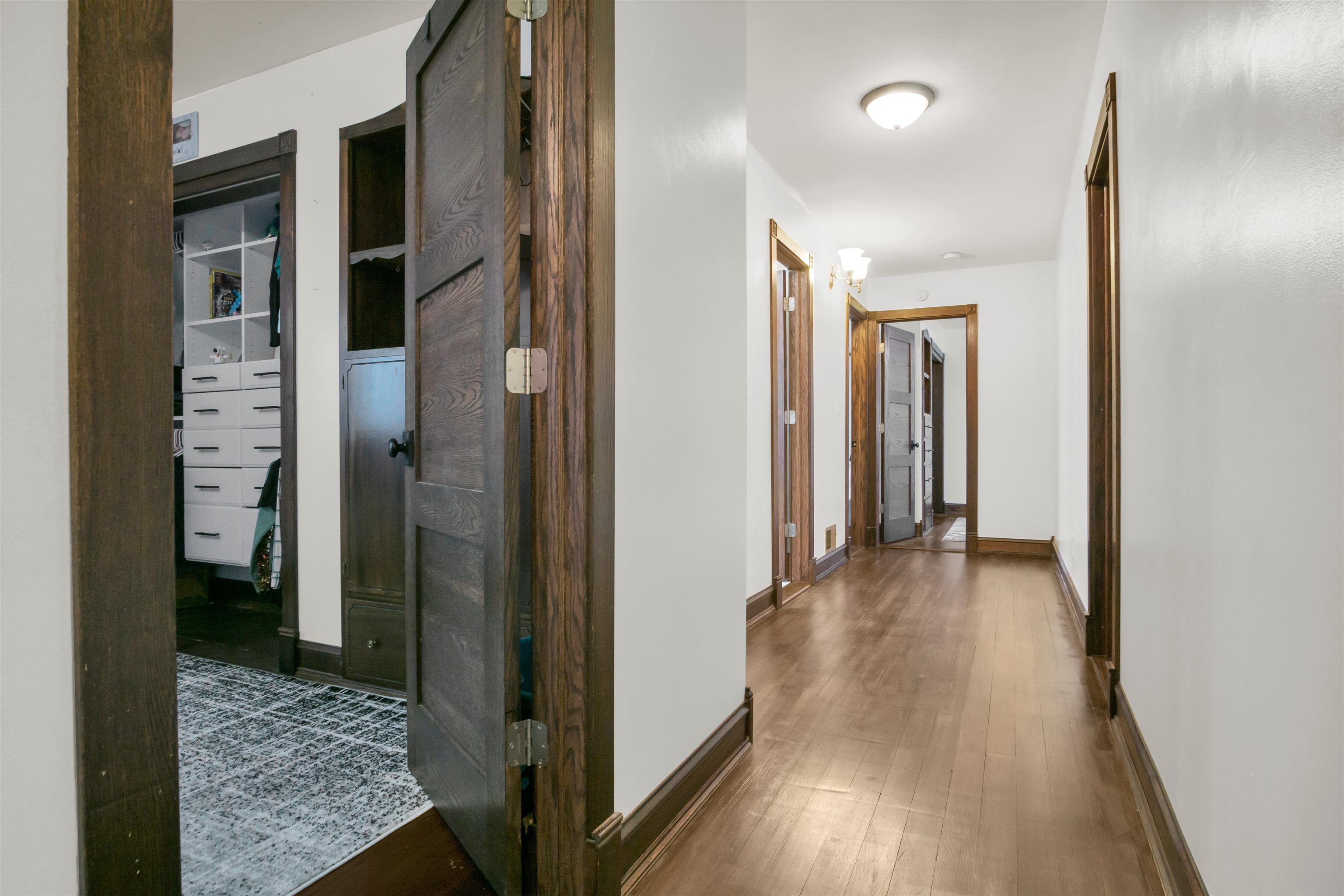 This turn-of-the-century two-story home has been painstakingly remodeled with modern updates that combine the character and charm of the home’s original era with today’s modern choices. The home was moved onto a new block basement foundation in the 1970’s. At that time the sellers believe the home was extensively renovated to include new drywall throughout, electrical updates, and new wiring. Since purchasing the home the sellers did additional electrical upgrades and plumbing improvements, they replaced the siding with Diamond Kote LP SmartSiding in 2021, the roof above the porch was replaced by Roofworx about 1.5 years ago, new gutters with leaf guards were installed, and a new privacy fence with an 8’ gate and a 4’ gate was installed in 2024. The sprinkler system has a B-hyve Contoller and the system was reworked and updated when the fence was installed. The north end of the yard has a hydrant for the garden to make for easier watering and the backyard was recently reseeded! The windows have also been updated in recent years. The interior of this home is absolutely amazing. Most of the hardwood flooring is original, it has been refinished, and it was stained with a custom color using red mahogany and honey tones. Most of the trim work and casing in the home was redone to match the era of this home and was stained to complement the flooring. The interior doors are solid wood. Many were either original to the home or thoughtfully sourced from antique stores. The swinging door just inside the entryway came from the Buffalo County courthouse, Room 303! The kitchen was completely renovated in 2019 to include quartz countertops, tile flooring, and LG stainless steel appliances. The cabinetry is inset which is a feature of the early 1900’s period cabinetry, has antique replicated hardware, and has the soft close feature. The butler’s pantry has a swinging door, quartz countertops, and is so unique! The tastefully designed office has built-in desks and bookshelves and the woodwork on the staircase has been meticulously refinished and stained. The main upstairs bathroom was renovated in 2025 and includes a single slipper claw foot tub, an onyx shower base, beautiful tile work, a double sink vanity with quartz countertops, an exhaust fan with a heater and an LED light, and heated floors with a programmable timer system. The primary suite bathroom has an onyx shower, newer vanity, and tile flooring. The primary suite has a walk-in closet with custom shelving. The other bedrooms feature built-ins, custom styled closets, and/or lofts. The basement includes a convenient kitchenette. This exceptional home blends historic character with thoughtful updates and is truly designed to be your dream home!