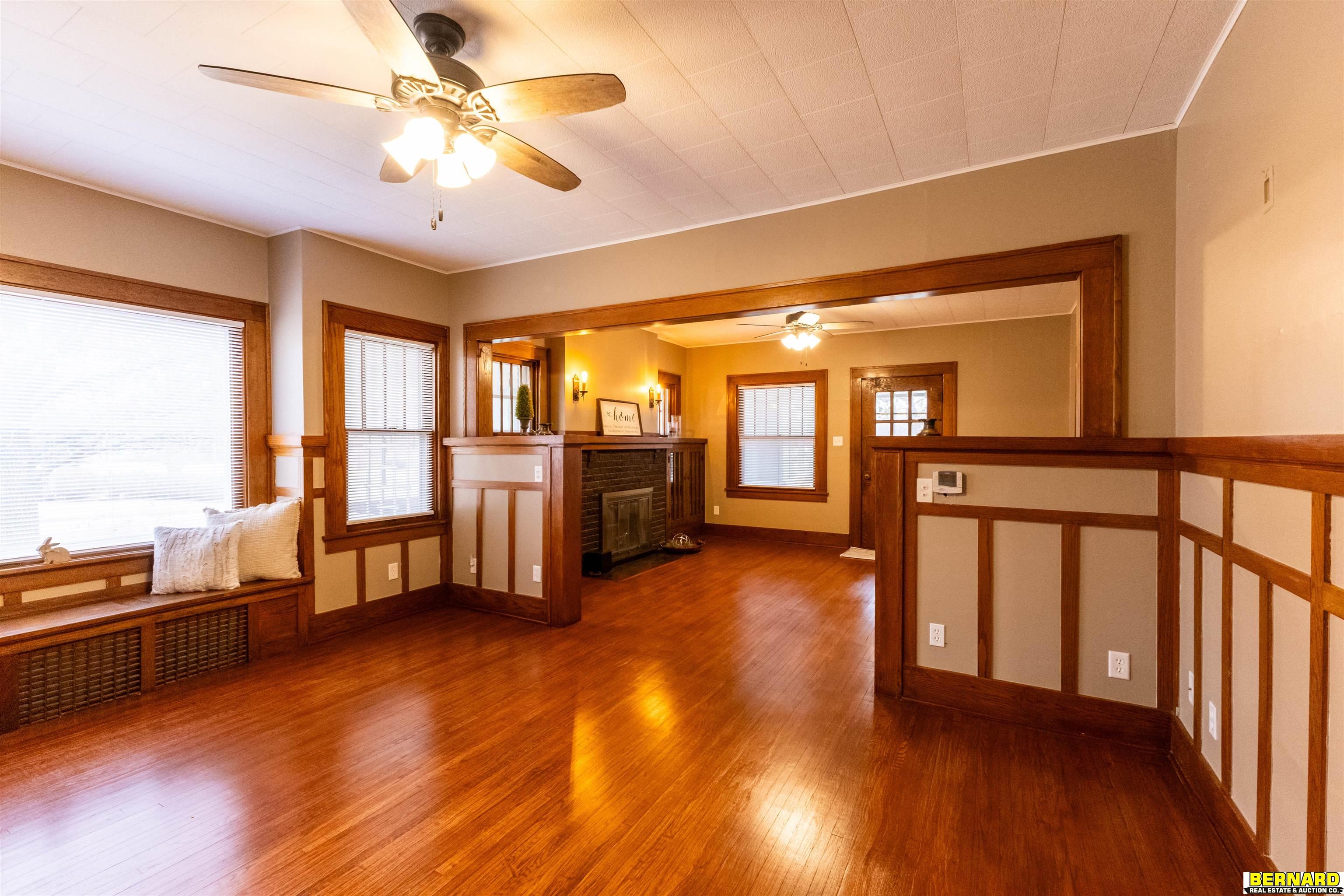 Welcome to this 1919 charming craftsman home! So many possibilities to continue the updates that have been recently completed. Gorgeous wood floors on main level have been beautifully refinished and sealed to protect the beauty for years to come! ALL the stunning original woodwork in this home has been well preserved and never painted. Main floor full bath has been thoughtfully updated with modern updates, while preserving the original tile floor. Kitchen was refreshed with paint, new counters, new s/s appliances and fun flooring. Cute breakfast nook off kitchen is perfect for your morning coffee or meals. Laundry has been conveniently moved to the main floor in the mud room off of back door. Main floor offers three bedrooms, one with attached sunroom that could be a beautiful office or reading room or nursery/toy room. Lower level is unfinished and offers room for storage or a workshop. The walk-up attic could be finished to add even more living space. Detached two car garage. AMA