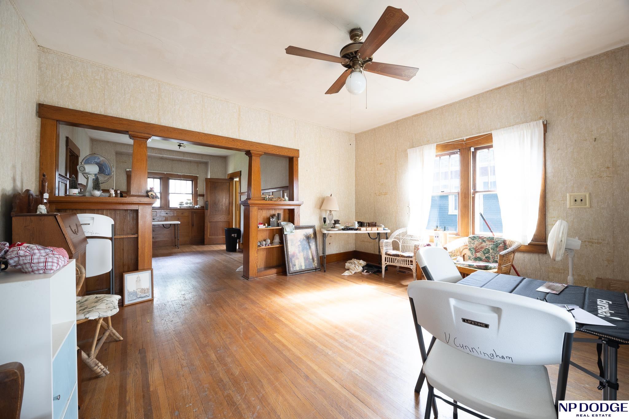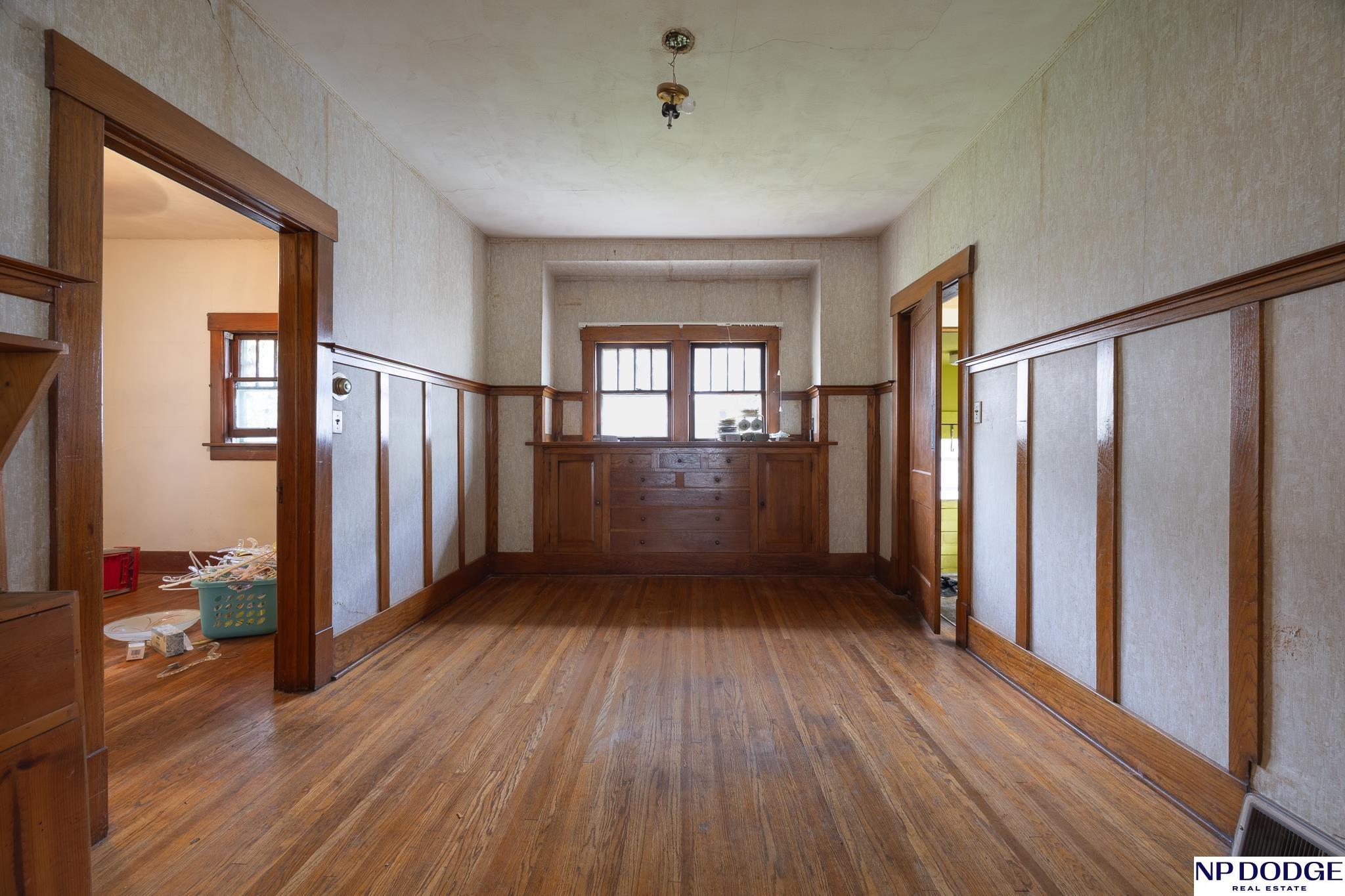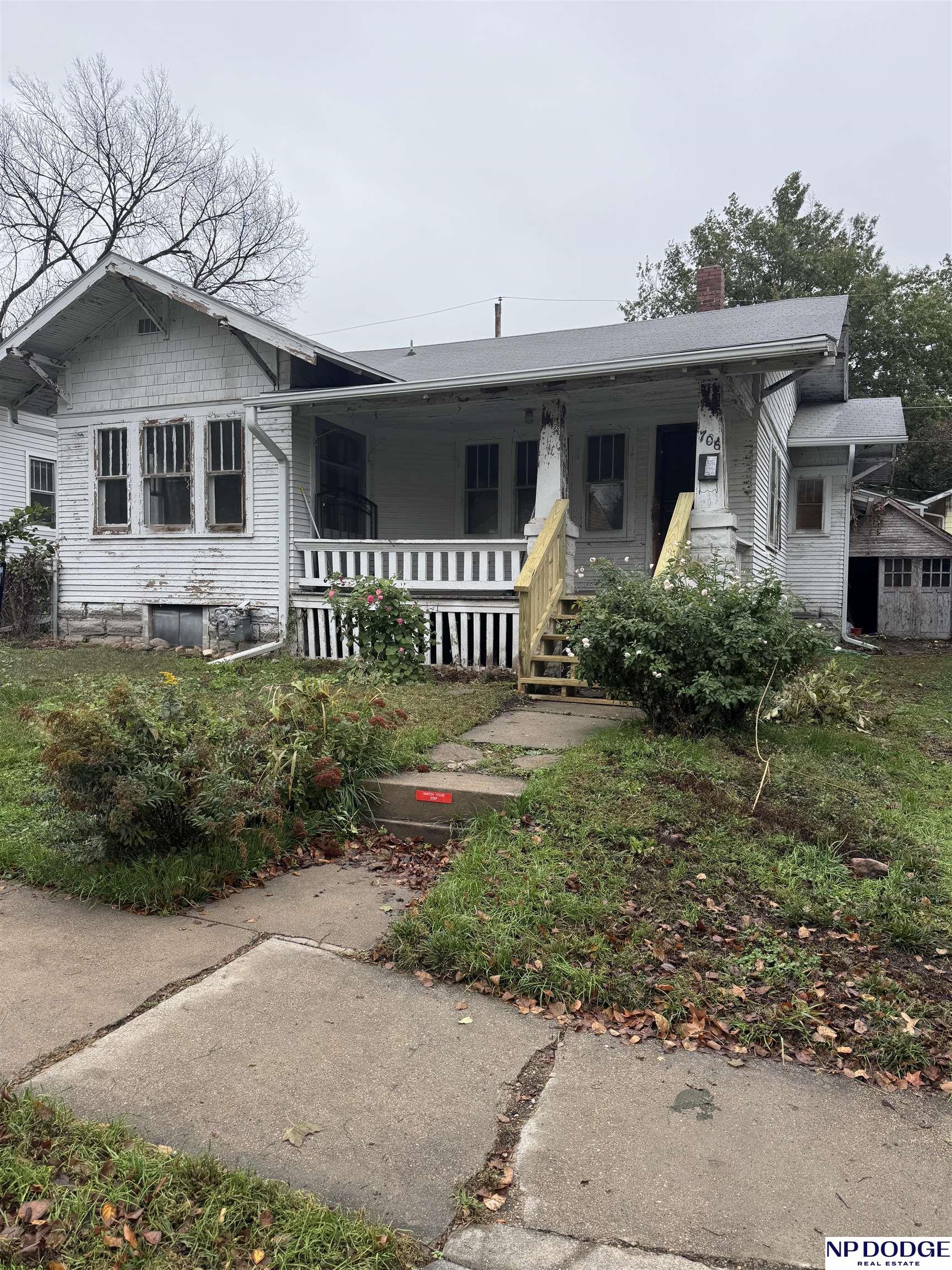 Looking for love! This little 2-bedroom, one bath cutie has so much character. Just imagine sitting on that large covered front porch watching your neighbors walking by, while you sit with your favorite book. Walk through the front door and you take in all the beautiful woodwork. This home may look small on the outside, but it lives pretty large; with a nice sized living room, formal dining room with a built-in hutch. It is fabulous. There’s a sun porch with French doors leading out to the front porch. The kitchen is ready for updating, with plenty of possibilities. You have a full basement, updated electric, a back door to the garage and back yard. The garage may need replaced, but there’s a spot for one, with an off-street drive! Just close your eyes and imagine. Give me a call & come check it out!