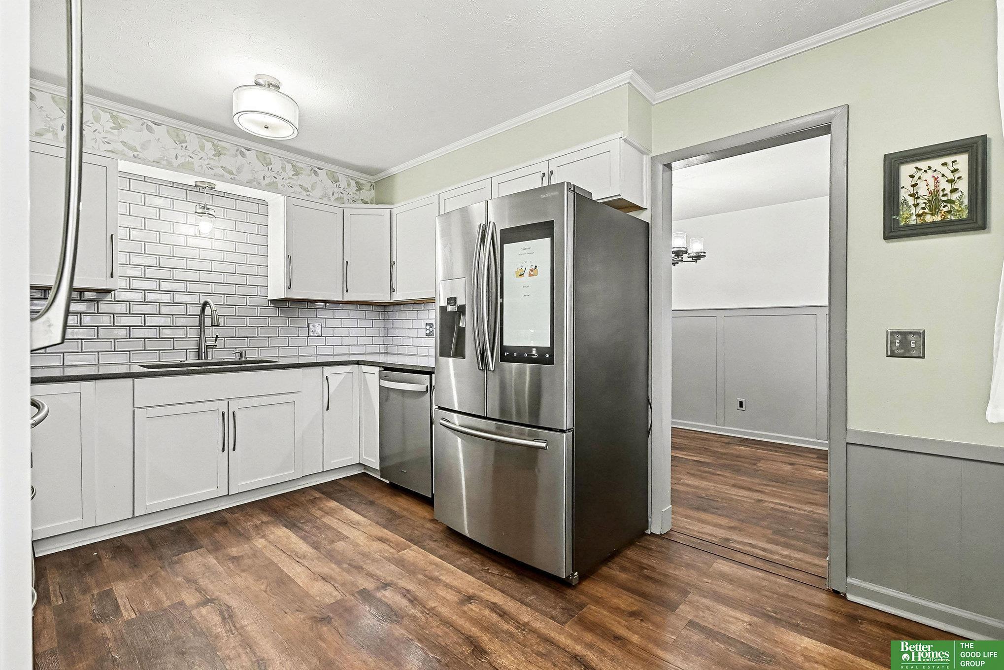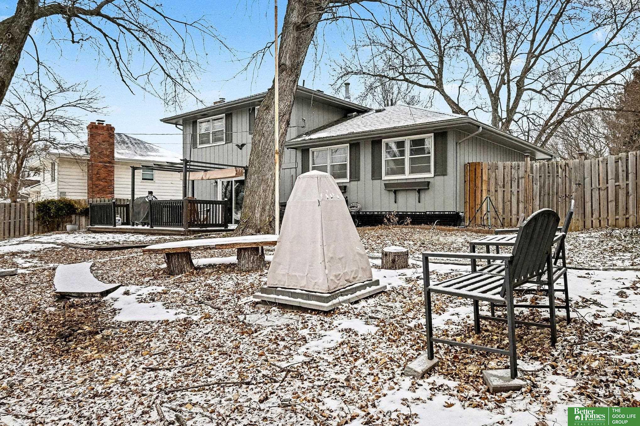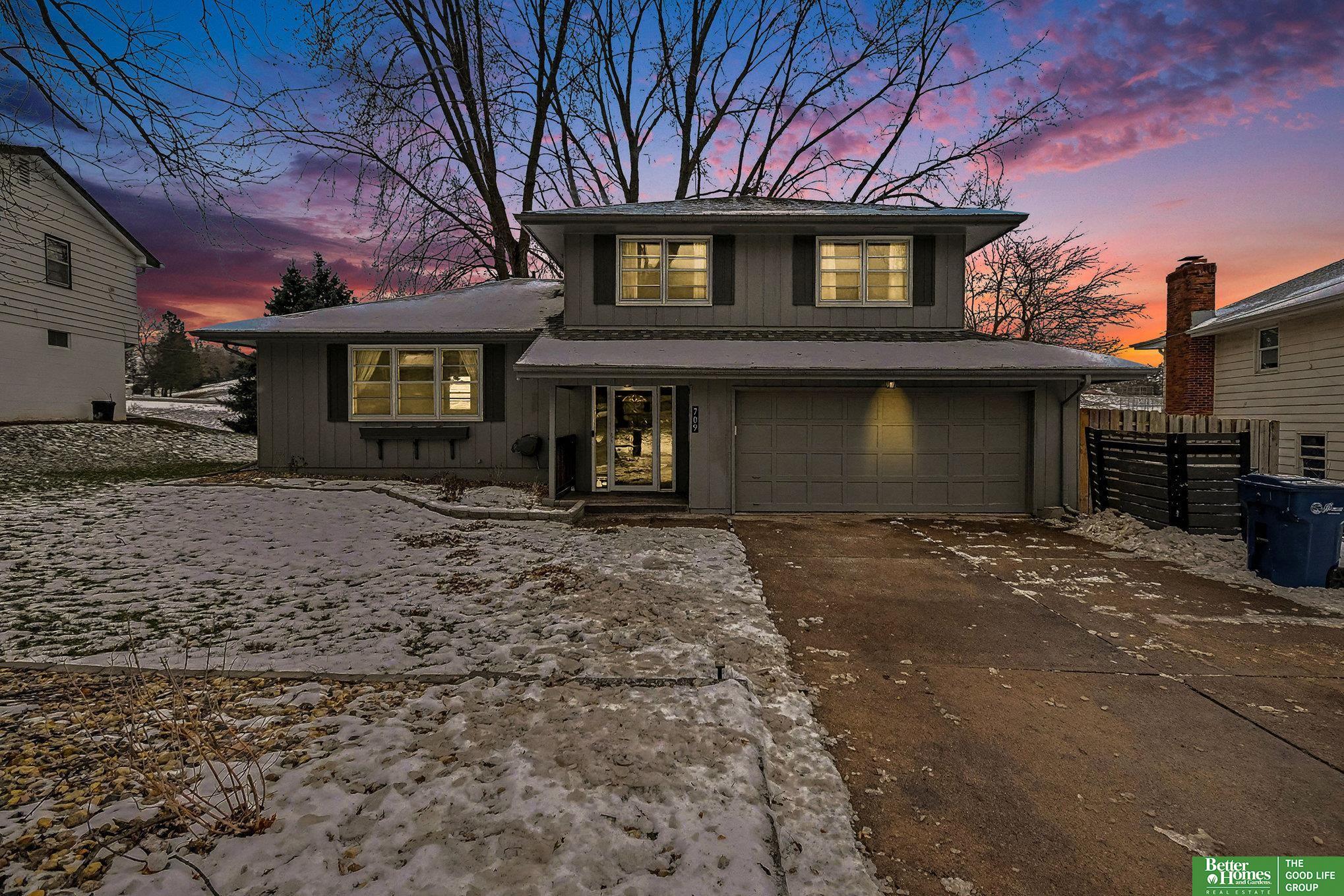 Stunning tri-level home in Bellevue School District! This move in ready home offers fresh paint throughout, a bright modern kitchen complete with stainless steel appliances, and a subway tile backsplash with ample amount of storage. The cozy living room features a charming wood-burning fireplace perfect for relaxing evenings. Located on the main floor you will also find a 3/4 bathroom with a massive rain shower. Upstairs hallway bathroom includes a soaker tub, plus a master en-suite with an upgraded light up mirror and shower. The unfinished basement offers incredible potential to add valuable square footage. Outdoors, enjoy a spacious deck and a fully fenced yard with a fire pit-ideal for entertaining. Both storage sheds stay! Additional perks include an EV charging outlet in the garage, and all appliances including the washer and dry convey with this home. Close proximity to Offutt Air Force Base, Bellevue University and Bellevue East High School!