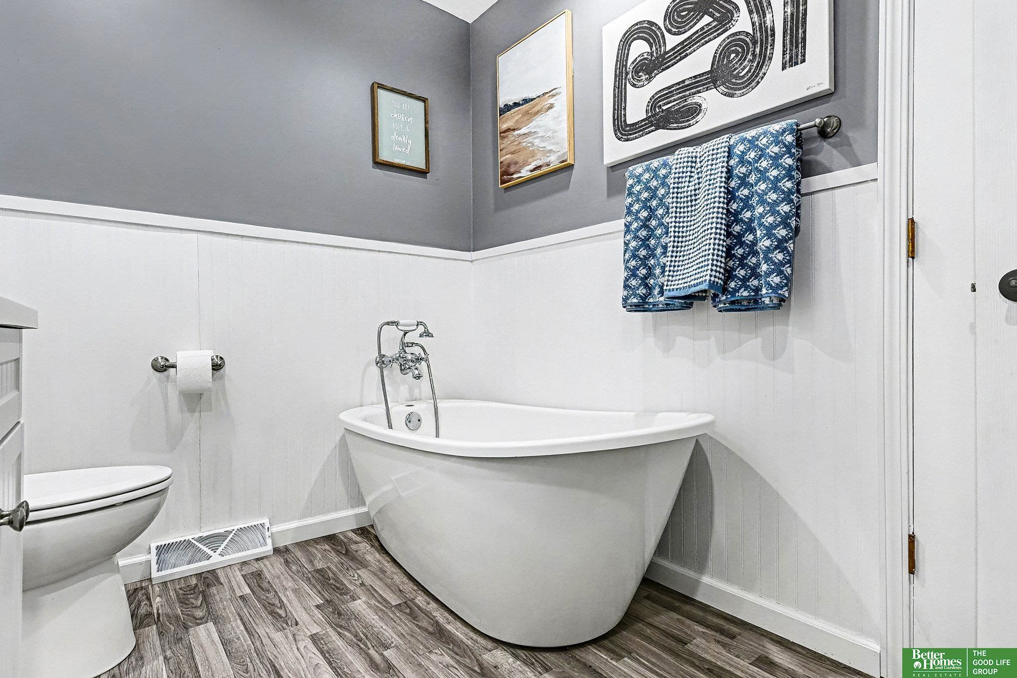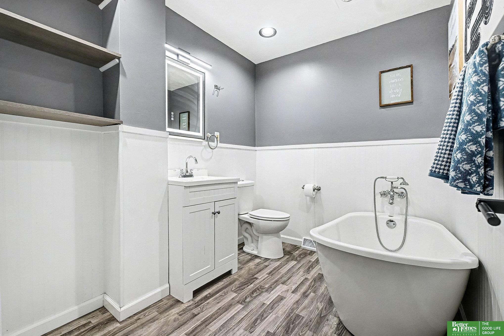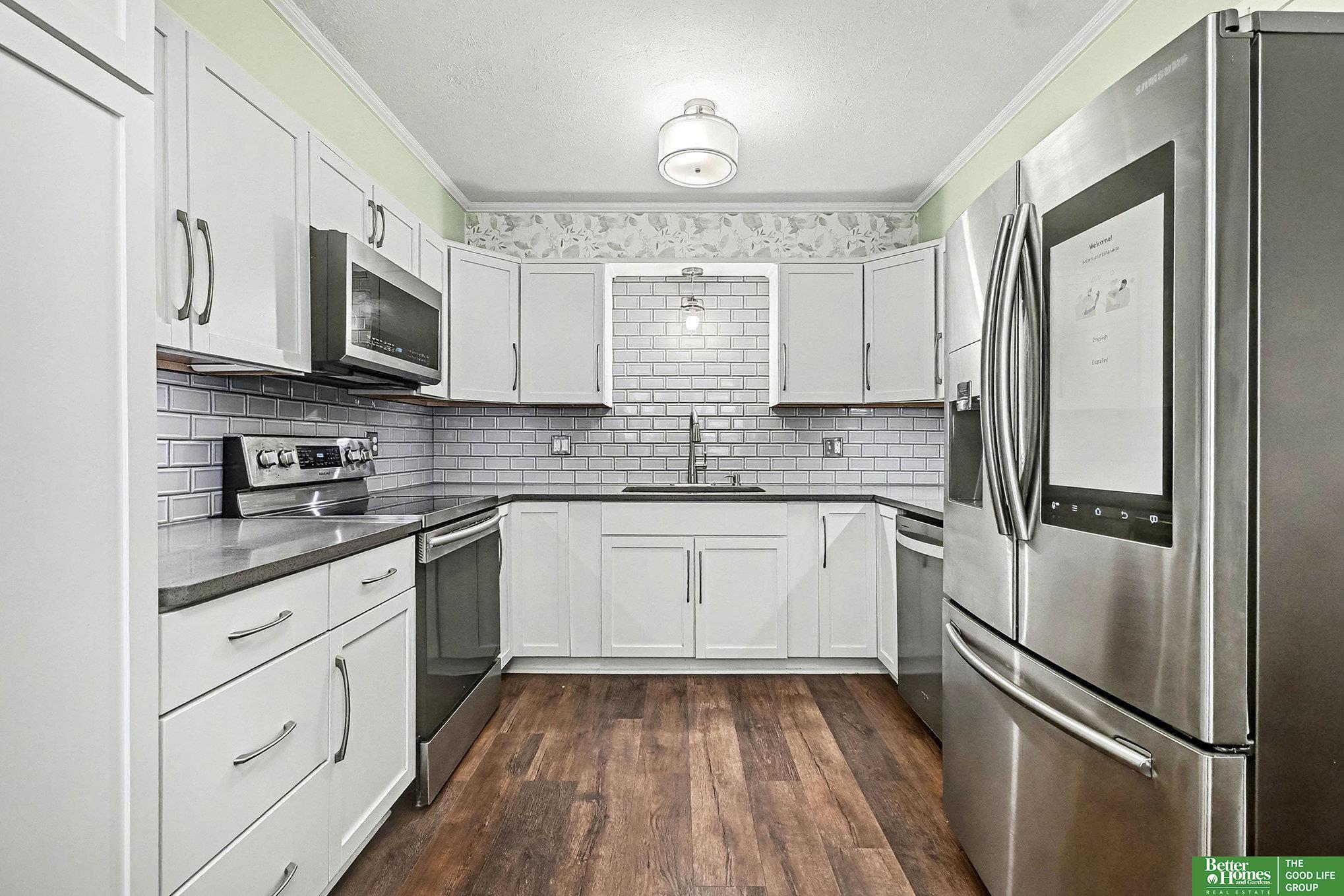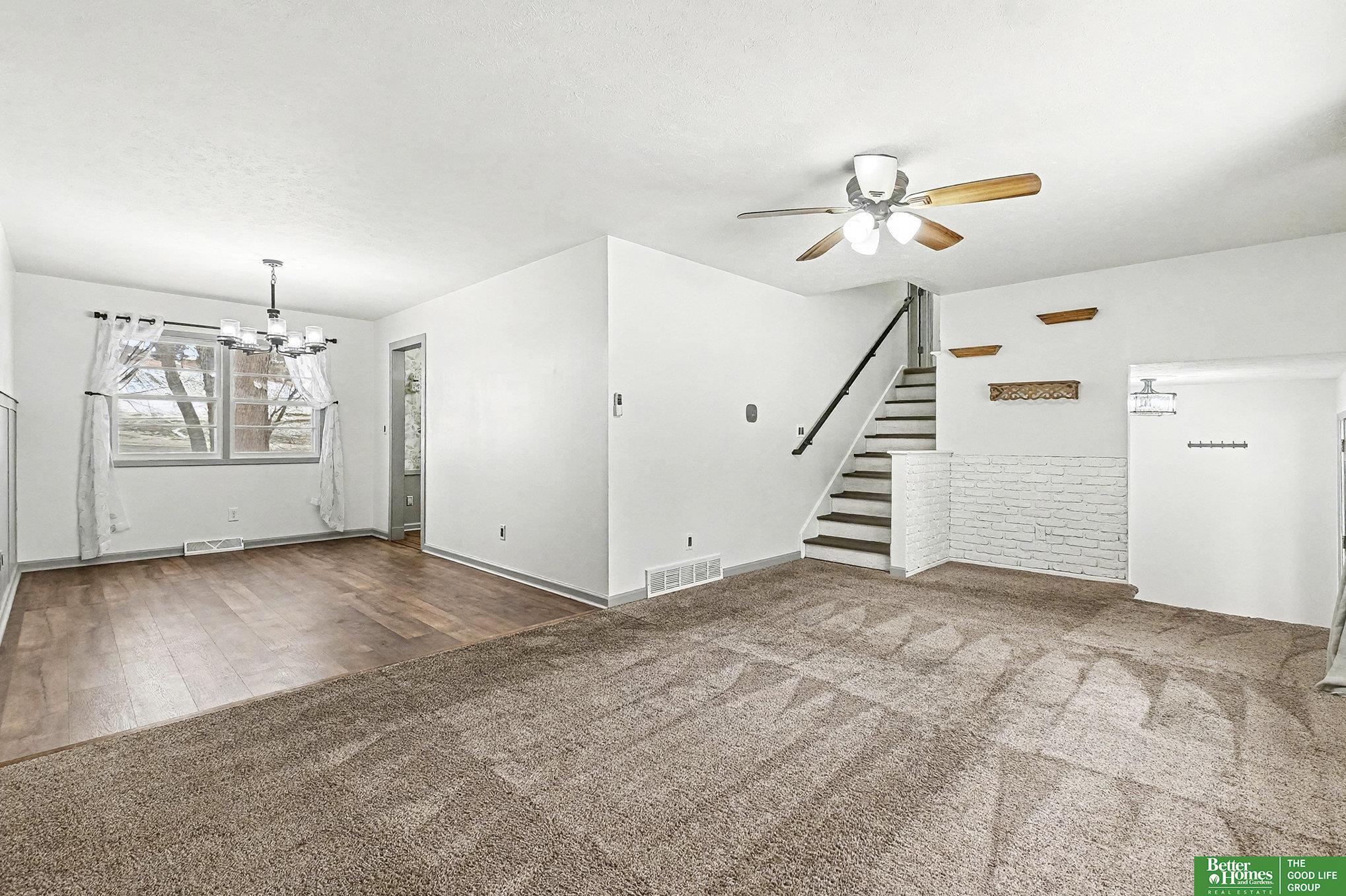 Stunning tri-level home in Bellevue School District! This move in ready home offers fresh paint throughout, a bright modern kitchen complete with stainless steel appliances, and a subway tile backsplash with ample amount of storage. The cozy living room features a charming wood-burning fireplace perfect for relaxing evenings. Located on the main floor you will also find a 3/4 bathroom with a massive rain shower. Upstairs hallway bathroom includes a soaker tub, plus a master en-suite with an upgraded light up mirror and shower. The unfinished basement offers incredible potential to add valuable square footage. Outdoors, enjoy a spacious deck and a fully fenced yard with a fire pit-ideal for entertaining. Both storage sheds stay! Additional perks include an EV charging outlet in the garage, and all appliances including the washer and dry convey with this home. Close proximity to Offutt Air Force Base, Bellevue University and Bellevue East High School!