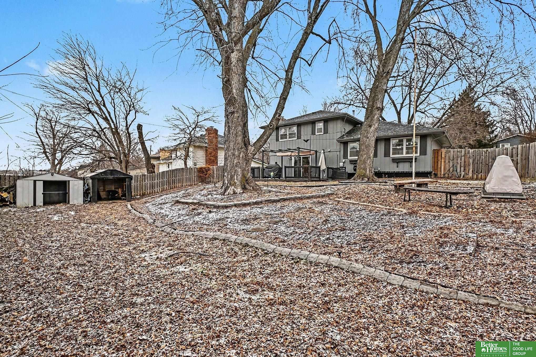 Stunning tri-level home in Bellevue School District! This move in ready home offers fresh paint throughout, a bright modern kitchen complete with stainless steel appliances, and a subway tile backsplash with ample amount of storage. The cozy living room features a charming wood-burning fireplace perfect for relaxing evenings. Located on the main floor you will also find a 3/4 bathroom with a massive rain shower. Upstairs hallway bathroom includes a soaker tub, plus a master en-suite with an upgraded light up mirror and shower. The unfinished basement offers incredible potential to add valuable square footage. Outdoors, enjoy a spacious deck and a fully fenced yard with a fire pit-ideal for entertaining. Both storage sheds stay! Additional perks include an EV charging outlet in the garage, and all appliances including the washer and dry convey with this home. Close proximity to Offutt Air Force Base, Bellevue University and Bellevue East High School!