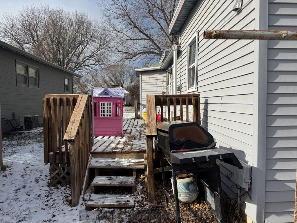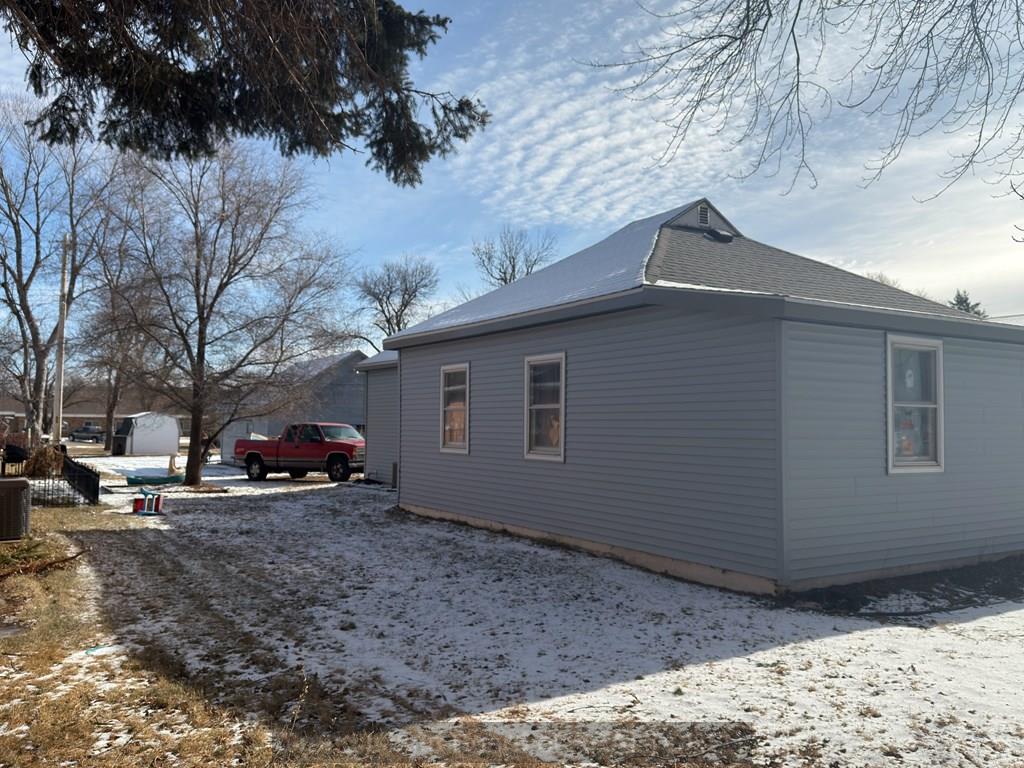 Investment Opportunity! Brand new roof on house and garage, and vinyl siding on north side of house in 2025. Furnace and A/C new in 2020. Two bedrooms plus a playroom that could easily be a third bedroom. There is vinyl siding on the house but the garage is wood.