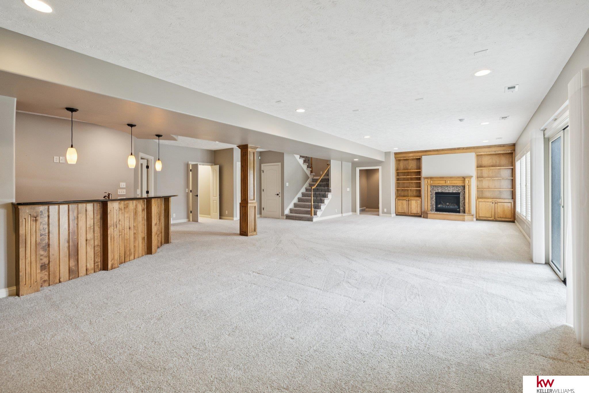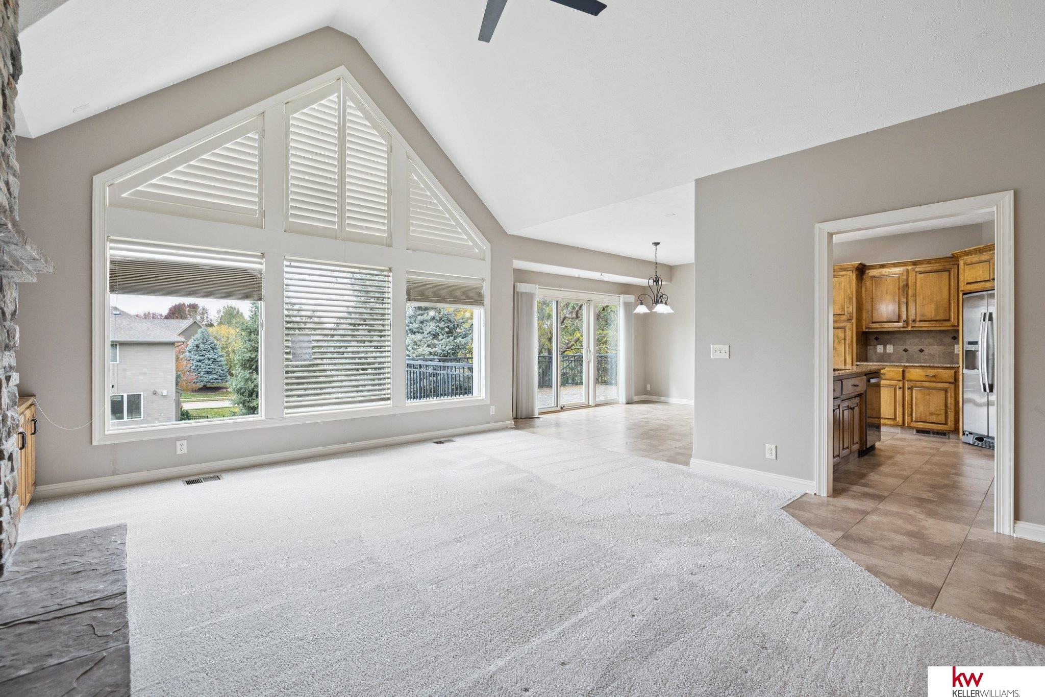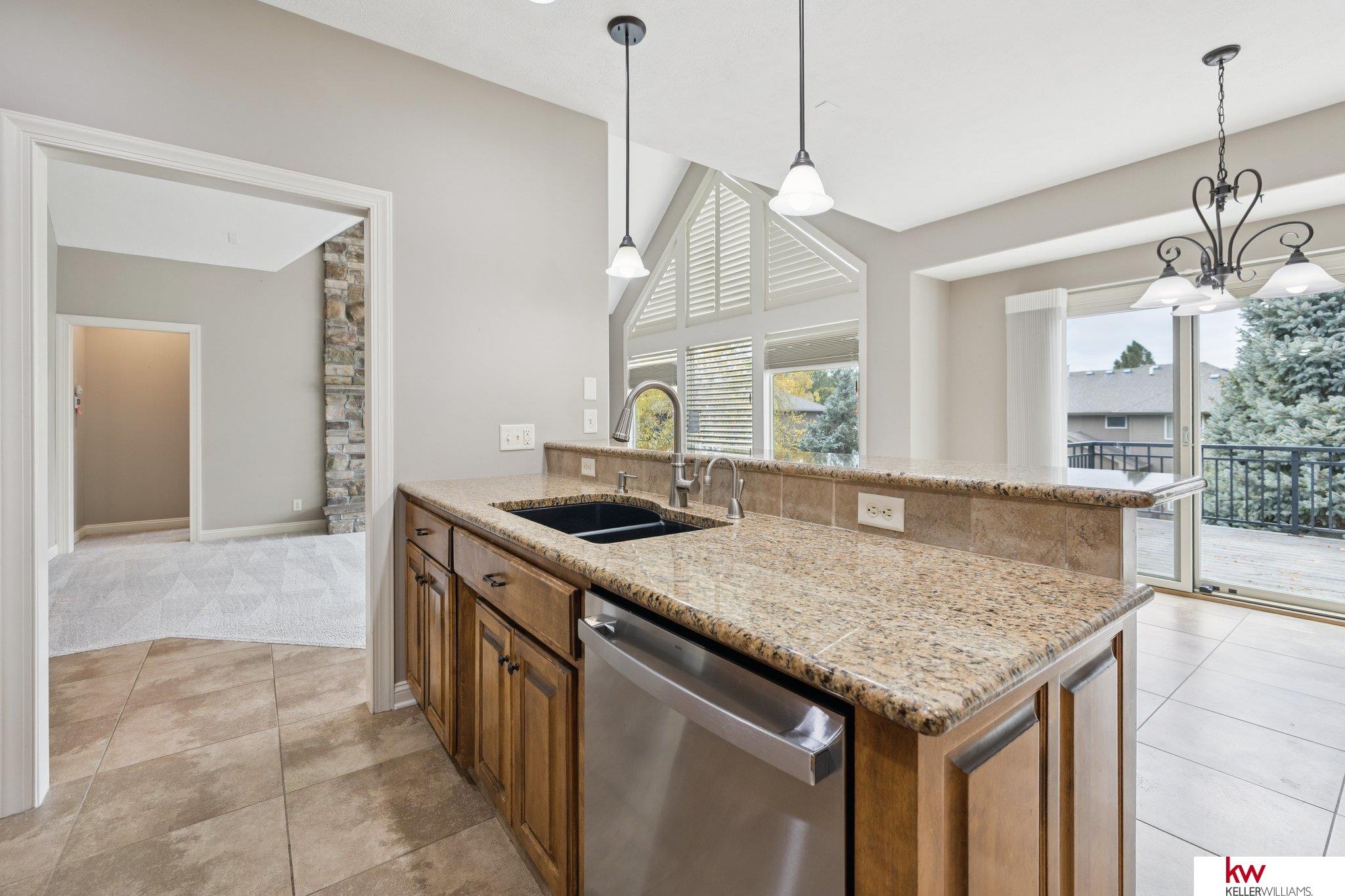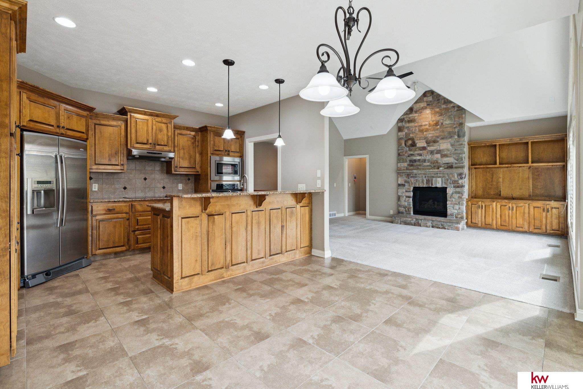 Welcome to this beautiful ranch home in the highly desirable Fire Ridge Estates community. Enjoy access to the clubhouse, pool, and tennis courts, all included in the HOA. The open main floor features cathedral ceilings, a cozy fireplace, and a spacious layout perfect for everyday living and entertaining. The kitchen and dining areas flow naturally to a large deck overlooking the fenced backyard. The main floor also includes an office and a convenient laundry room connected to the primary suite. The walkout lower level offers another fireplace, a wet bar, and generous space for gatherings or hobbies, including a dedicated craft room. With three bedrooms, three bathrooms, and over 3,600 finished square feet, this home provides comfort, function, and flexibility. Located near top-rated Elkhorn schools, this home combines community amenities with a private, welcoming feel.