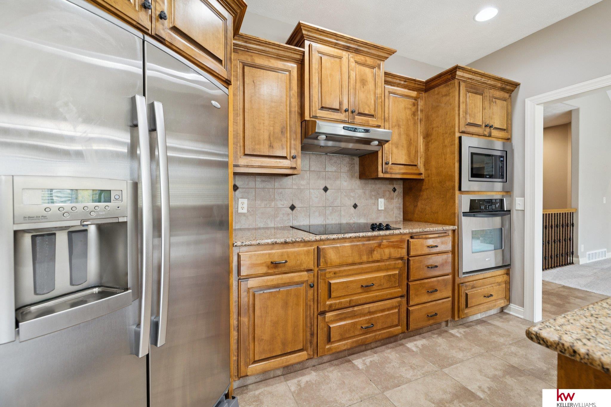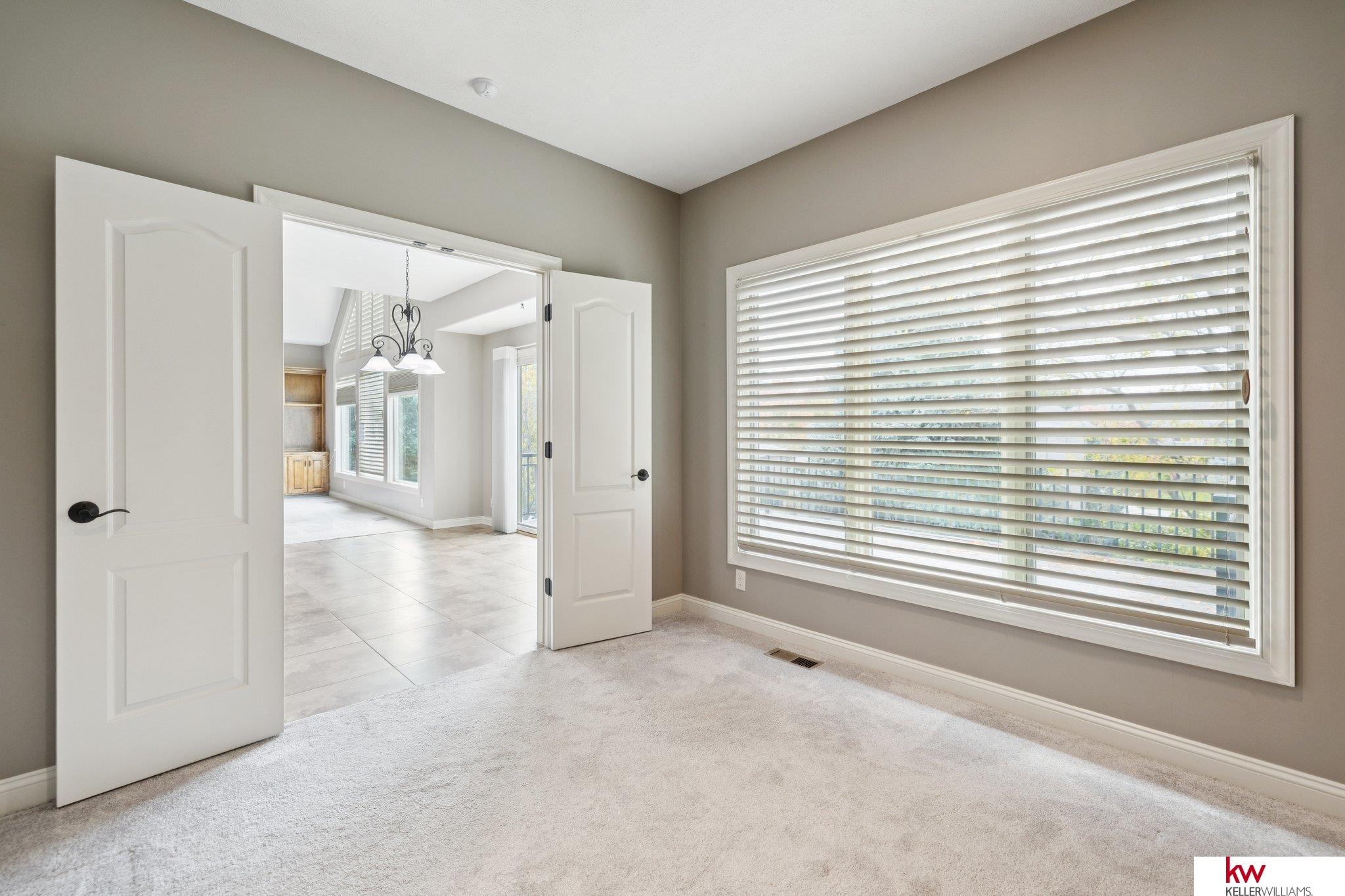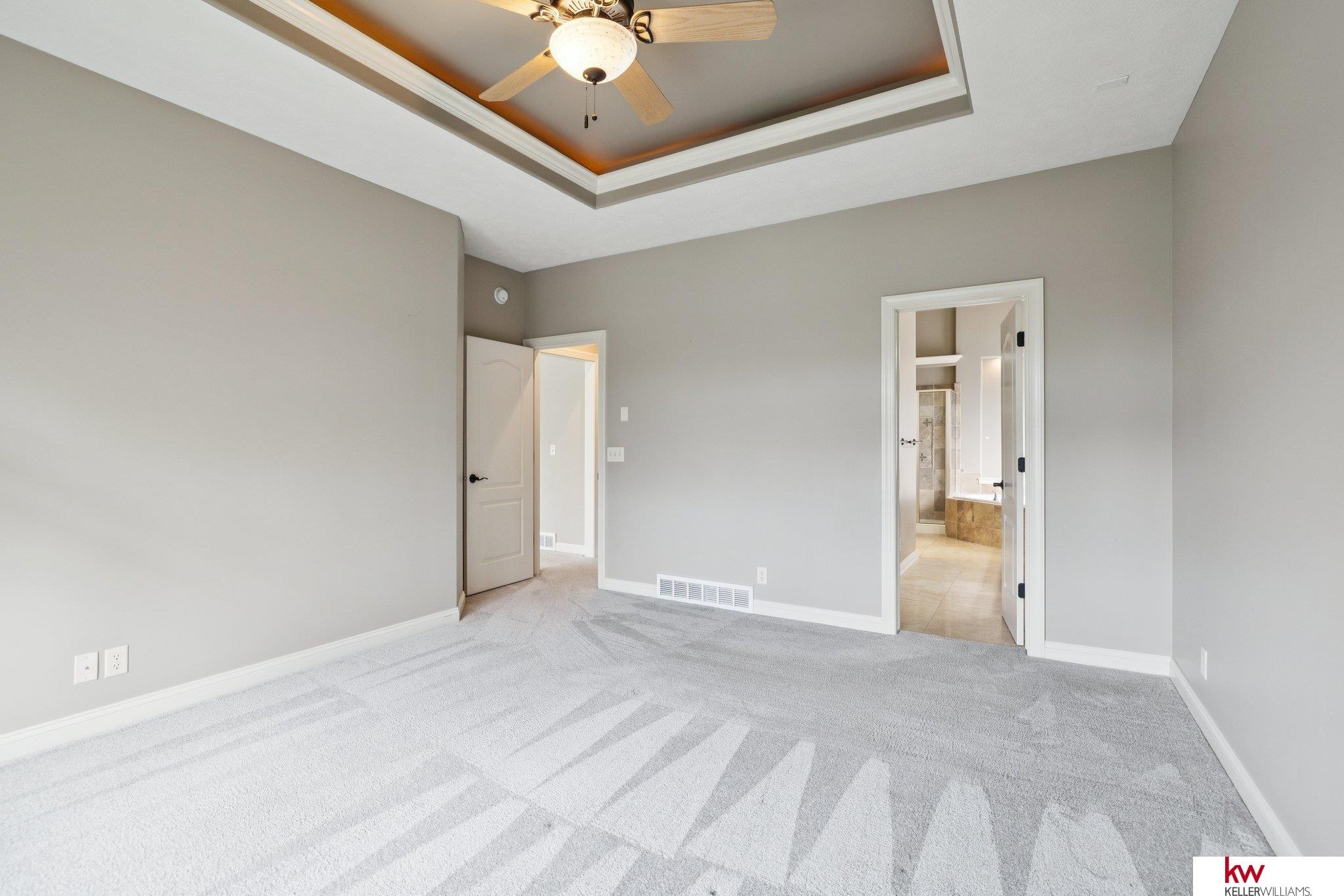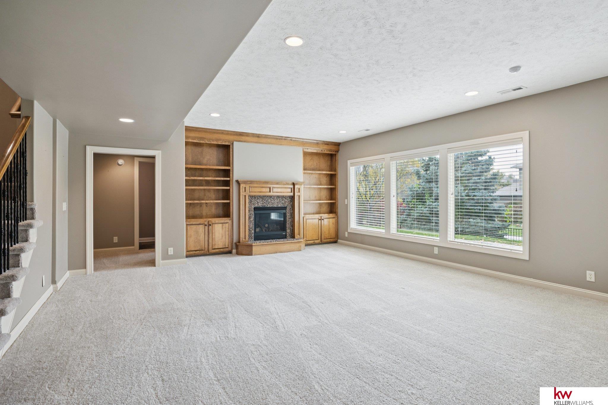 Welcome to this beautiful ranch home in the highly desirable Fire Ridge Estates community. Enjoy access to the clubhouse, pool, and tennis courts, all included in the HOA. The open main floor features cathedral ceilings, a cozy fireplace, and a spacious layout perfect for everyday living and entertaining. The kitchen and dining areas flow naturally to a large deck overlooking the fenced backyard. The main floor also includes an office and a convenient laundry room connected to the primary suite. The walkout lower level offers another fireplace, a wet bar, and generous space for gatherings or hobbies, including a dedicated craft room. With three bedrooms, three bathrooms, and over 3,600 finished square feet, this home provides comfort, function, and flexibility. Located near top-rated Elkhorn schools, this home combines community amenities with a private, welcoming feel.