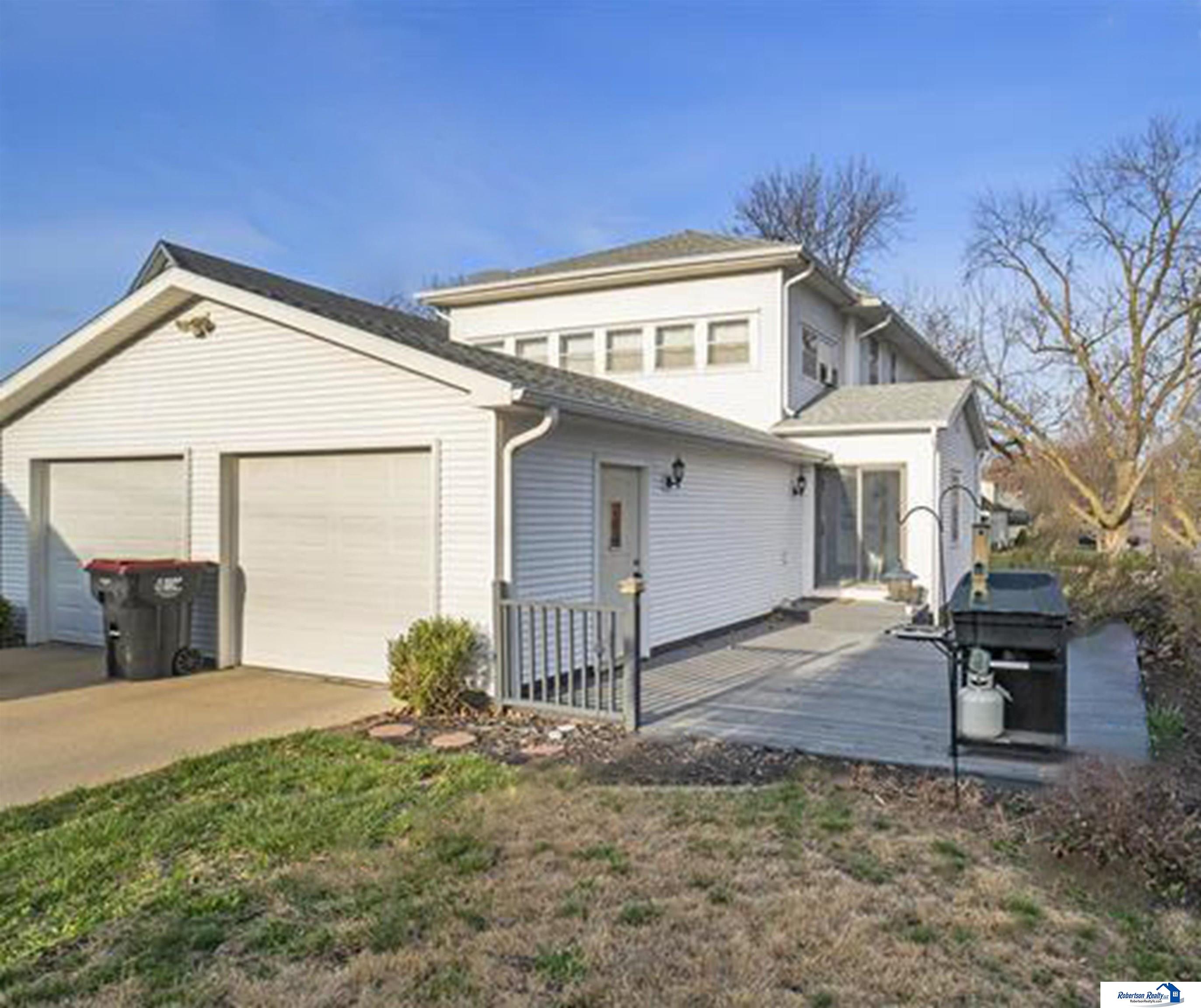 Here is your new home! Look at this beauty with its gorgeous entry way! 4 bedrooms (1 on the main floor, 3 upstairs), huge living room, awesome dining room, bonus area that can be used for an office, workout room, etc. with glass doors leading to rear deck, spacious kitchen with appliances staying, 2 bathrooms, incredible laundry room with utility sink & storage. Check out all the walk in closets throughout the home. Plus there is an unfinished basement. Outside relax on the front deck or rear deck it's your choice - coffee on the rear deck to watch the sunrise or ice tea on the front deck to watch the sunset. This home also provides 3 garage spaces with its two-car garage plus its single car garage/outbuilding both with alley access! PLUS: New Roof on House and Garages (2023), New Siding, gutters & downspouts, some new windows, new garage doors & openers, Remodeled main floor bath, New Carpet in upstairs hallway & updated landscaping. Cash or Conventional loan buyers.