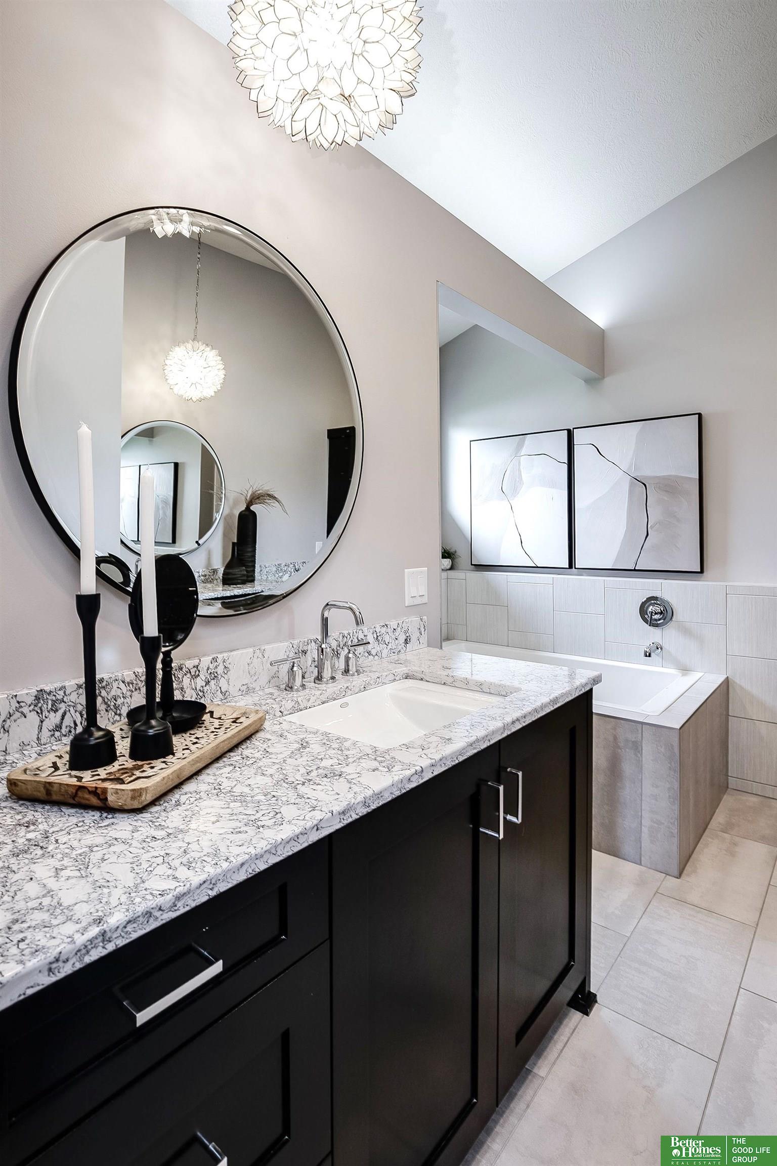 Exquisite design & refined craftsmanship define this pre-inspected 1.5-story home. Soaring ceilings & a dramatic floor-to-ceiling stone fireplace create a striking focal point in the living room. Engineered hardwood floors span the main level, flowing into a chef's kitchen w/ white cabinetry, quartz countertops, SS appliances, & an elegant eat-in dinette. A formal dining room offers timeless sophistication, while the private rear office is ideal for working from home. The main-level primary suite is a luxurious retreat featuring a spa-inspired bath w/ soaking tub, tiled shower w/ dual showerheads, & an expansive walk-in closet. Upstairs offers a versatile loft & three generous bedrooms, including one en suite & a Jack-and-Jill bath. The finished basement is designed for entertaining w/ a wet bar, quartz bar top, tile floors, designer carpet, plus a fifth bedroom & bath. Permanent year-round exterior lighting enhances curb appeal, & residents enjoy access to the neighborhood pool.