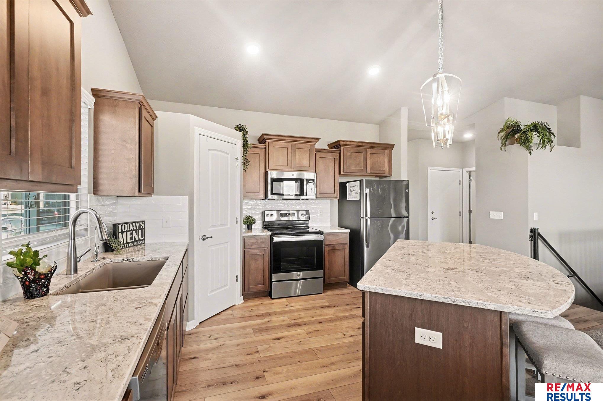 Showings start New Year's Day! Located in the desirable Highland Hills neighborhood, this nearly new detached ranch villa home offers comfortable, modern living. Home lives like a single family with all the benefits of a villa. Monthly HOA includes lawn care, snow removal and trash service. You will love the vaulted ceiling in the main living space, loads of natural light through the day, and stunning sunset views at night. Dining room leads out to covered deck. Split bedroom floorplan with two bedrooms both with excellent walk-in closets. LVP through main walk areas, kitchen, and dining. Beautiful quartz countertops in the kitchen with ample space, walk-in pantry, a great center island for hosting, and an eat-up bar. The walkout basement provides excellent future flexibility w/the 3rd bath already finished for you. All appliances including the washer and dryer to stay. Roof new in 2024. Does NOT back to 168th. Quick close possible. *Seller has been property tax exempt for 2024-2025