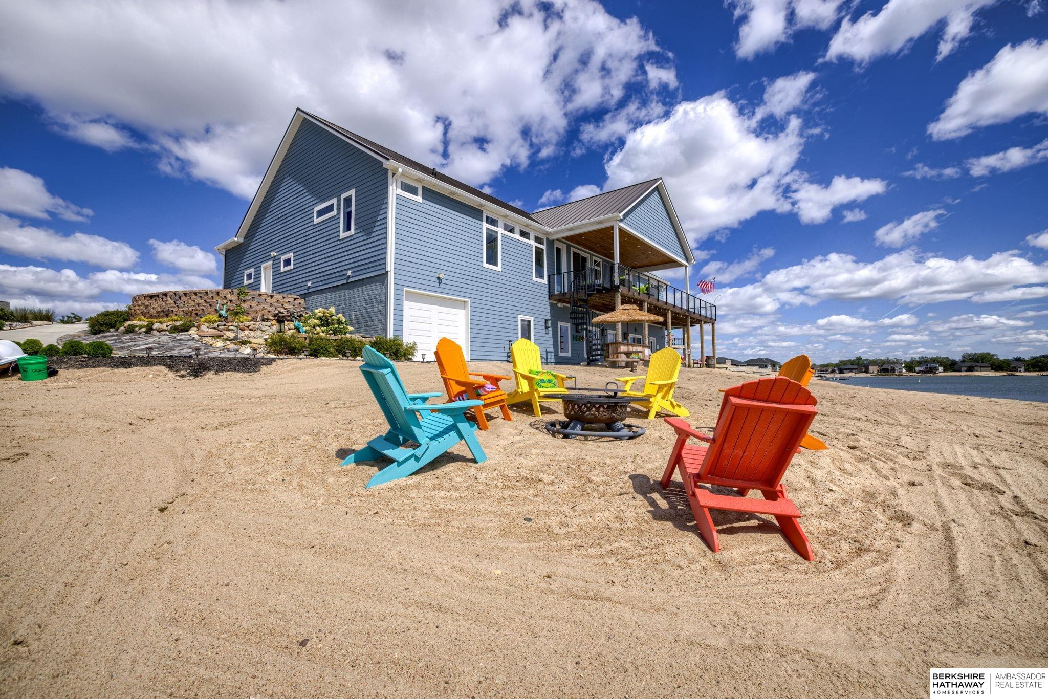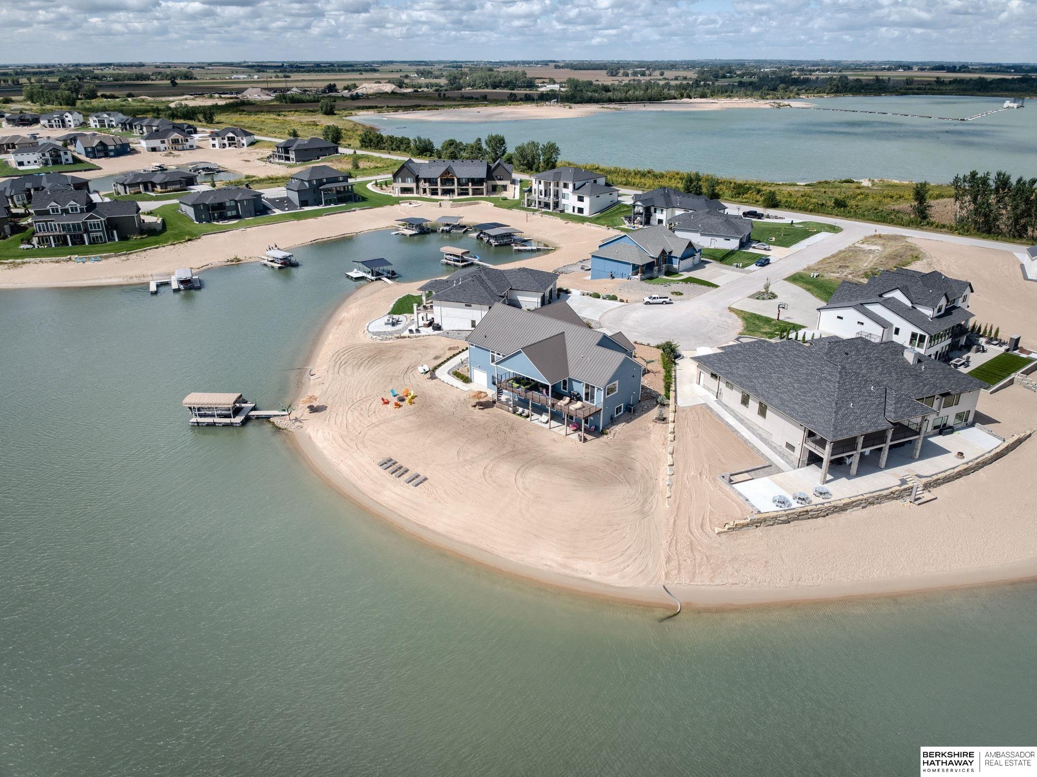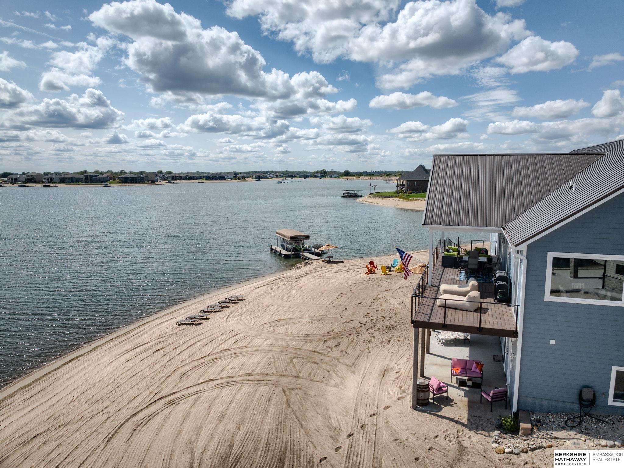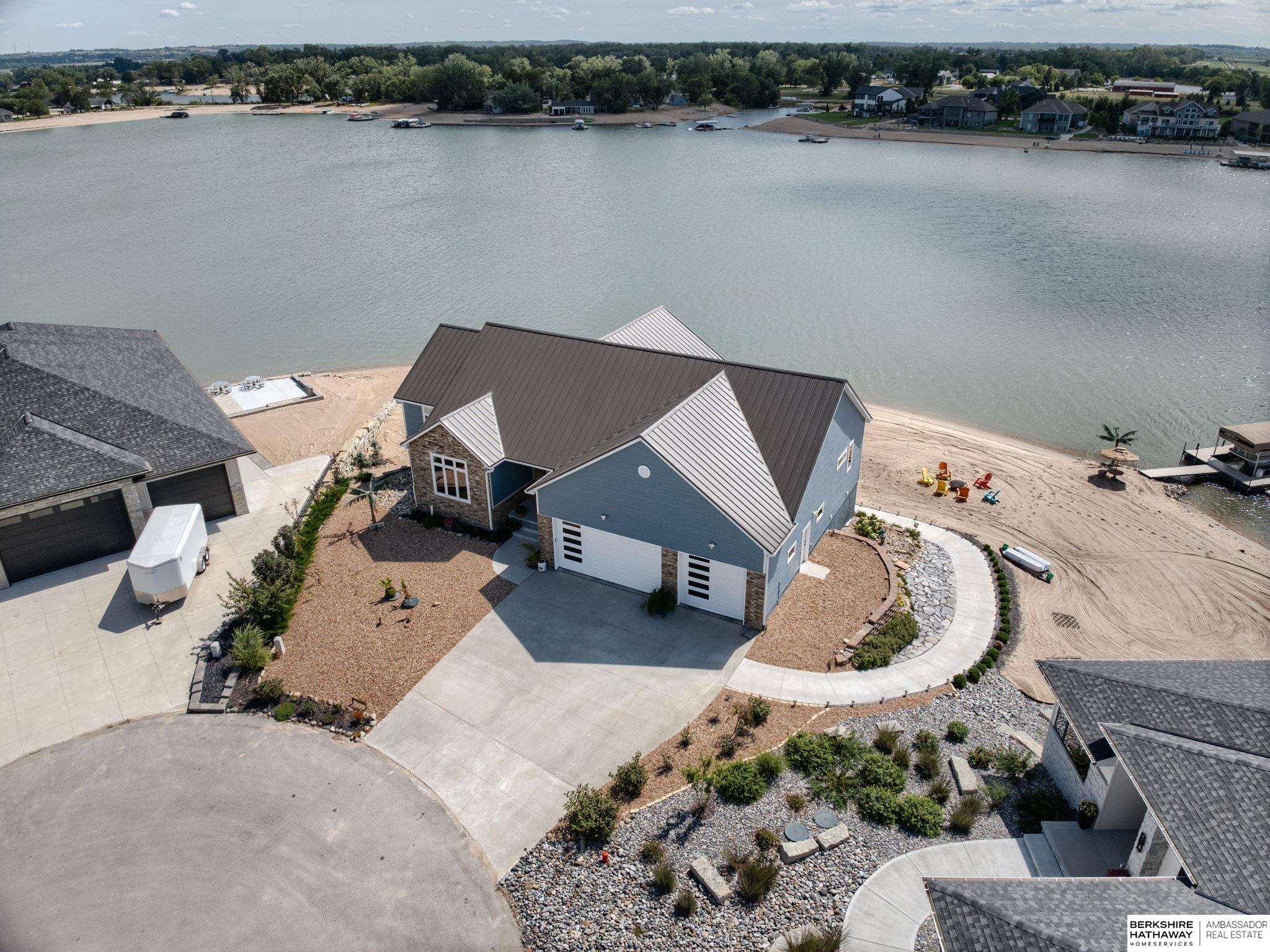 Vacation every day, enjoy sandy scenic beaches all year-round! Situated on one of the best point lots, Lake Allure provides peaceful views & ultimate lake living; you will never want to leave! Spacious open floor plan w/ abundant windows to enjoy sunrise & sunsets, which are spectacular all year-round. Full deck feature covered & uncovered, perfect for entertaining. Lake Allure, a private gated community outside of quaint downtown Ashland between Lincoln & Omaha, is a full wake lake w/ excellent fishing. Nestled on a cul-de-sac, the front & side yards are maintenance-free w/ stunning rock & drought-resistant plantings. Easy access to the beach for guests w/ sidewalk to the lake. Intentionally designed for beach living, the interior features luxury vinyl plank, stained concrete, & tile for most of the flooring. Access for guests to lake & bath w/ shower. LL garage houses all your beach toys, jet skis, UTV, etc. Covered dock w/ lift included. Class 4 metal roof is ideal for our climate.