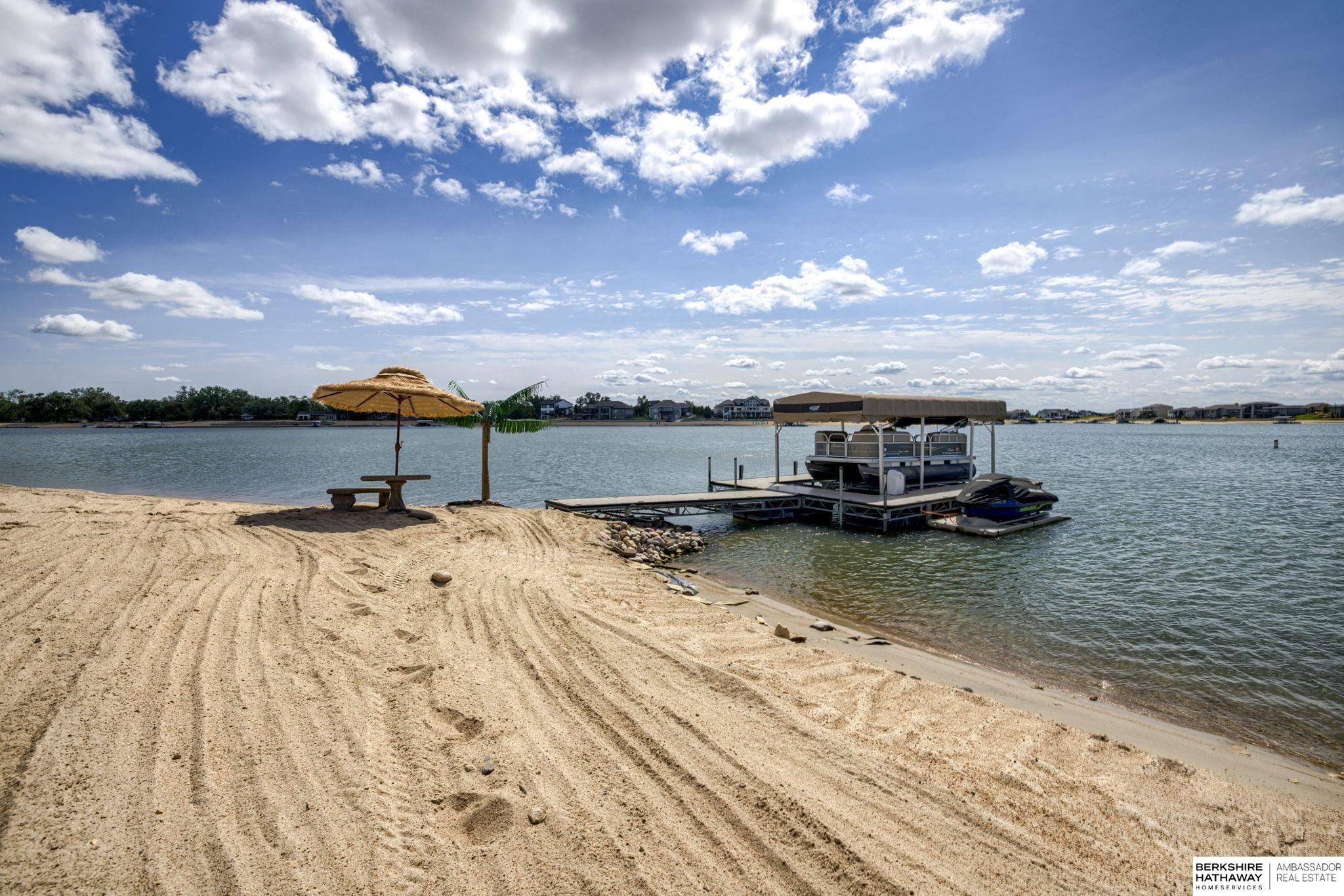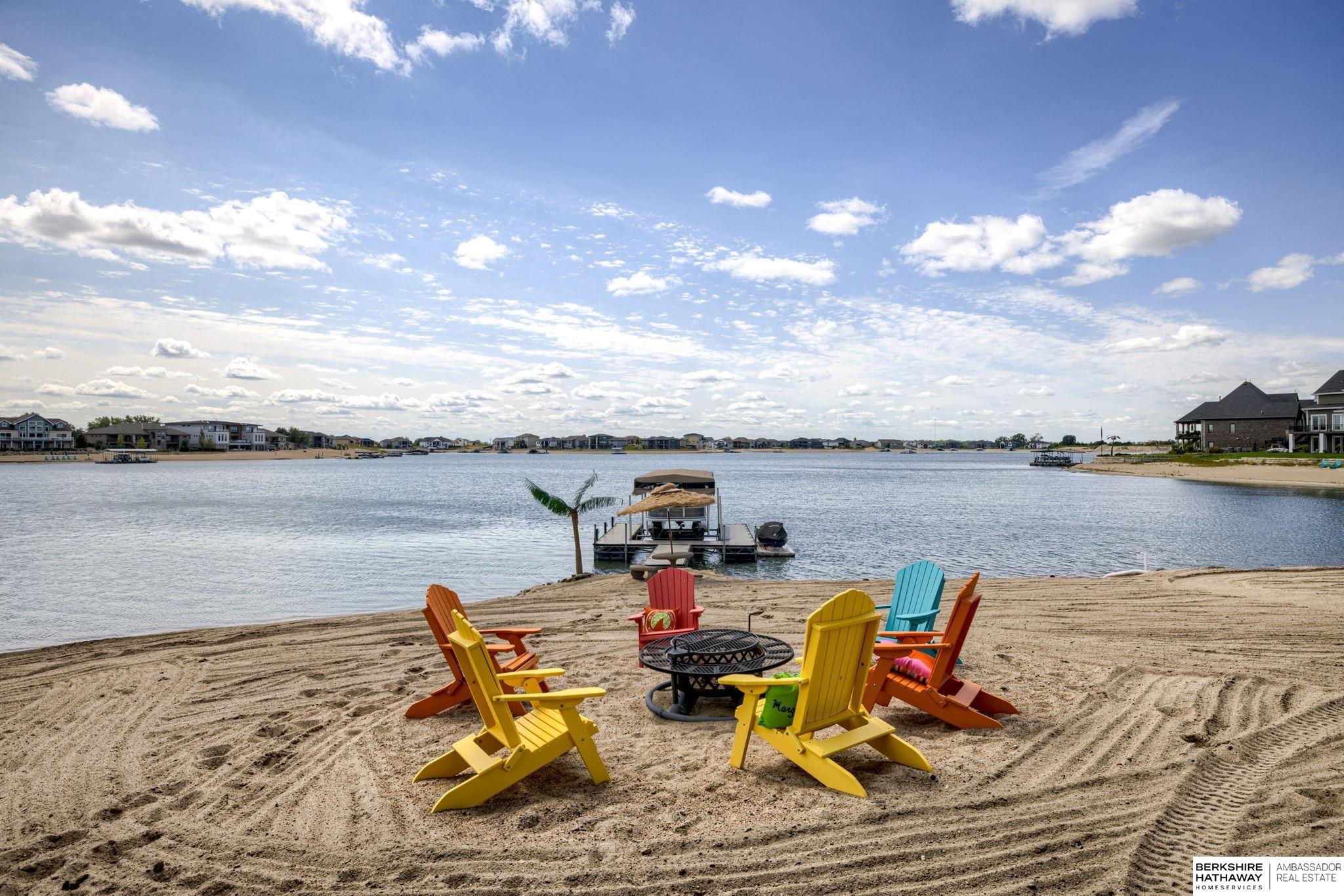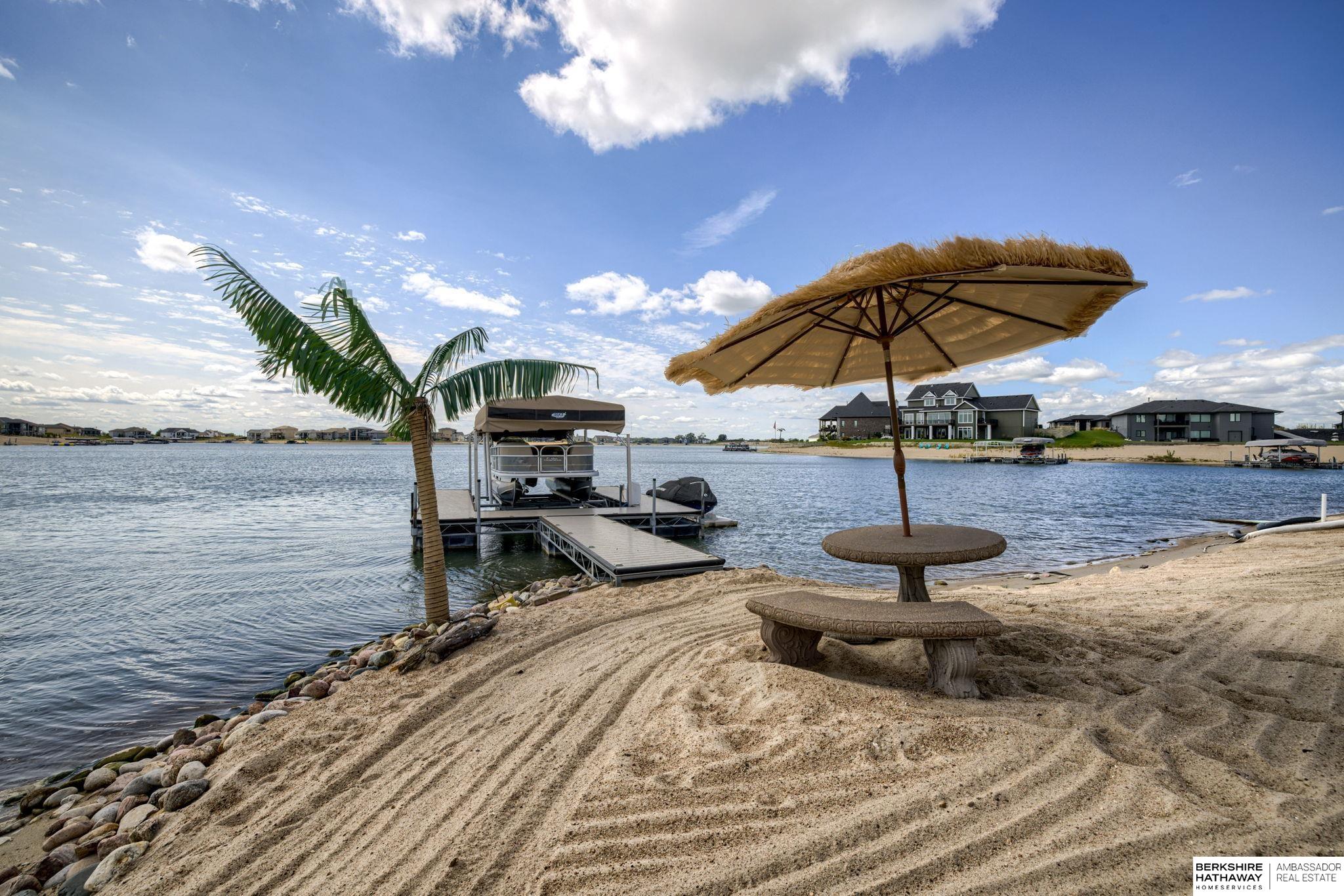 Vacation every day, enjoy sandy scenic beaches all year-round! Situated on one of the best point lots, Lake Allure provides peaceful views & ultimate lake living; you will never want to leave! Spacious open floor plan w/ abundant windows to enjoy sunrise & sunsets, which are spectacular all year-round. Full deck feature covered & uncovered, perfect for entertaining. Lake Allure, a private gated community outside of quaint downtown Ashland between Lincoln & Omaha, is a full wake lake w/ excellent fishing. Nestled on a cul-de-sac, the front & side yards are maintenance-free w/ stunning rock & drought-resistant plantings. Easy access to the beach for guests w/ sidewalk to the lake. Intentionally designed for beach living, the interior features luxury vinyl plank, stained concrete, & tile for most of the flooring. Access for guests to lake & bath w/ shower. LL garage houses all your beach toys, jet skis, UTV, etc. Covered dock w/ lift included. Class 4 metal roof is ideal for our climate.