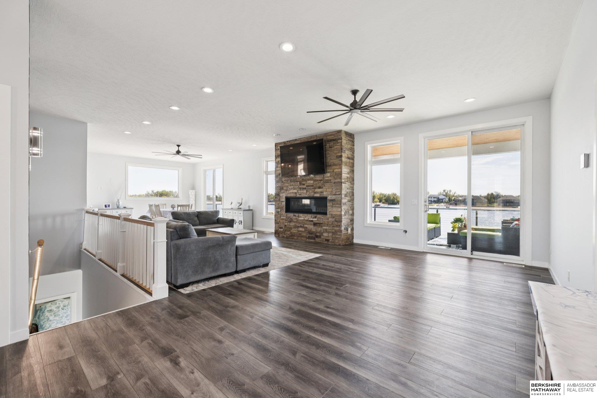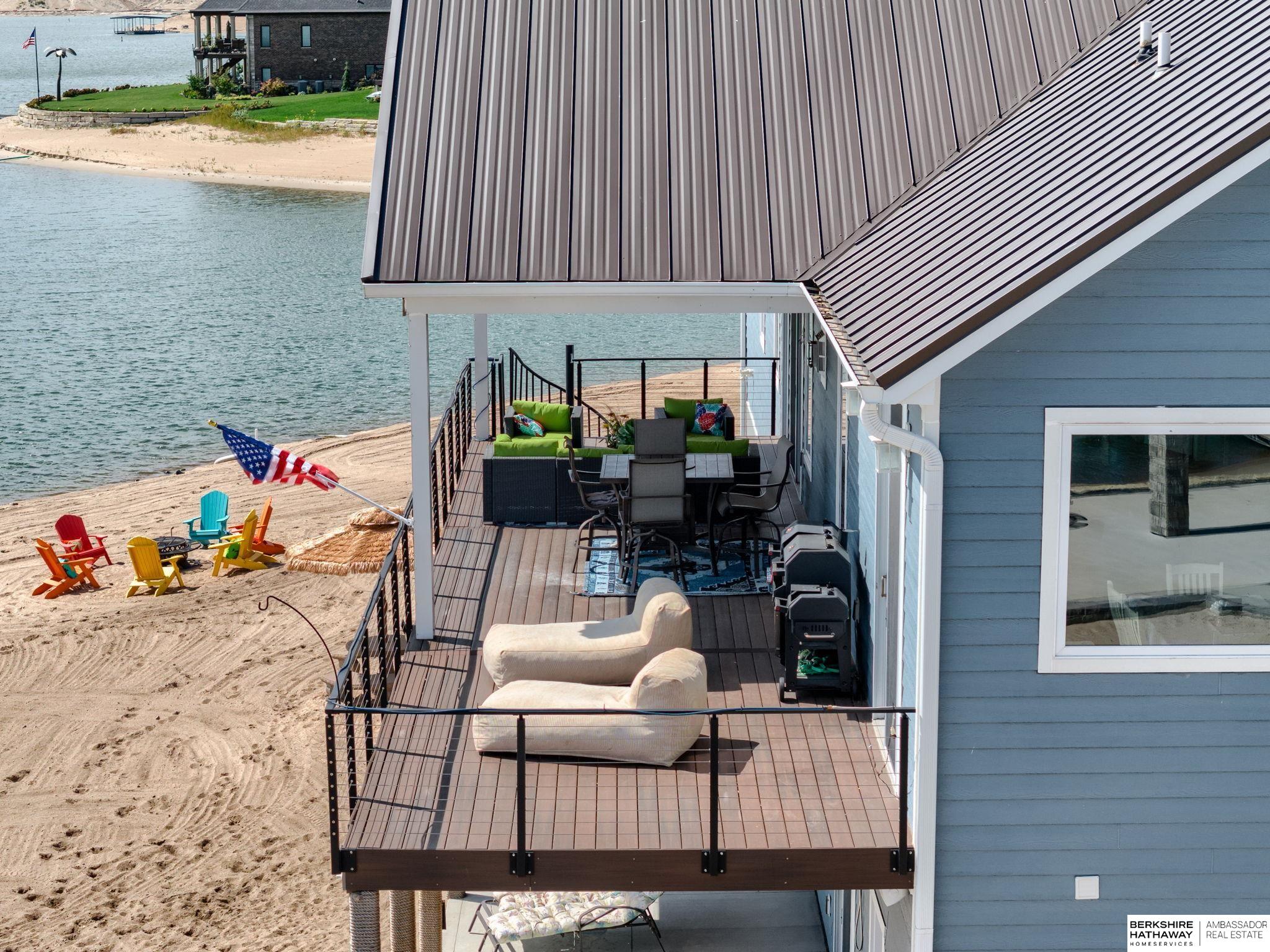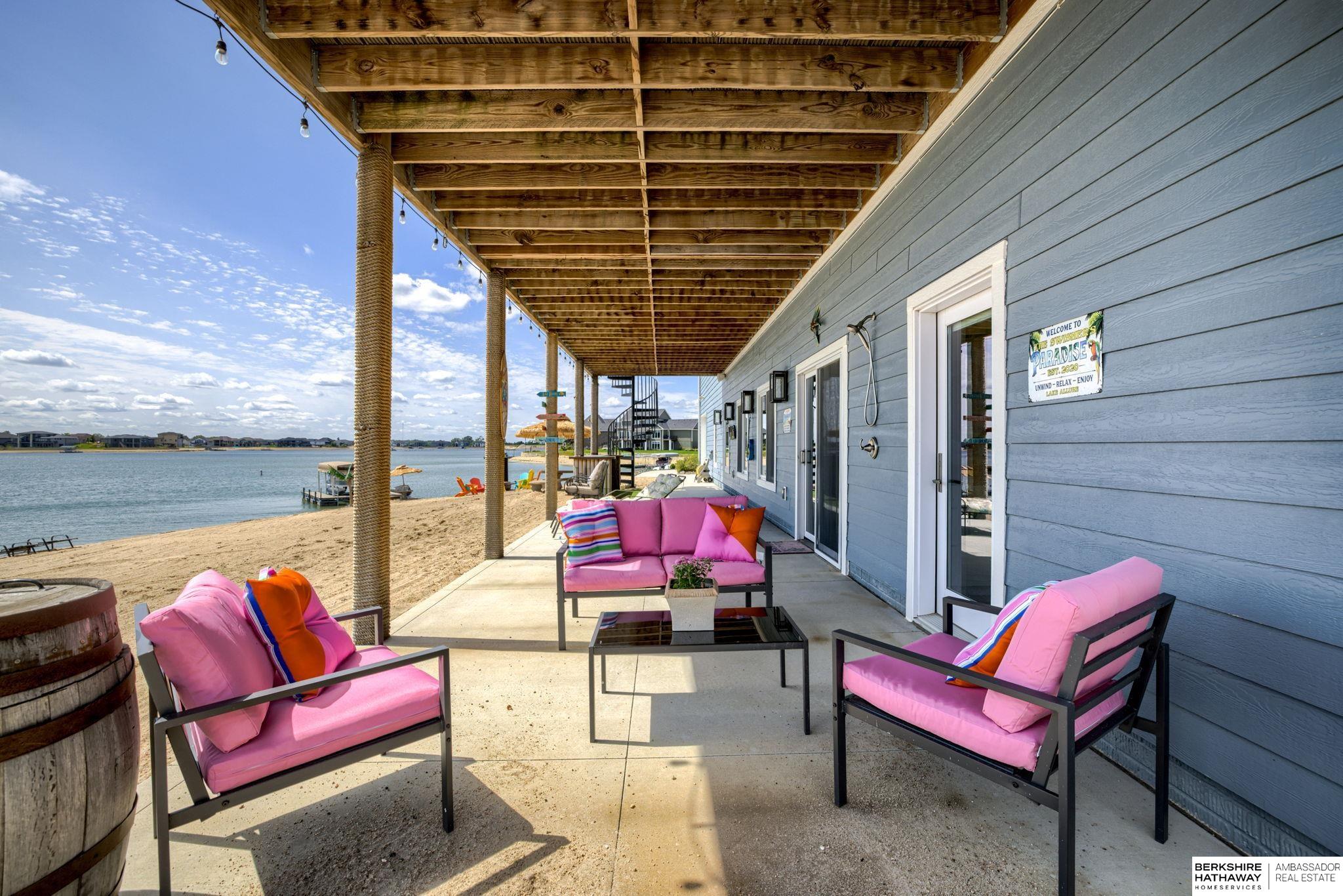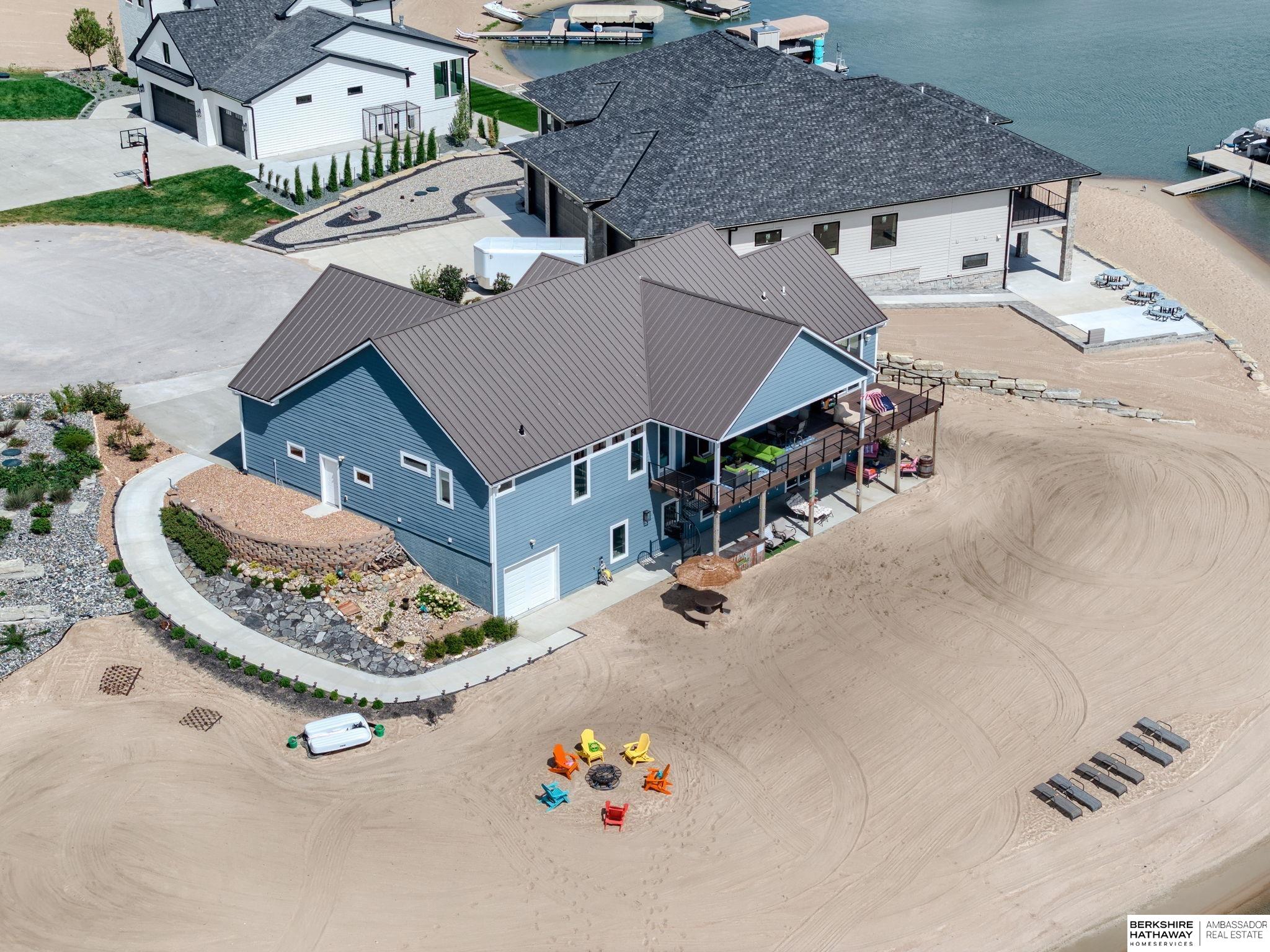 Vacation every day, enjoy sandy scenic beaches all year-round! Situated on one of the best point lots, Lake Allure provides peaceful views & ultimate lake living; you will never want to leave! Spacious open floor plan w/ abundant windows to enjoy sunrise & sunsets, which are spectacular all year-round. Full deck feature covered & uncovered, perfect for entertaining. Lake Allure, a private gated community outside of quaint downtown Ashland between Lincoln & Omaha, is a full wake lake w/ excellent fishing. Nestled on a cul-de-sac, the front & side yards are maintenance-free w/ stunning rock & drought-resistant plantings. Easy access to the beach for guests w/ sidewalk to the lake. Intentionally designed for beach living, the interior features luxury vinyl plank, stained concrete, & tile for most of the flooring. Access for guests to lake & bath w/ shower. LL garage houses all your beach toys, jet skis, UTV, etc. Covered dock w/ lift included. Class 4 metal roof is ideal for our climate.