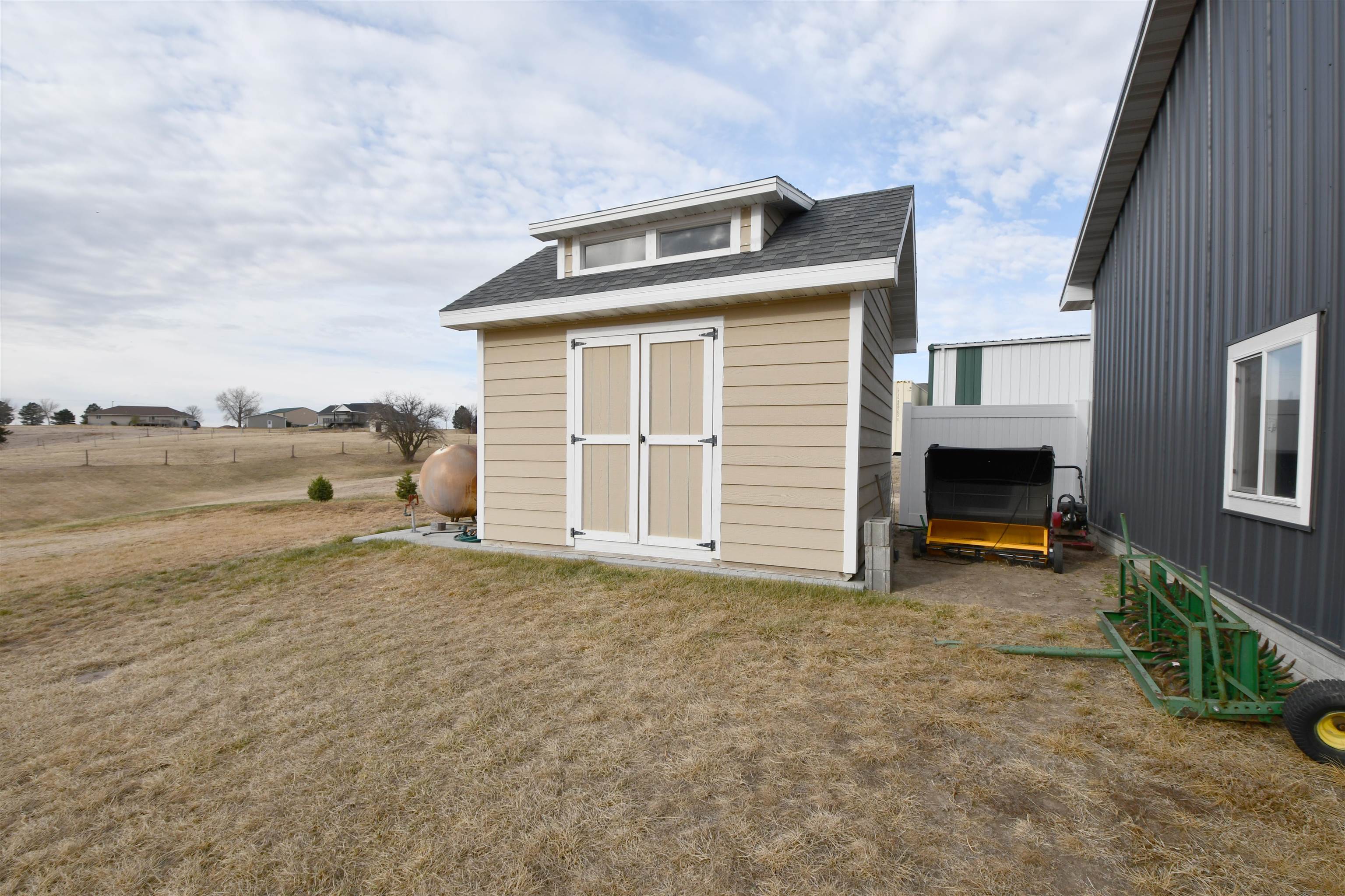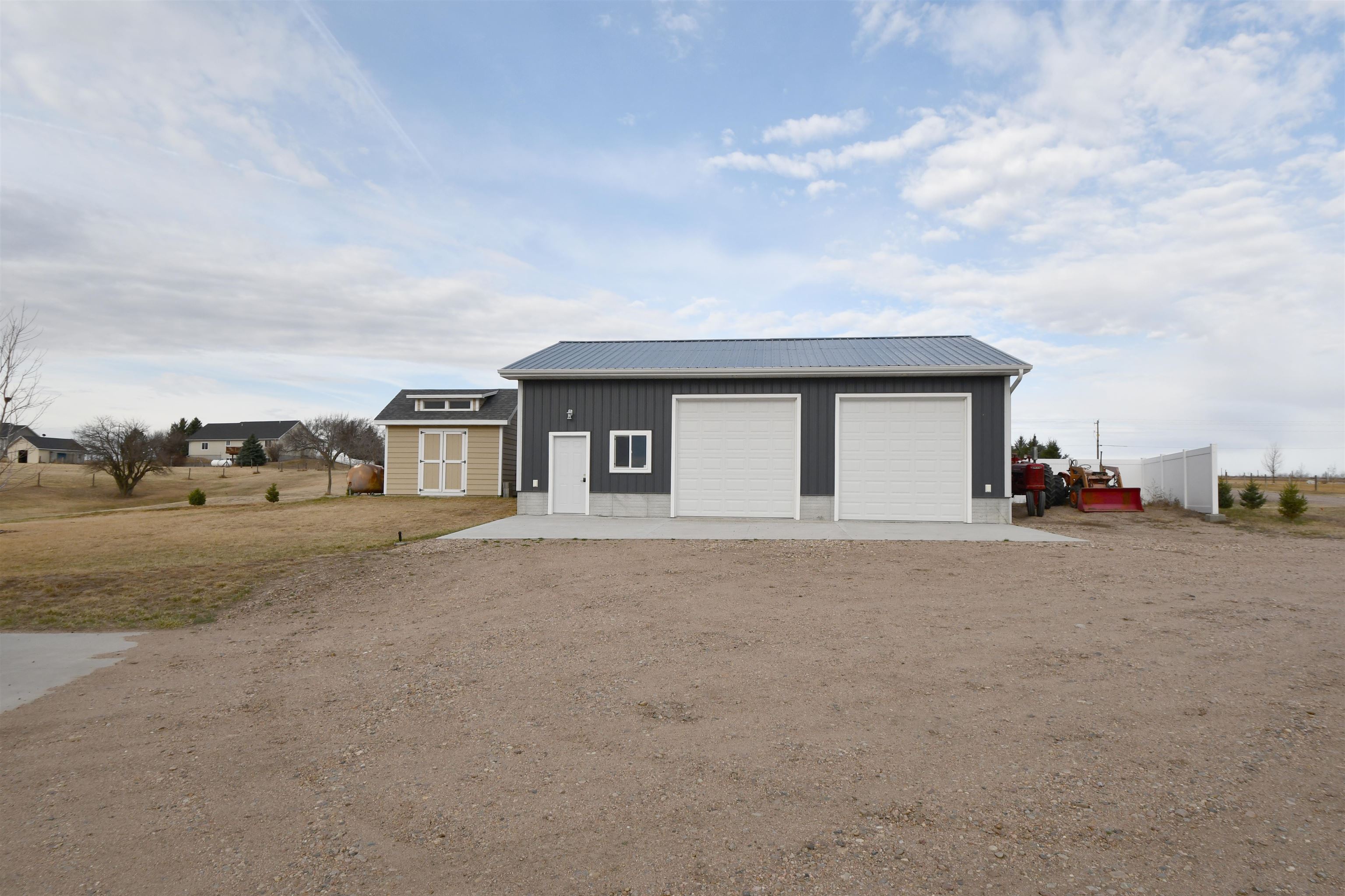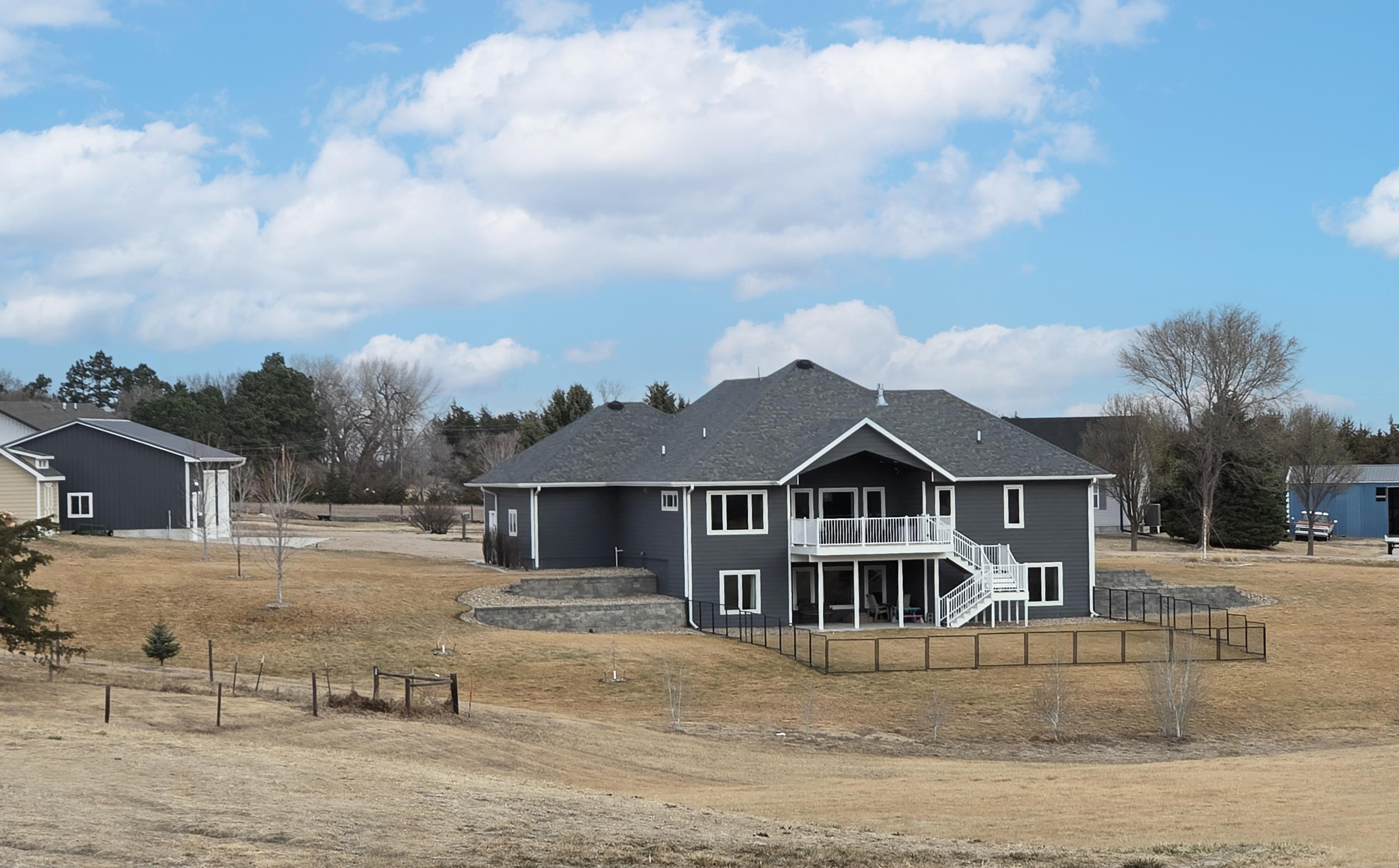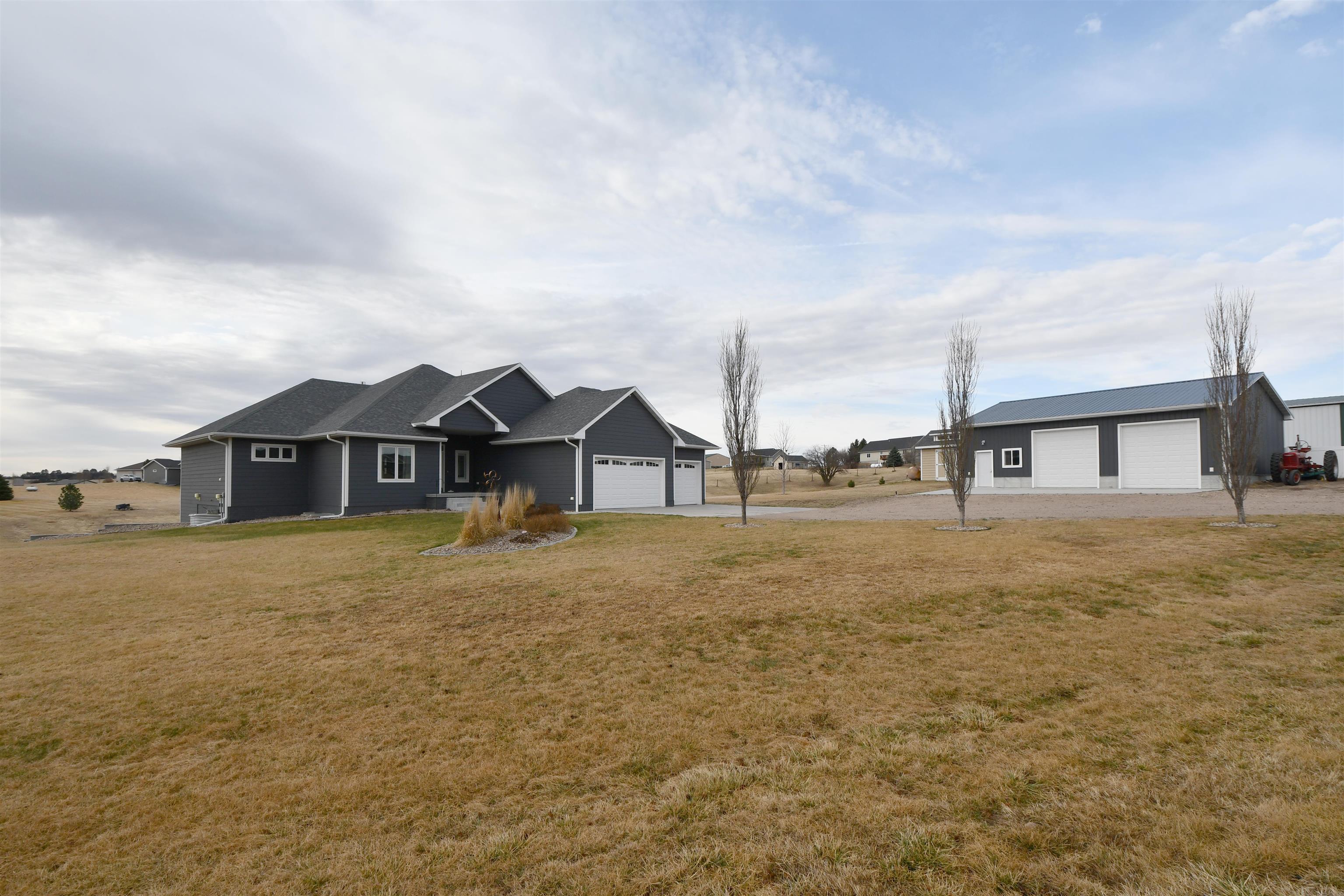 Welcome to this stunning custom-built home, thoughtfully designed in 2018 with quality craftsmanship and comfort in mind. Situated on a small acreage just northwest of Kearney in a quiet neighborhood. This spacious five-bedroom, three-bathroom residence features beautiful wood floors, a cozy fireplace, and a fully finished basement - perfect for both everyday living and entertaining. The convenience of main-floor laundry adds to the home's functional design. The kitchen is true standout, showcasing elegant quartz countertops and a large walk-in pantry for ample storage and convenience, while the bathrooms feature luxurious onyx finishes. High-end materials and finishes throughout, sourced from CMH Interiors, Century Lumber, and Builders Warehouse, add to the home's exceptional quality. Built with added insulation throughout for enhanced comfort and energy efficiency, this home also includes an amazing geothermal heating and cooling system - a huge money saver. Step outside to a beautiful deck with great views, ideal for relaxing or hosting guests, and enjoy the convenience of underground sprinklers. A custom-built shop and garden shed completes this exceptional property - offering the perfect blend of comfort, functionality and modern living.