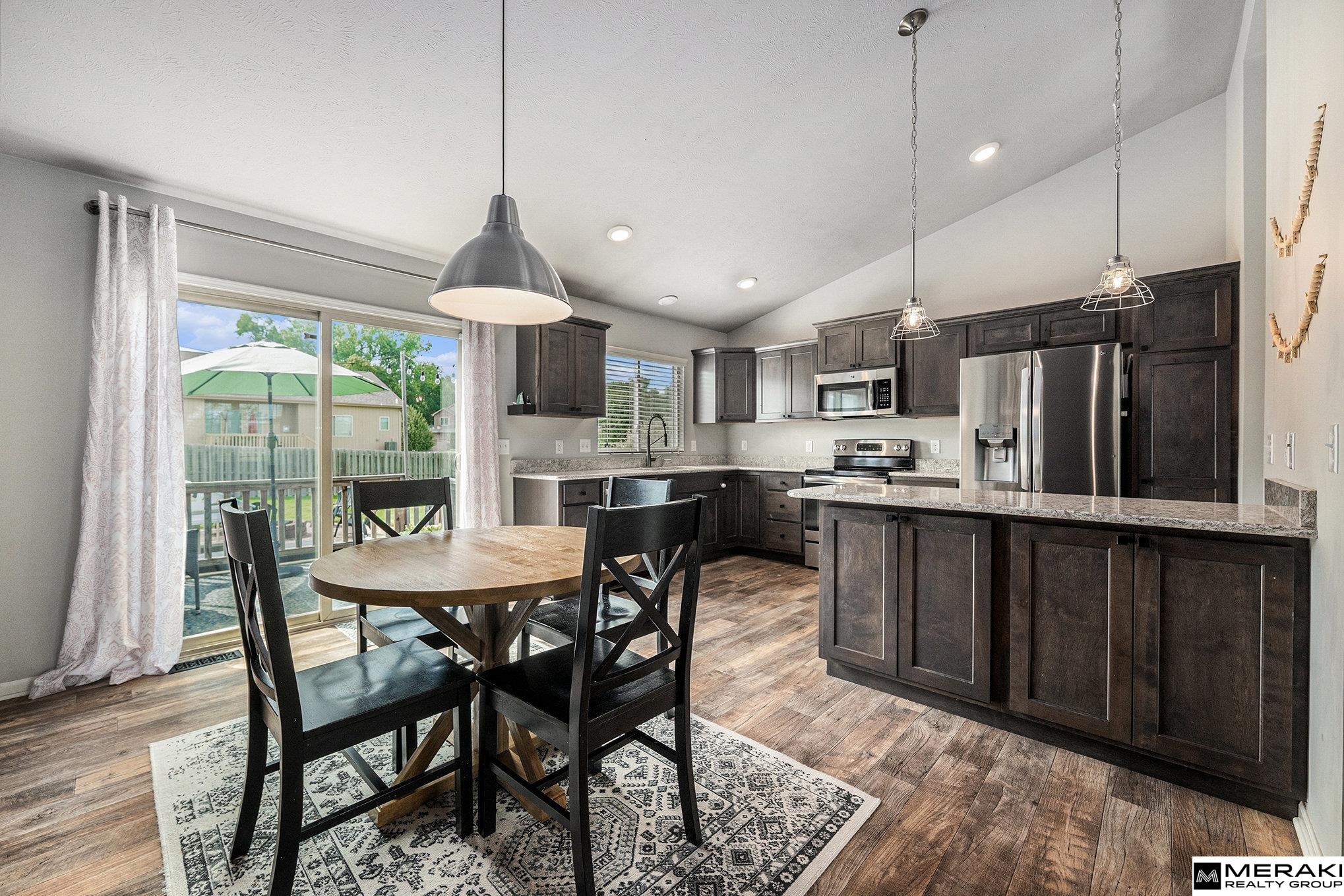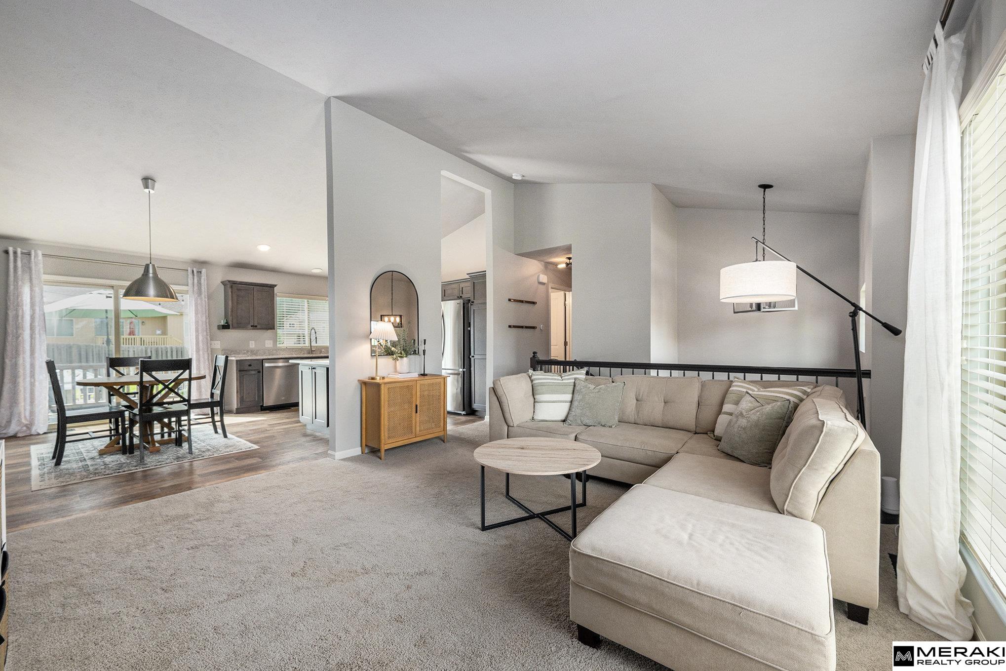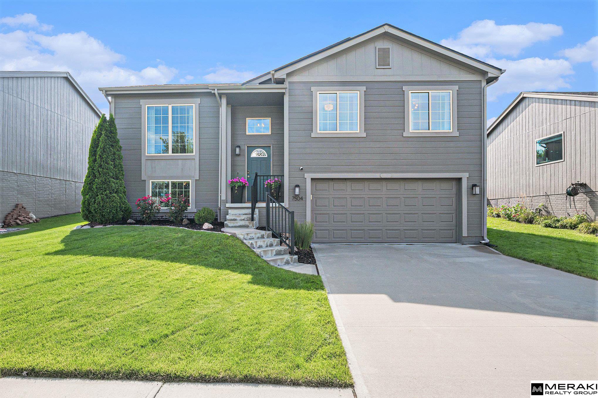 Fall in love with over 1,600 sq ft of modern style and expert design. This open concept split entry features 3 beds, 2 baths and an extra deep 2 car garage. Enter the vaulted ceiling foyer where you'll be greetd by a wide open living space with an abundance of natural light. You'll enjoy the spacious kitchen/dining area with SS appliances, quartz counters and great island. With 3 bedrooms on the main level you'll find size and comfort the whole family can enjoy. The primary suite offers vaulted ceiling along with double sinks and large closet. In the basement you will find ample space with stained concrete flooring - perfect are for entertaining! This Omaha gem has everything you've been waiting for! Schedule your showing today.