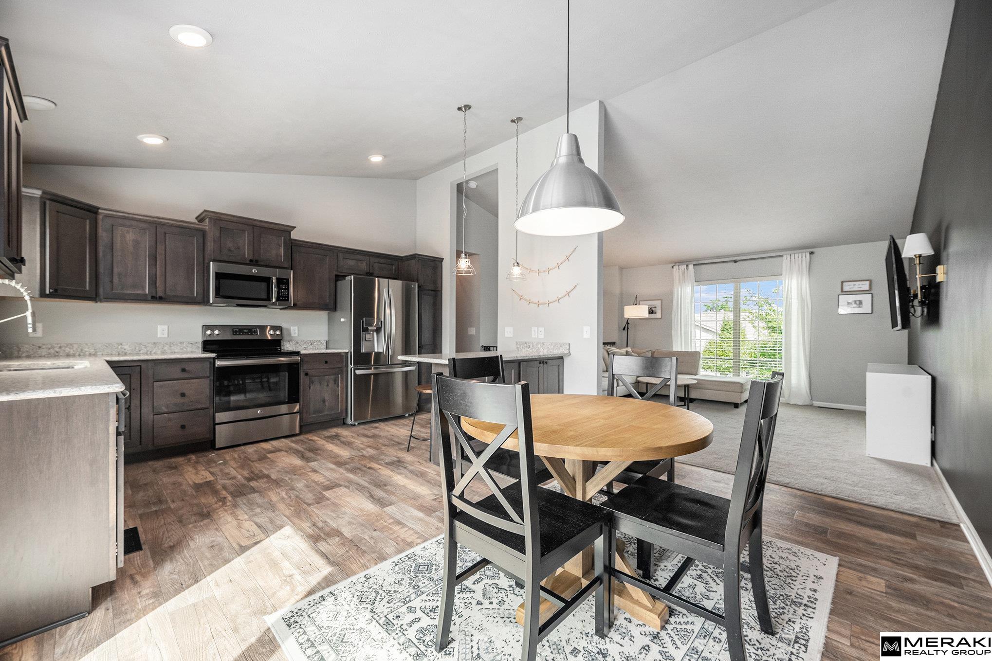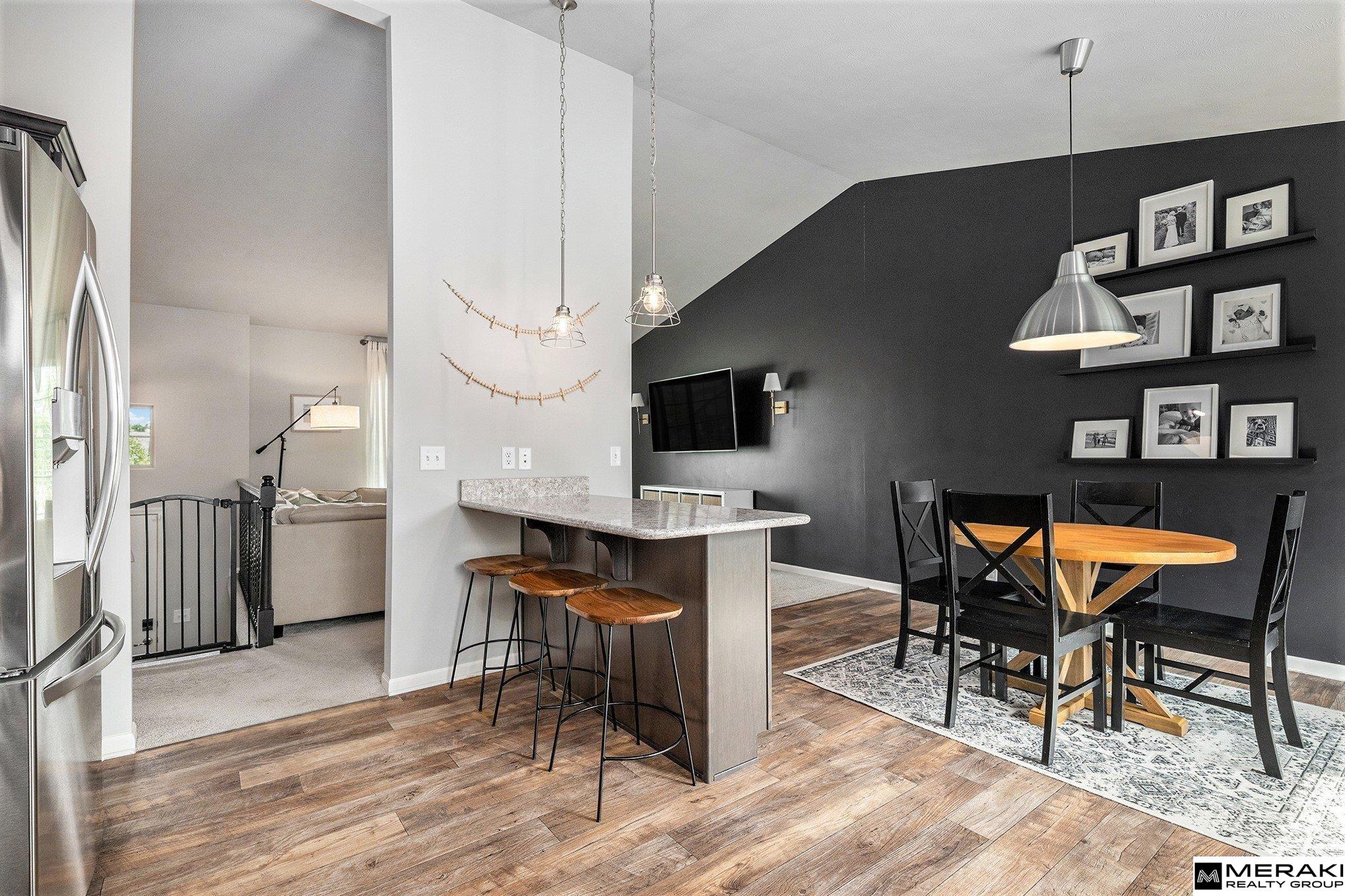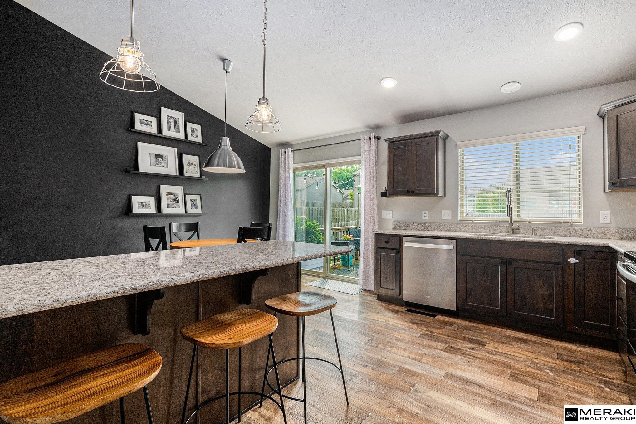 Fall in love with over 1,600 sq ft of modern style and expert design. This open concept split entry features 3 beds, 2 baths and an extra deep 2 car garage. Enter the vaulted ceiling foyer where you'll be greetd by a wide open living space with an abundance of natural light. You'll enjoy the spacious kitchen/dining area with SS appliances, quartz counters and great island. With 3 bedrooms on the main level you'll find size and comfort the whole family can enjoy. The primary suite offers vaulted ceiling along with double sinks and large closet. In the basement you will find ample space with stained concrete flooring - perfect are for entertaining! This Omaha gem has everything you've been waiting for! Schedule your showing today.