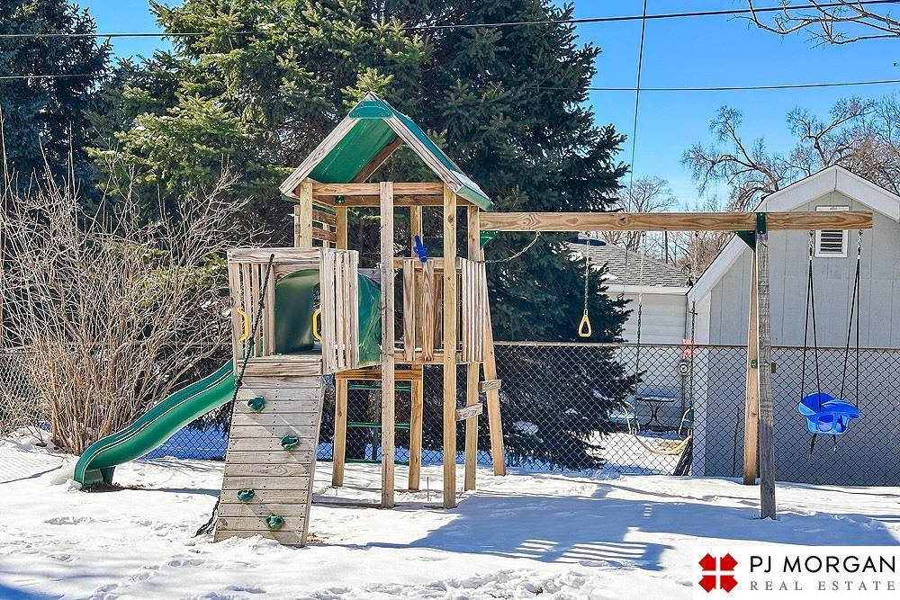 Adorable and move-in ready 3-bedroom walkout ranch with charm and space in all the right places! The primary bedroom was thoughtfully converted from two bedrooms into one oversized retreat, offering two closets and extra room to unwind. There is hardwood floors that run throughout the main level and the open-concept layout that makes the home feel bright and welcoming. A newer picture window fills the living room with natural light, while the huge eat-in kitchen offers generous storage and comes fully equipped. The walkout basement expands your living space with a large family room, an additional bedroom or office, A new bathroom has been added and all new plumbing was updated. Step outside to a flat, fully fenced backyard complete with a playset and storage shed. Enjoy evenings on the patio overlooking the yard. Additional features include vinyl siding, an extra-deep one-car garage, and a radon mitigation system already installed for peace of mind.