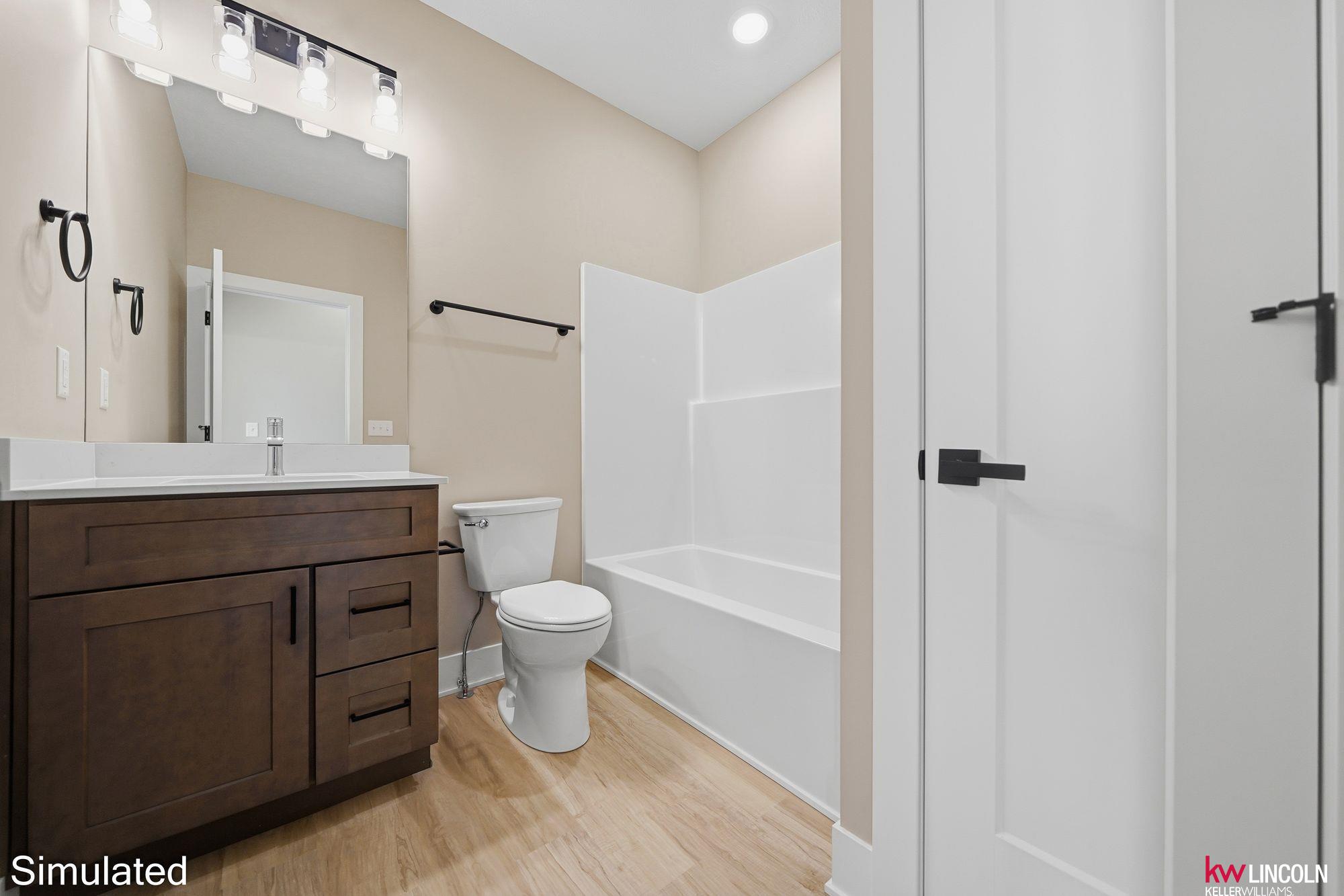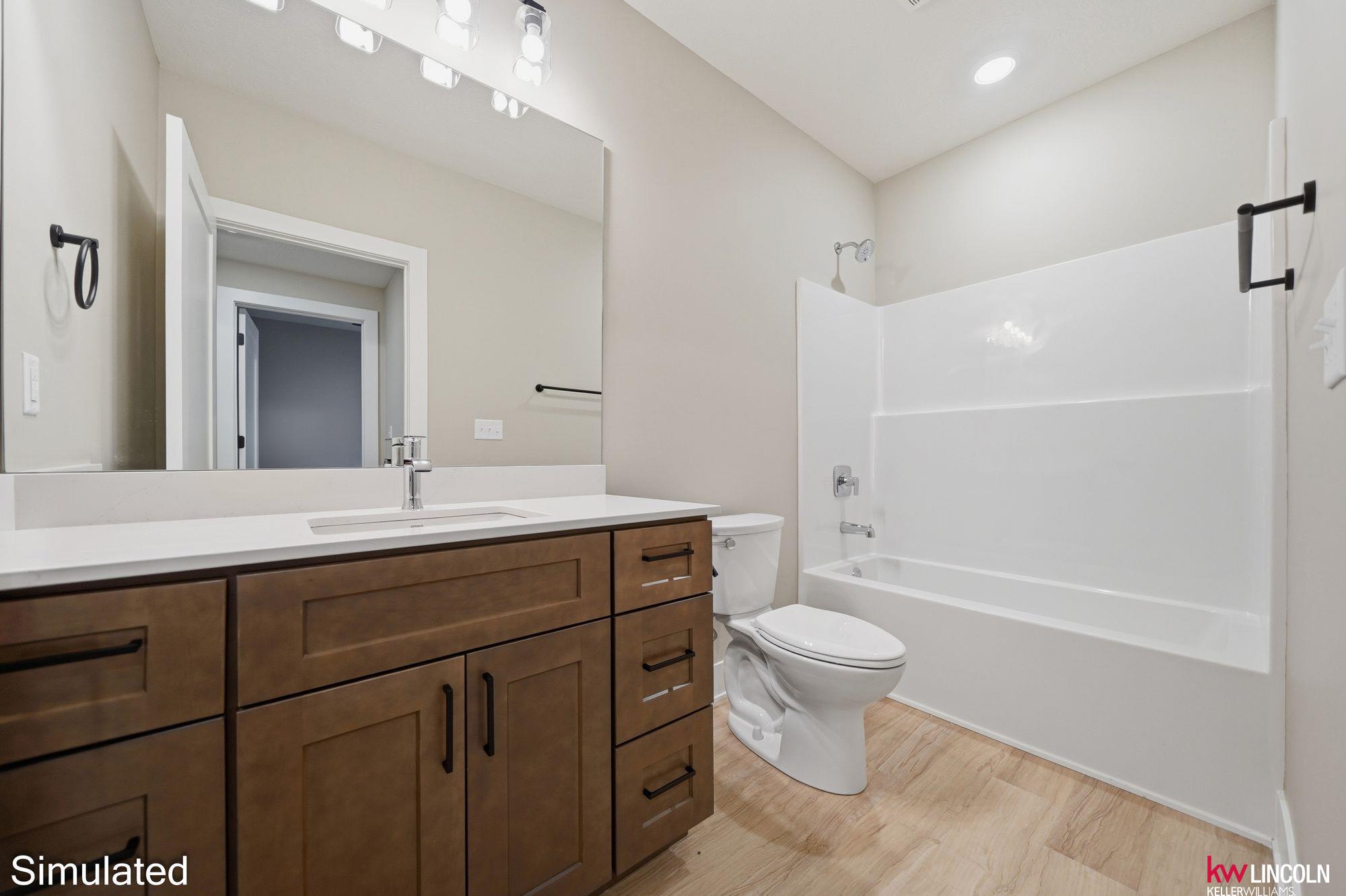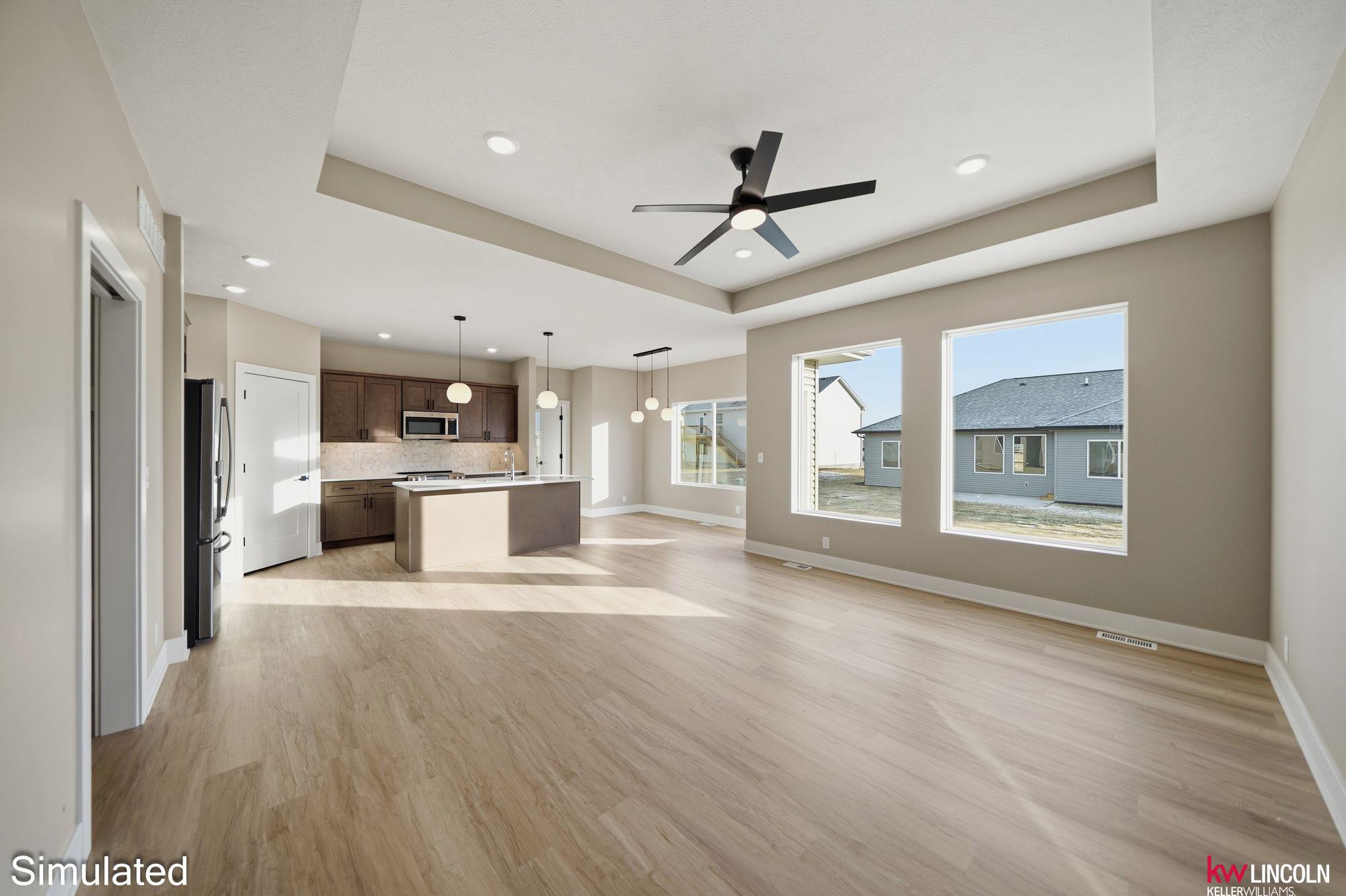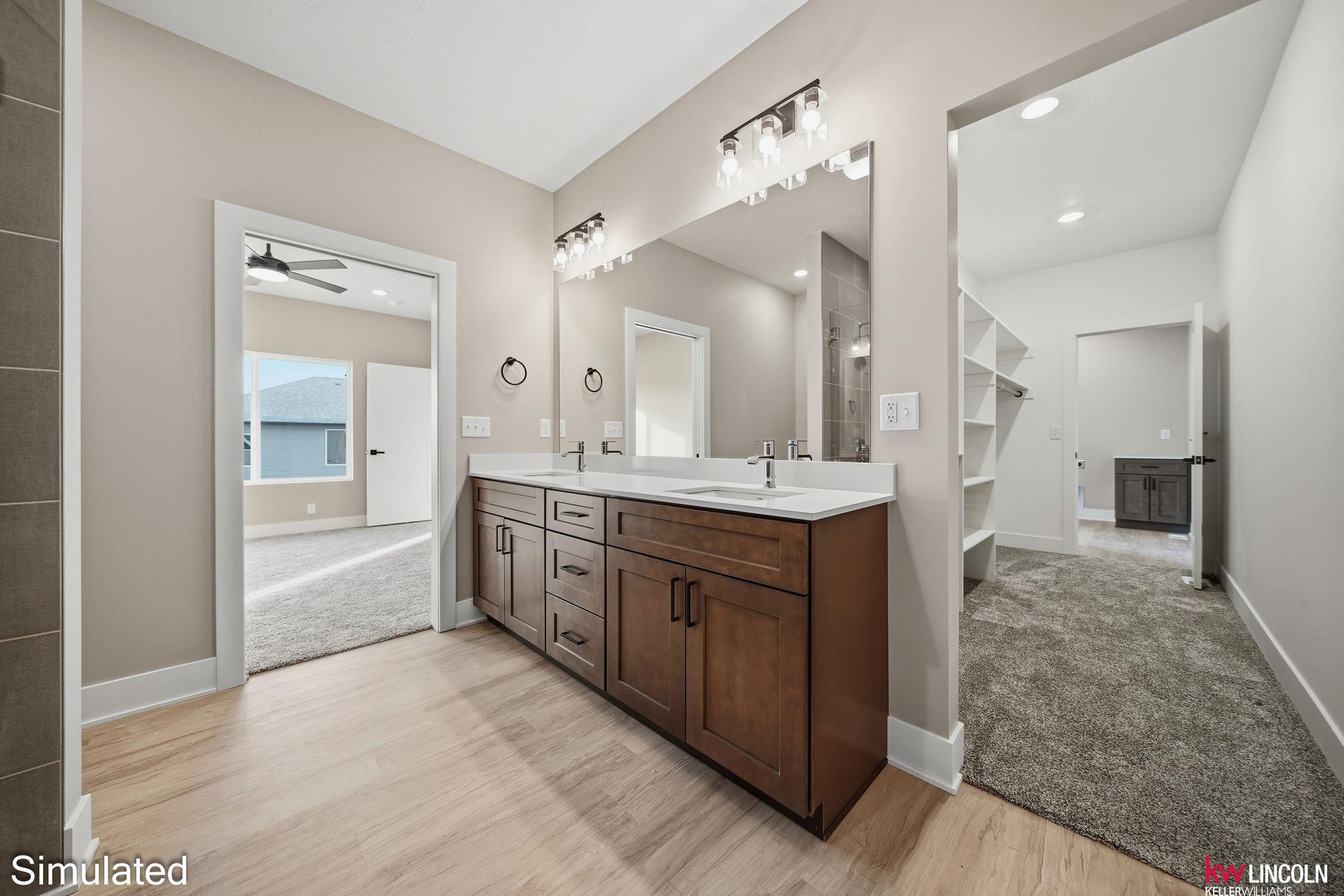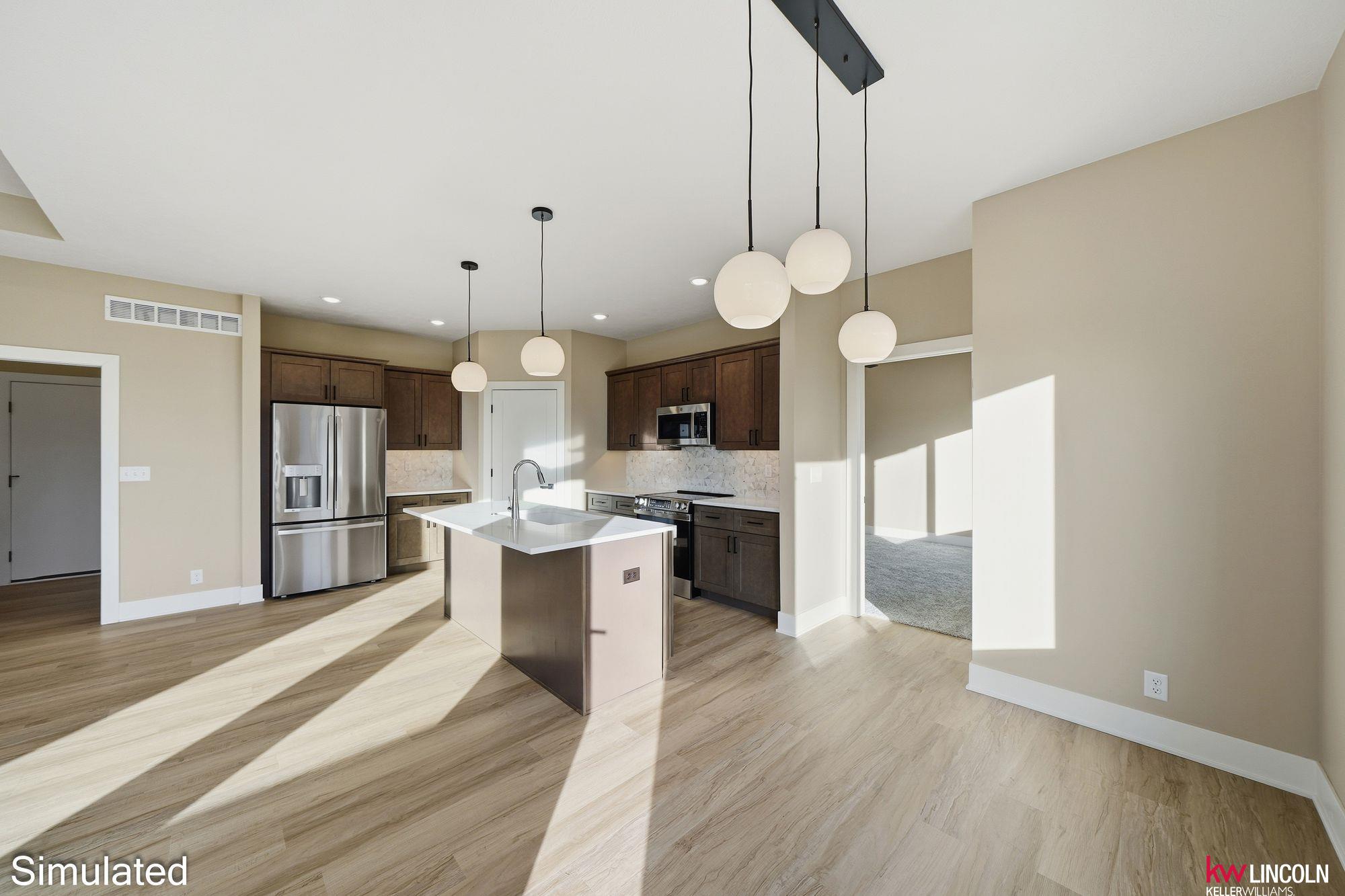 Recently completed new construction by Moon Stone Builders, this beautiful 4-bedroom, 3-bath home offers modern design and functional living throughout. The open-concept main floor features a well-appointed kitchen with quartz countertops, ample cabinetry, and a walk-in pantry—ideal for both everyday living and entertaining. The spacious primary suite includes a large ensuite bathroom and an oversized walk-in closet. Two additional main-floor bedrooms, both with walk-in closets, and a guest bath complete the main level. The finished lower level features a large family room with a built-in bar area, perfect for hosting, along with an additional bedroom, full bath, and generous storage space. This move-in-ready home is thoughtfully designed and a must-see. Images are simulated; actual finishes may vary.