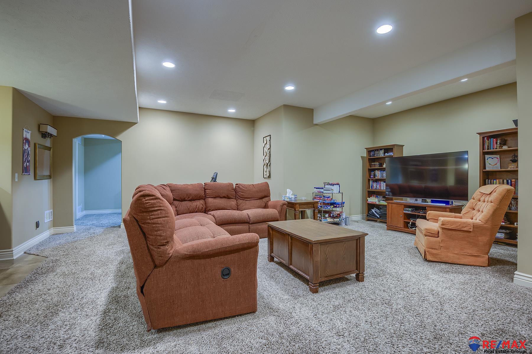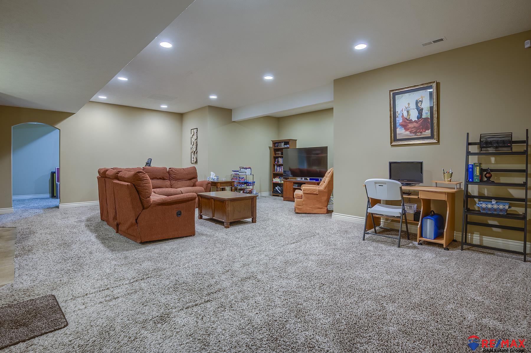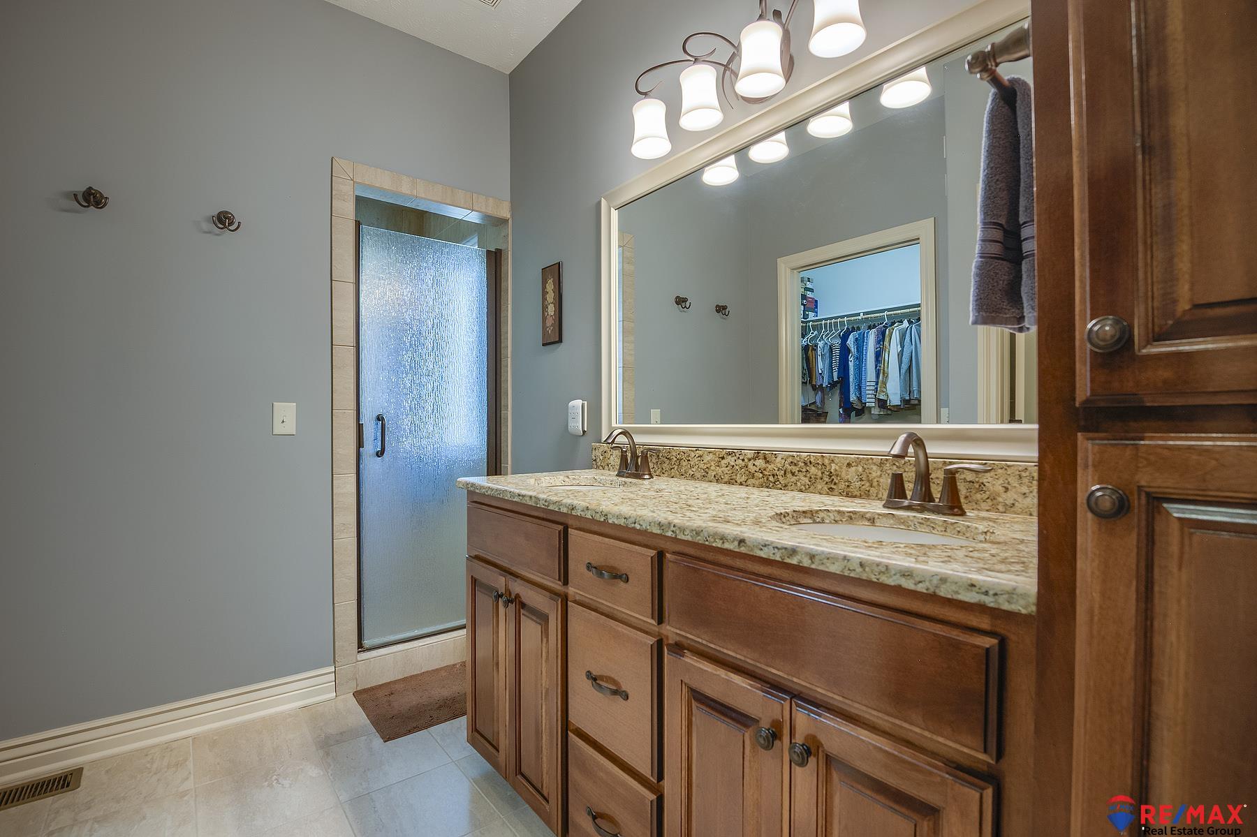 Open Sunday Feb. 22 from 1-3. Stop by! Like new 5BR, 3BA, 3 car south-facing ranch offering style, space and many upgrades throughout. Split bedroom design on main floor. Stunning wood floors in the LR, kitchen, drop zone and hallways. Kitchen flows into the living and dining areas. Primary suite walk-in shower, dual sinks, and a private patio door access to the ultimate backyard oasis. Main floor laundry room has sink & lots of cabinets. Professionally landscaped yard complete with a privacy fence, 24x14 covered patio and fire pit. Finished lower level was built for entertaining with a wet bar/kitchenette, media area and game area plus two additional bedrooms and bath. Loaded with upgrades including Andersen windows, newer roof, gutters, Leaf Filter system, water heater, disposals, dishwasher and security system. This move-in ready ranch truly has it all--space, updates and an unbeatable backyard setting! Assumable 3% VA loan for qualified buyer.