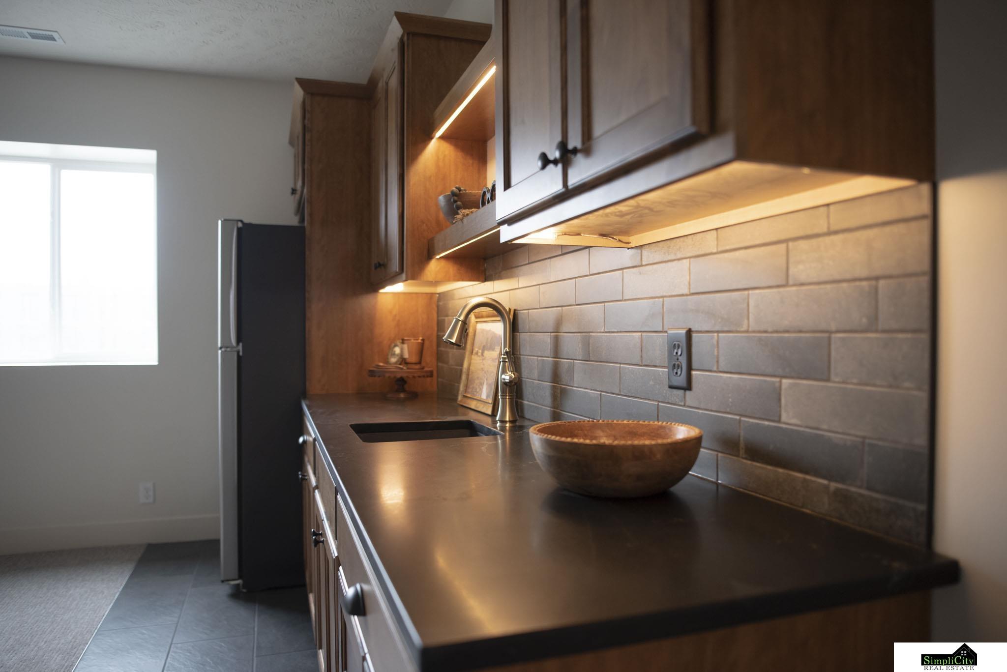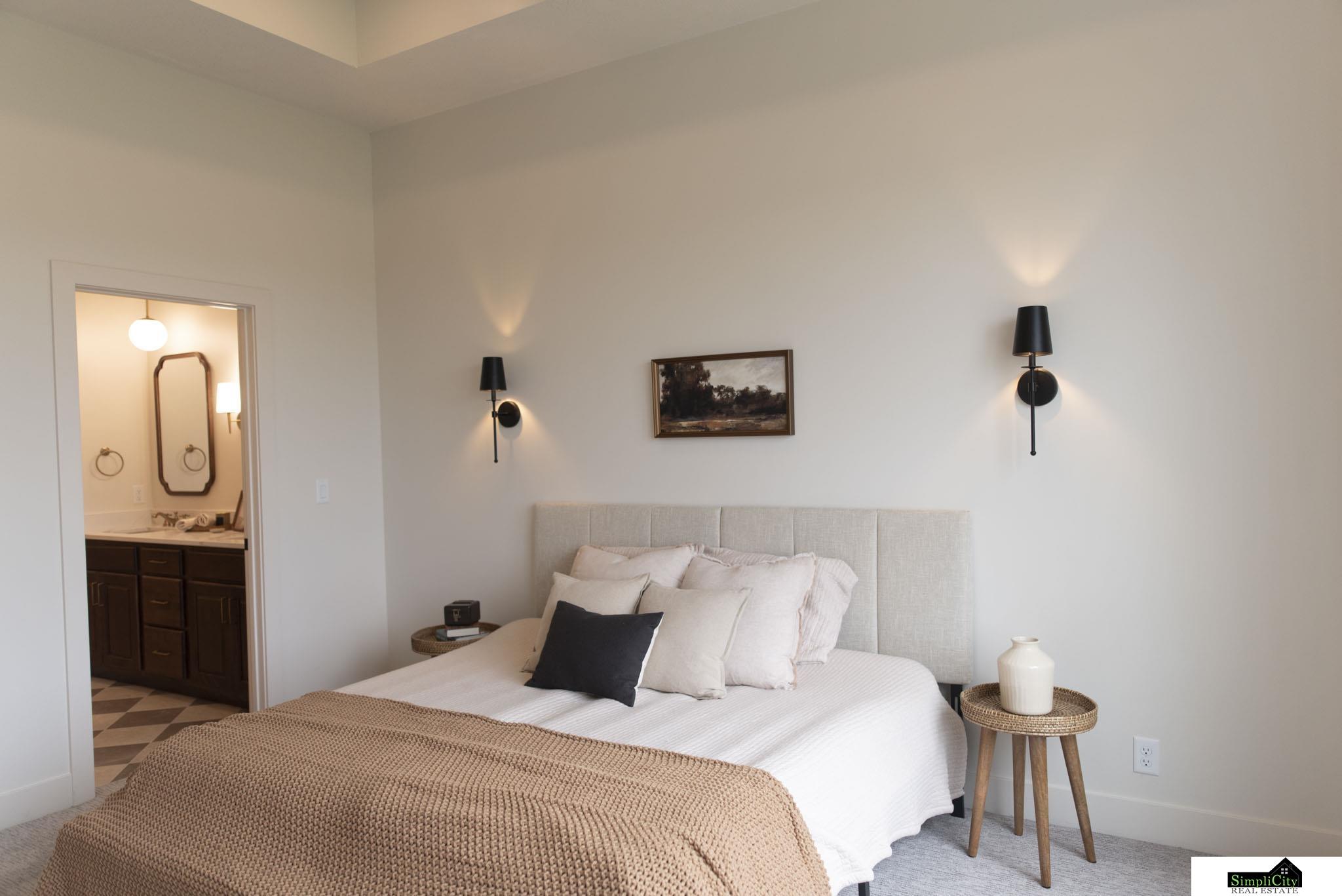 Contract Pending. Thoughtfully crafted new construction that blends modern luxury with everyday practicality! This daylight ranch welcomes you with grand 10-foot ceilings on the main floor, solid wood doors, wood trim, and an exceptional attention to detail throughout. Five spacious bedrooms, including three on the main level—one of which works perfectly as an office—provide flexible living space and work-from-home needs. The basement invites entertaining with a full wet bar and full-size fridge, ideal for gatherings or relaxations beyond the main floor. Outdoor living shines with a covered deck, convenient stairs, and an extra-large patio, all enhanced by carefully planned lighting that highlights every finish. Call today!