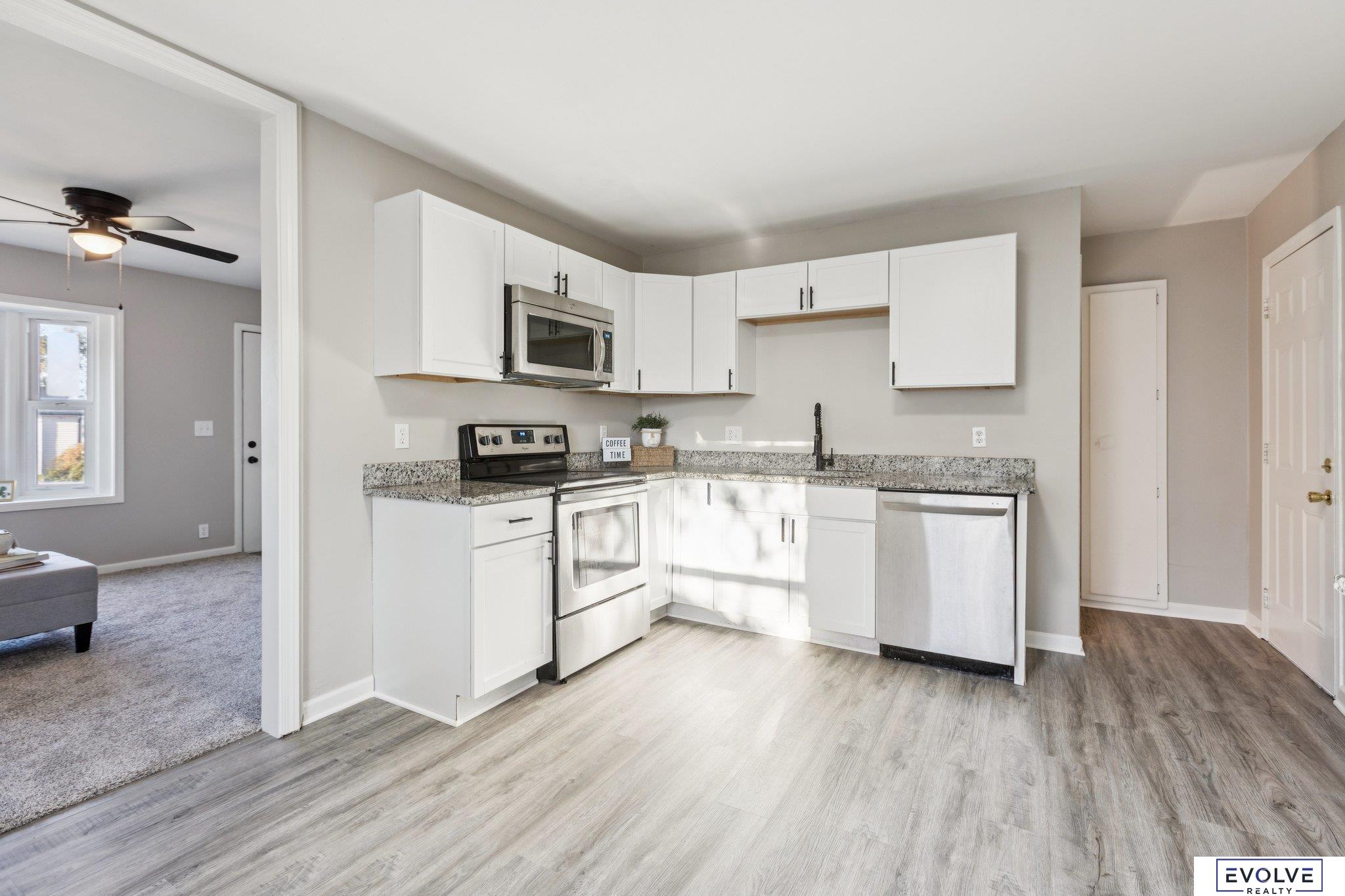 Open House Sunday, November 16th, 1-3pm. Updated 3 bedroom 2 bath home, recently remodeled from top to bottom. You get newer kitchen cabinets, granite countertops, stainless appliances, updated bathrooms, and brand new carpeting. The home has fresh interior paint and updated light fixtures. The lower level bathroom is a newer addition. The home sits in a great Bellevue neighborhood with quick access to shopping, Kennedy Expressway, and Offutt AFB. You also get an extended two car detached garage with a workspace and wide driveway; a very rare feature at this price. The roof and gutters on both the house and garage are also brand new! Move right in and enjoy a beautiful modern home! (New gutters to be installed 11/17)